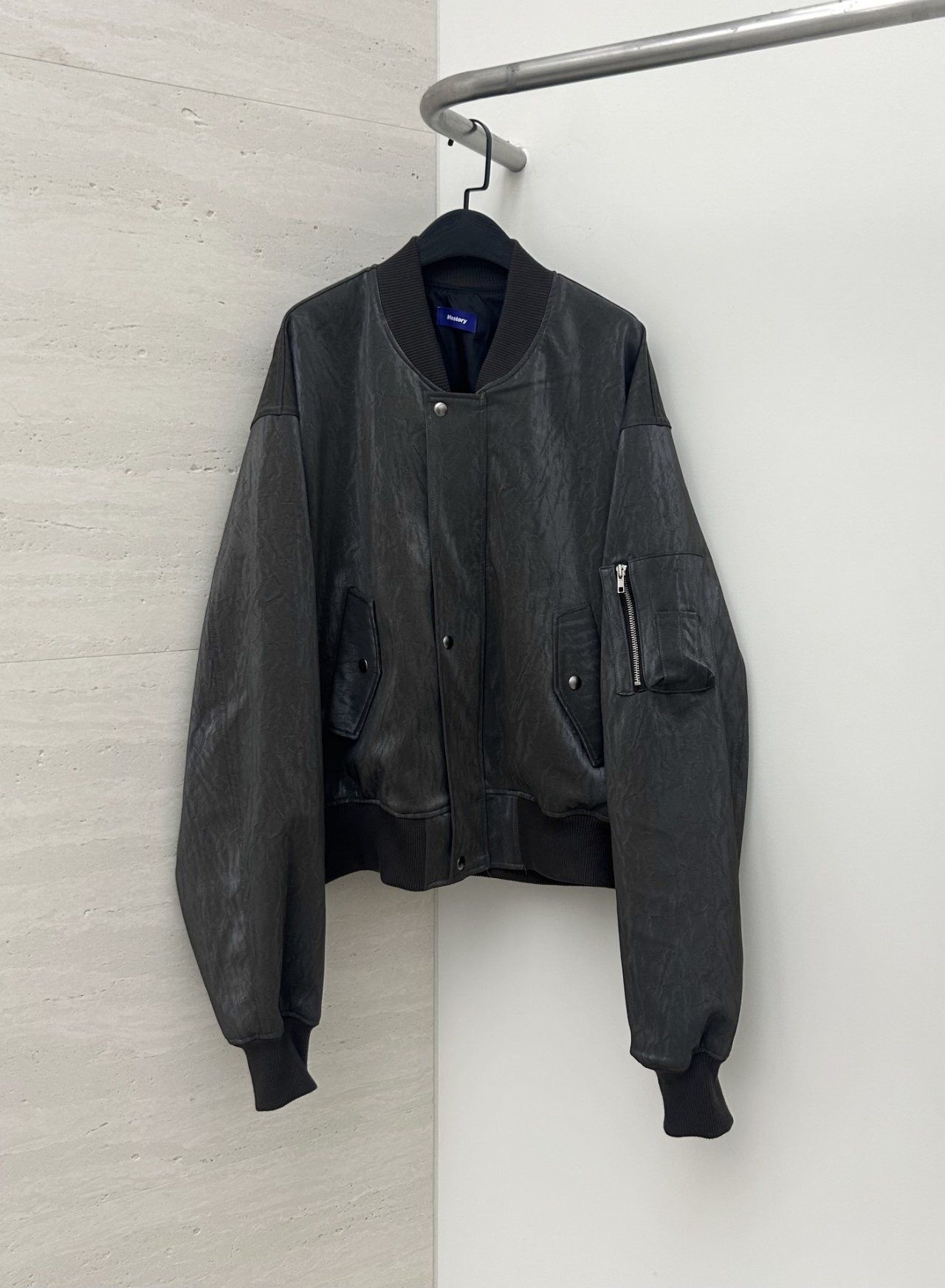 淨色拉鍊合成皮褸 Hestory-101JK