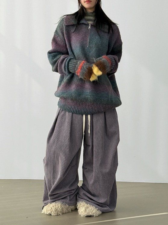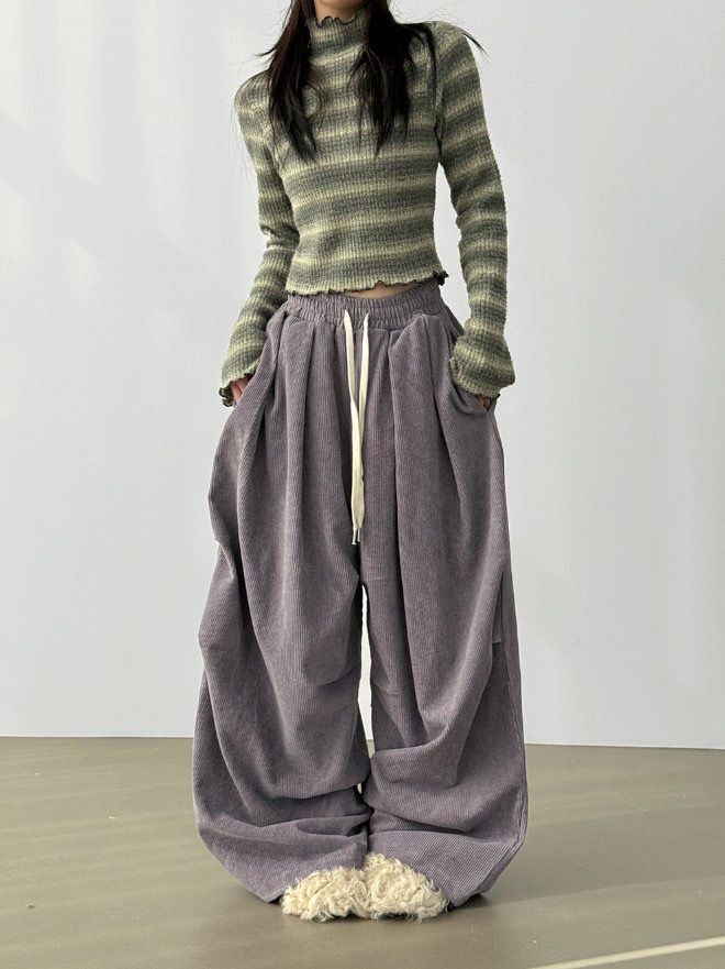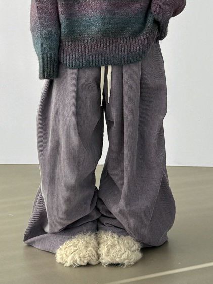 淨色可束腳鬆身燈心絨褲 Hestory-119P