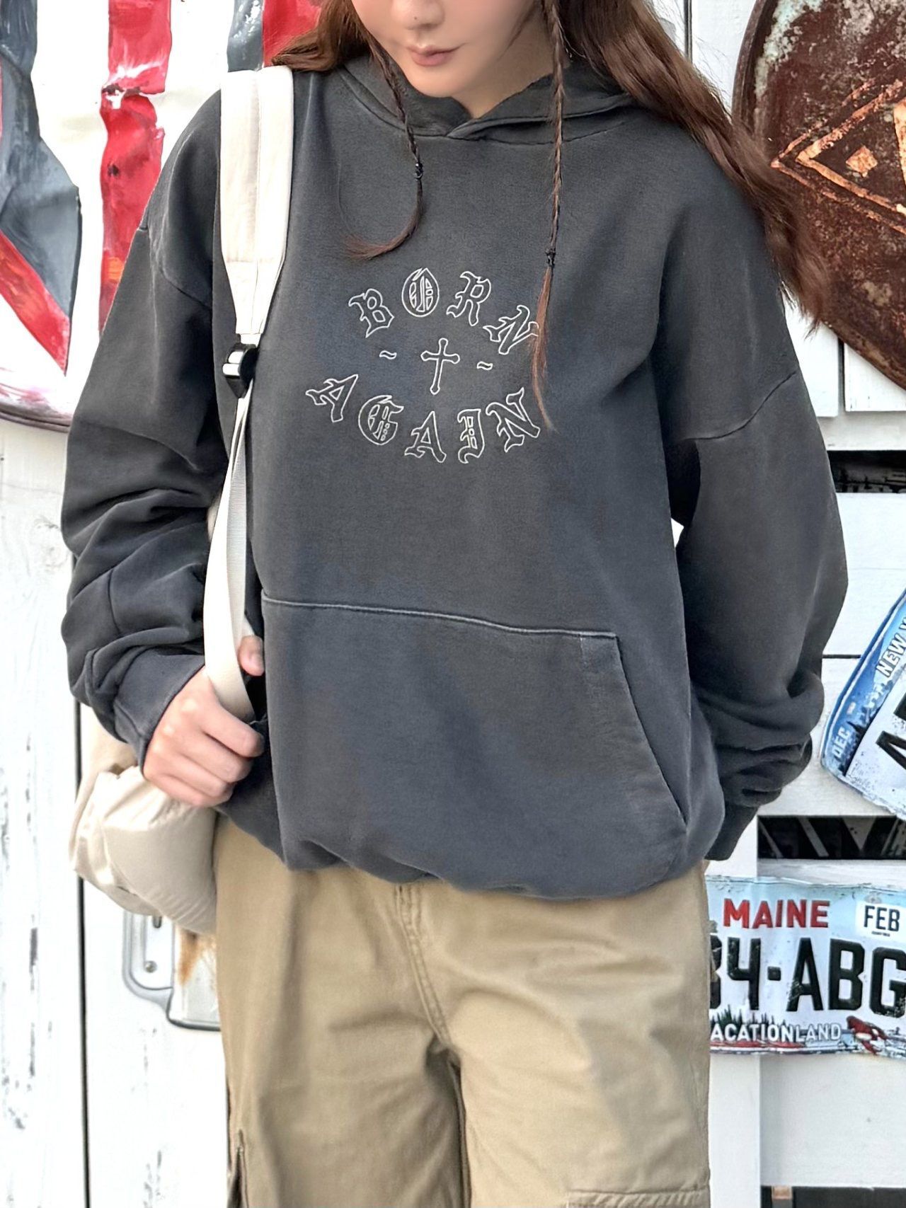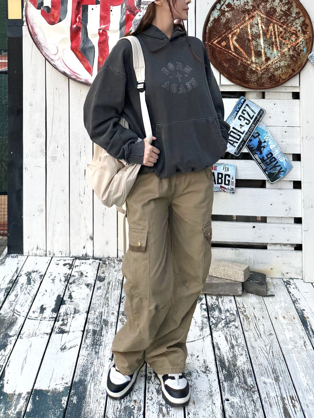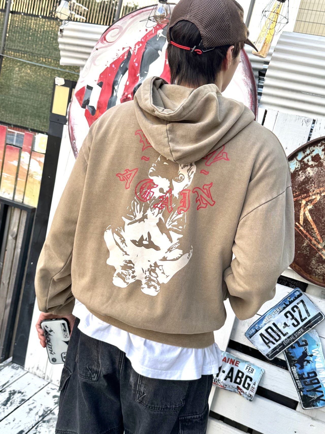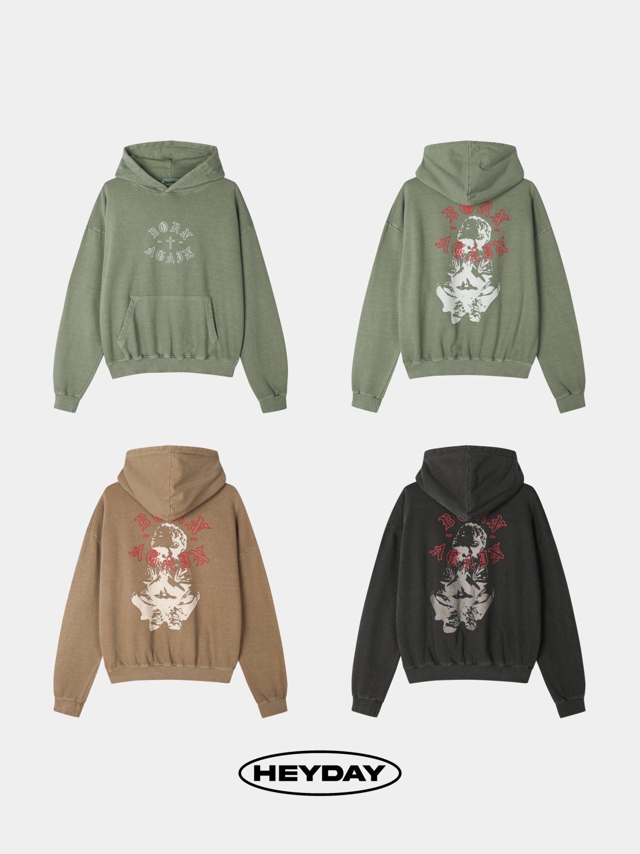 洗水英文字圖案連帽衛衣 HEYDAY-019T