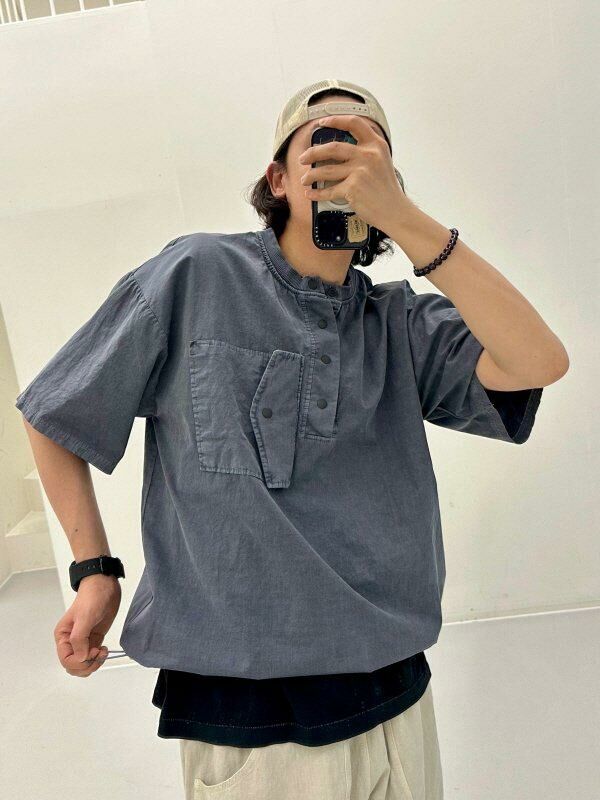洗水淨色半開胸可束腳短袖Tee HIGH FIVE-067T