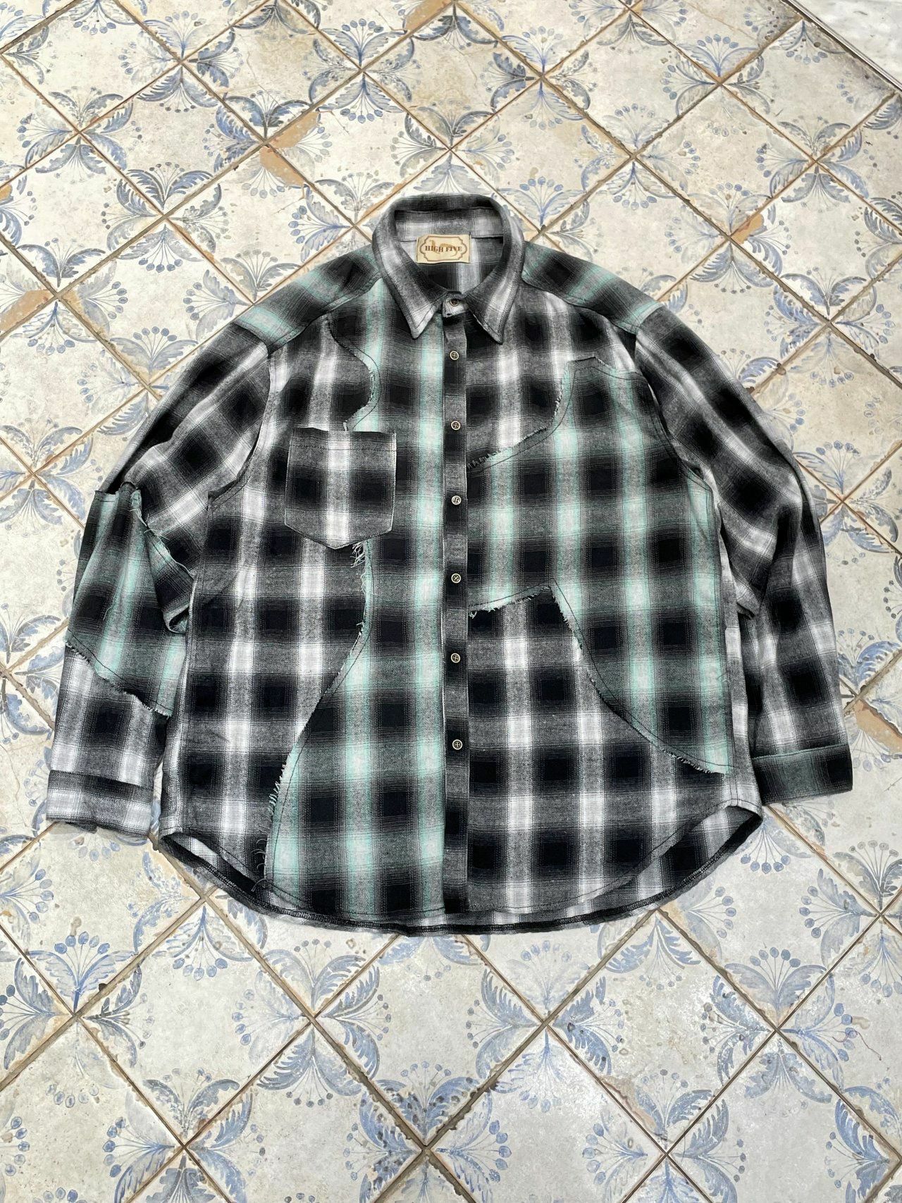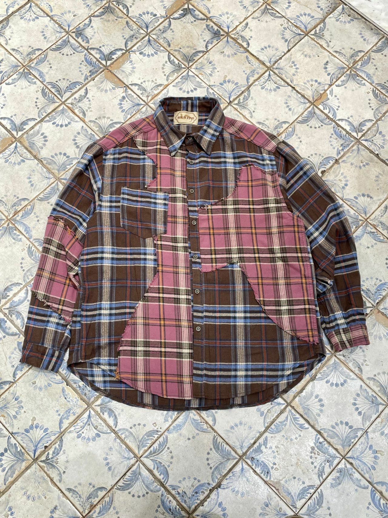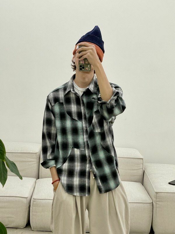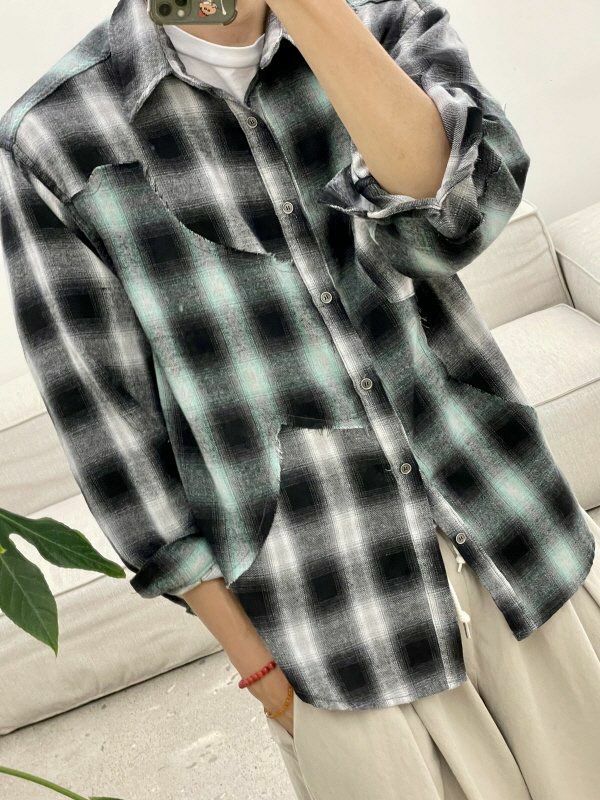 拼色格仔長袖恤衫 HIGH FIVE-117S