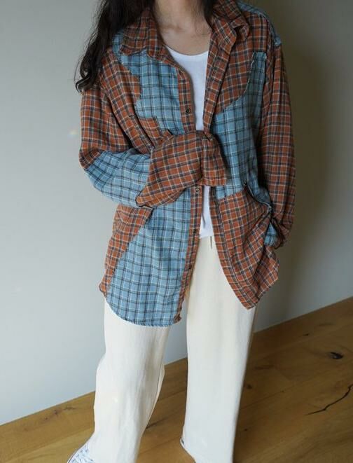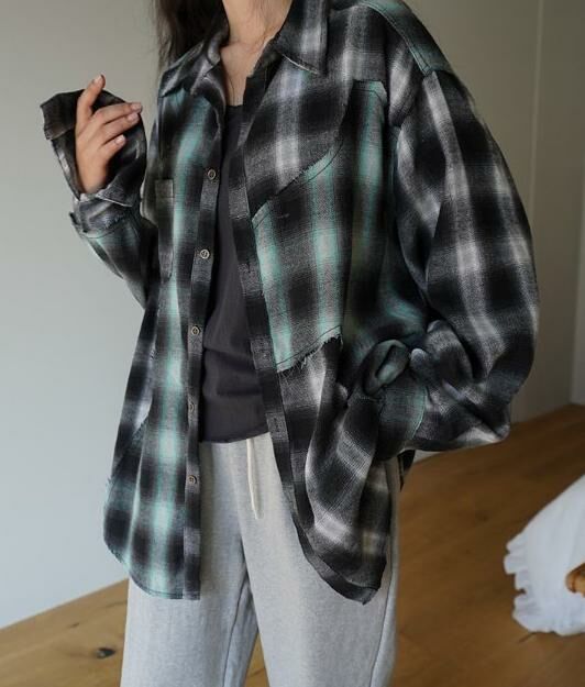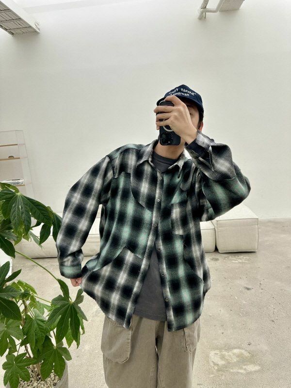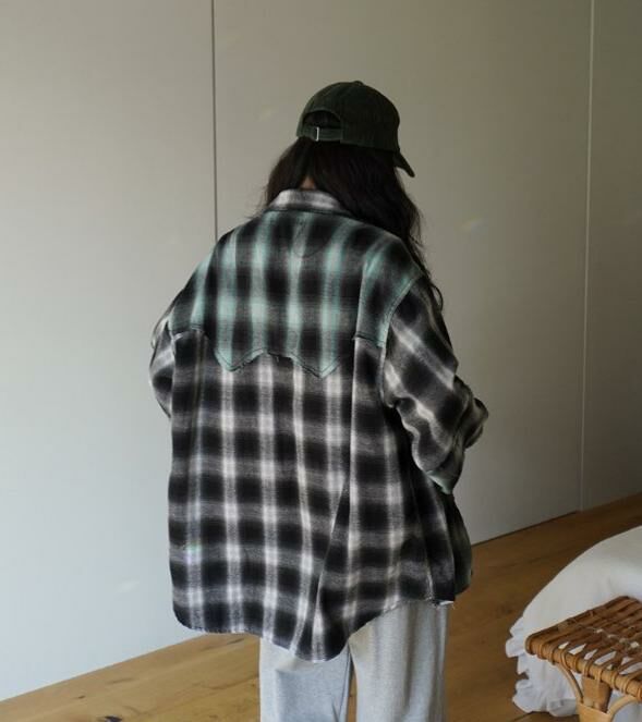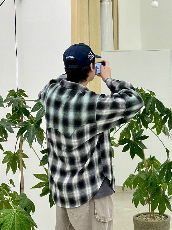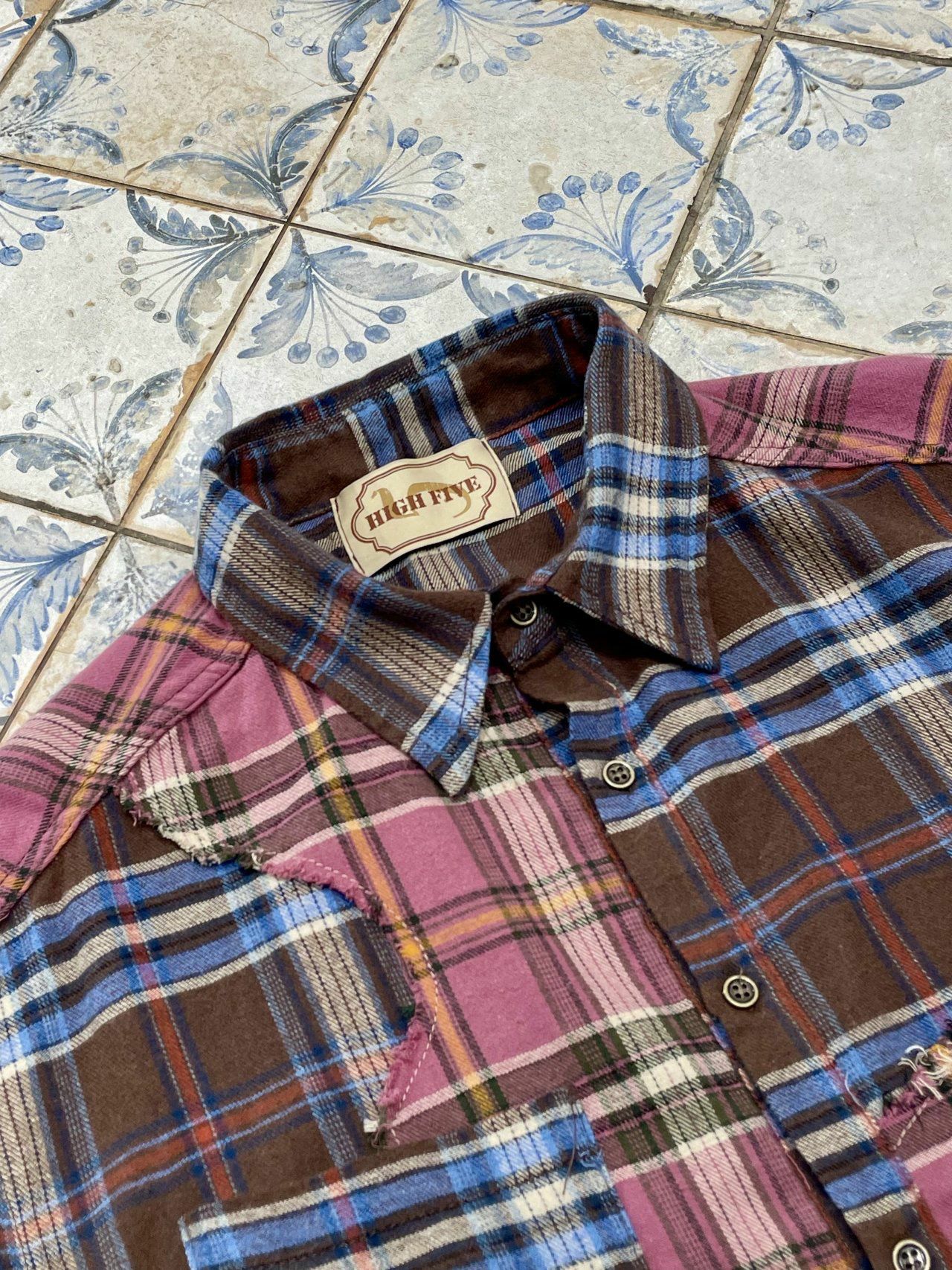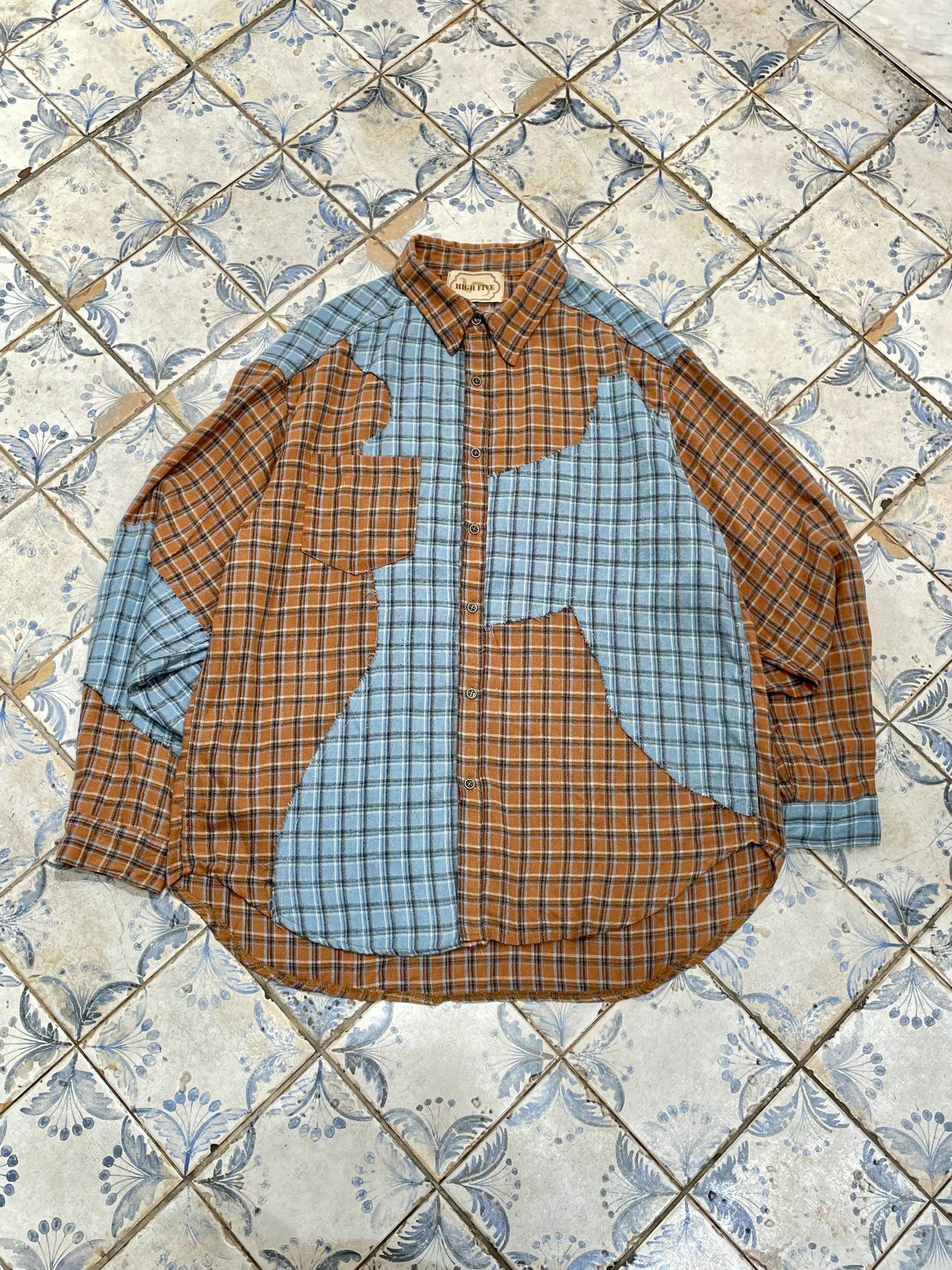 拼色格仔長袖恤衫 HIGH FIVE-117S