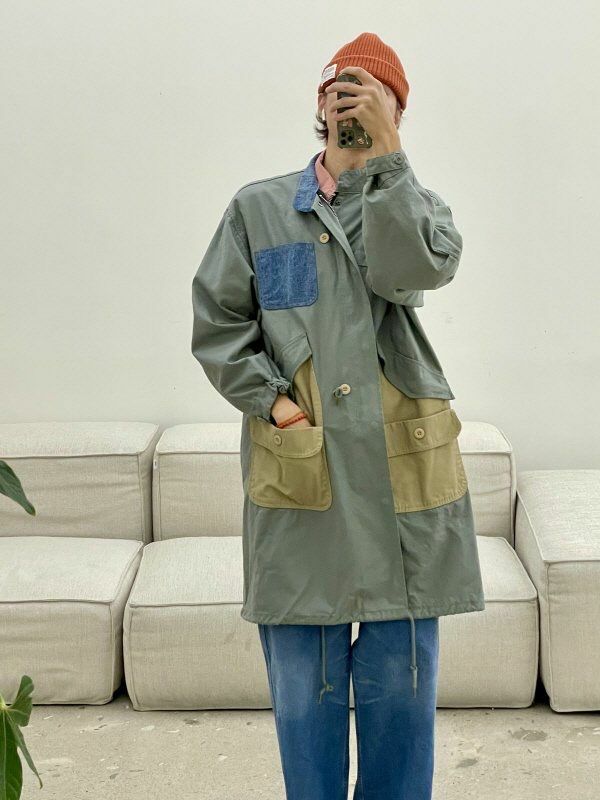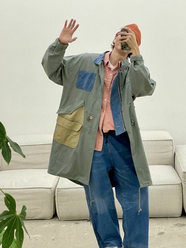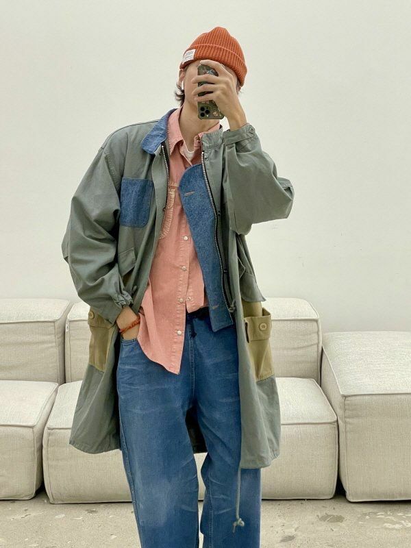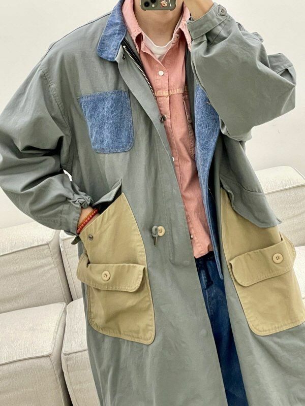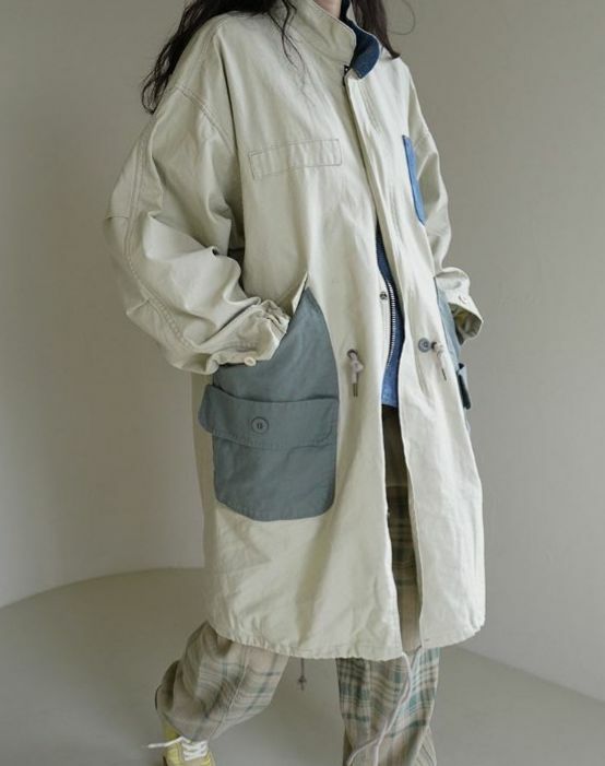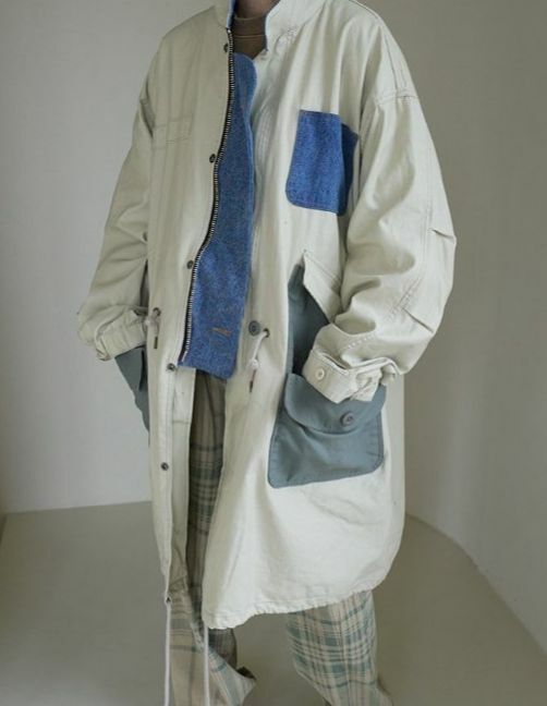 拼色企領拉鍊長褸 HIGH FIVE-120JK