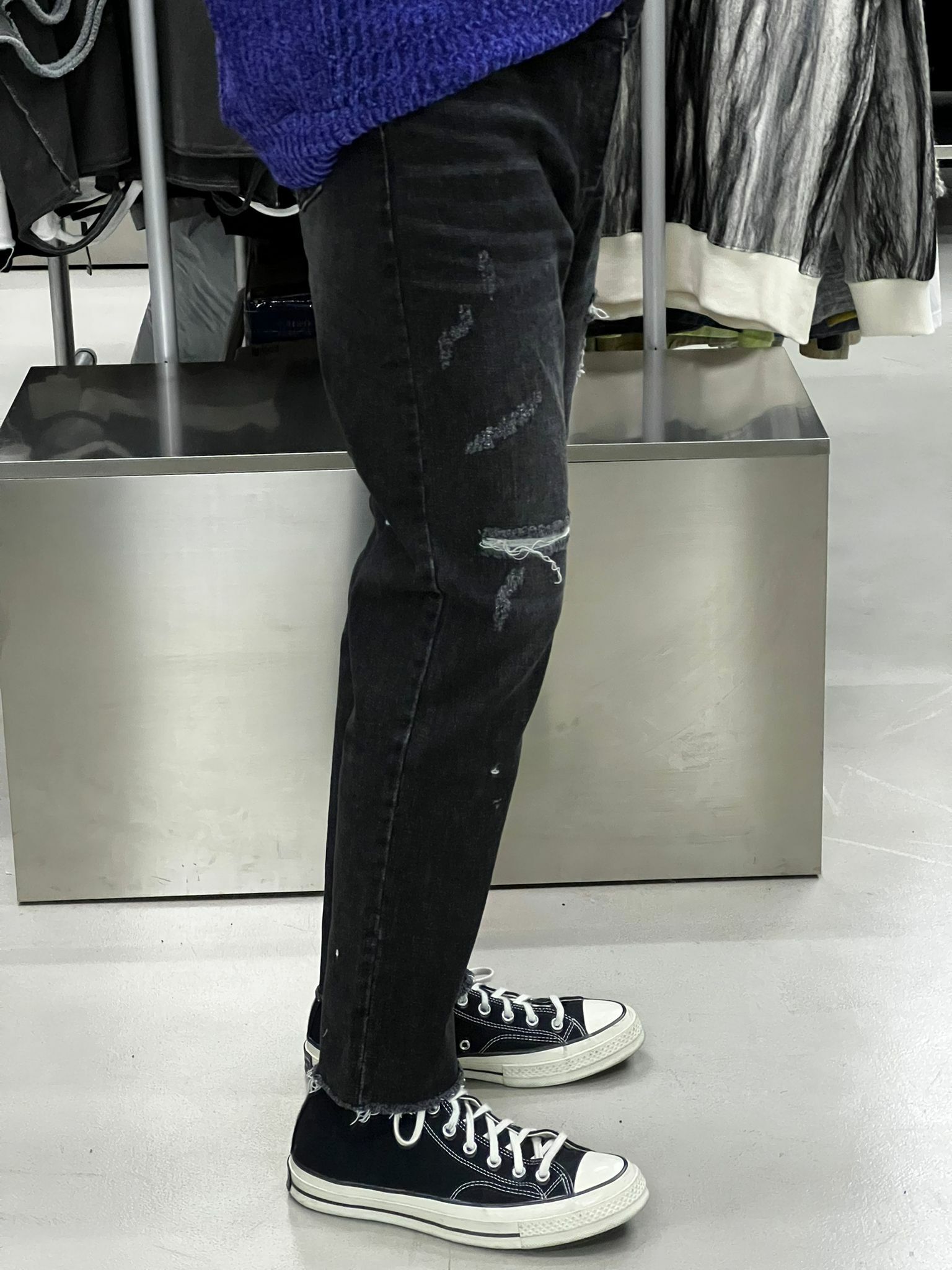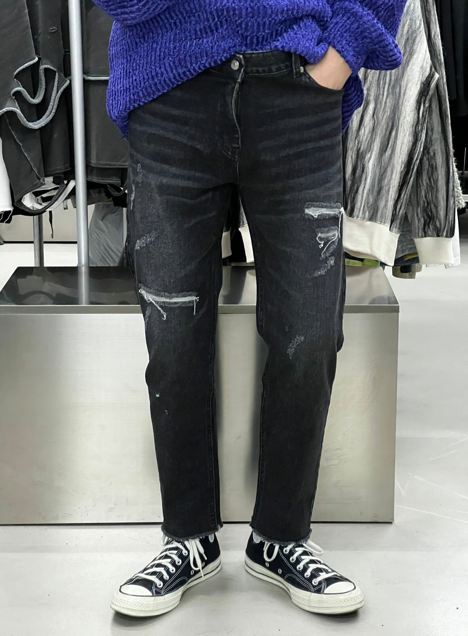 破洞修身牛仔褲 J567