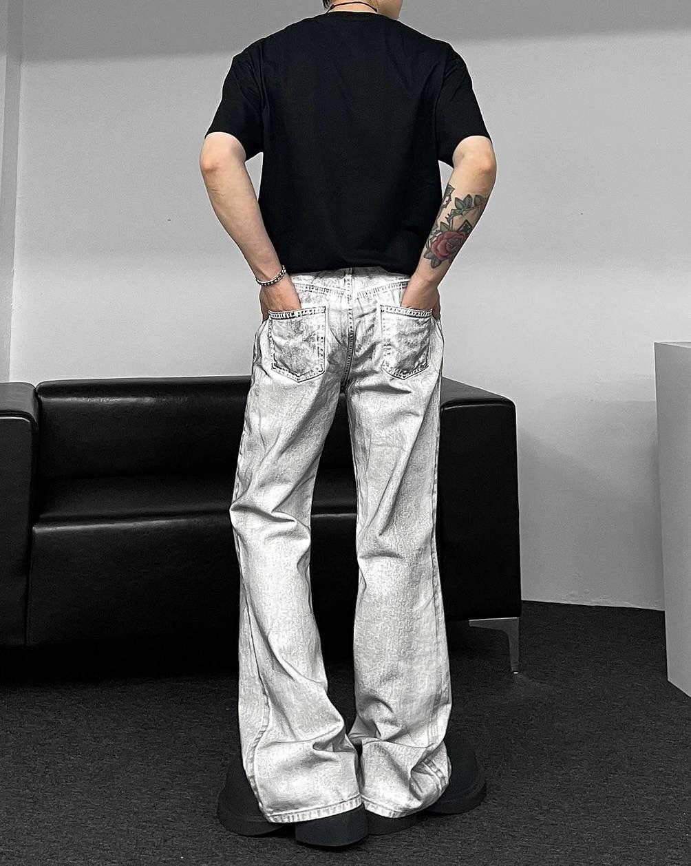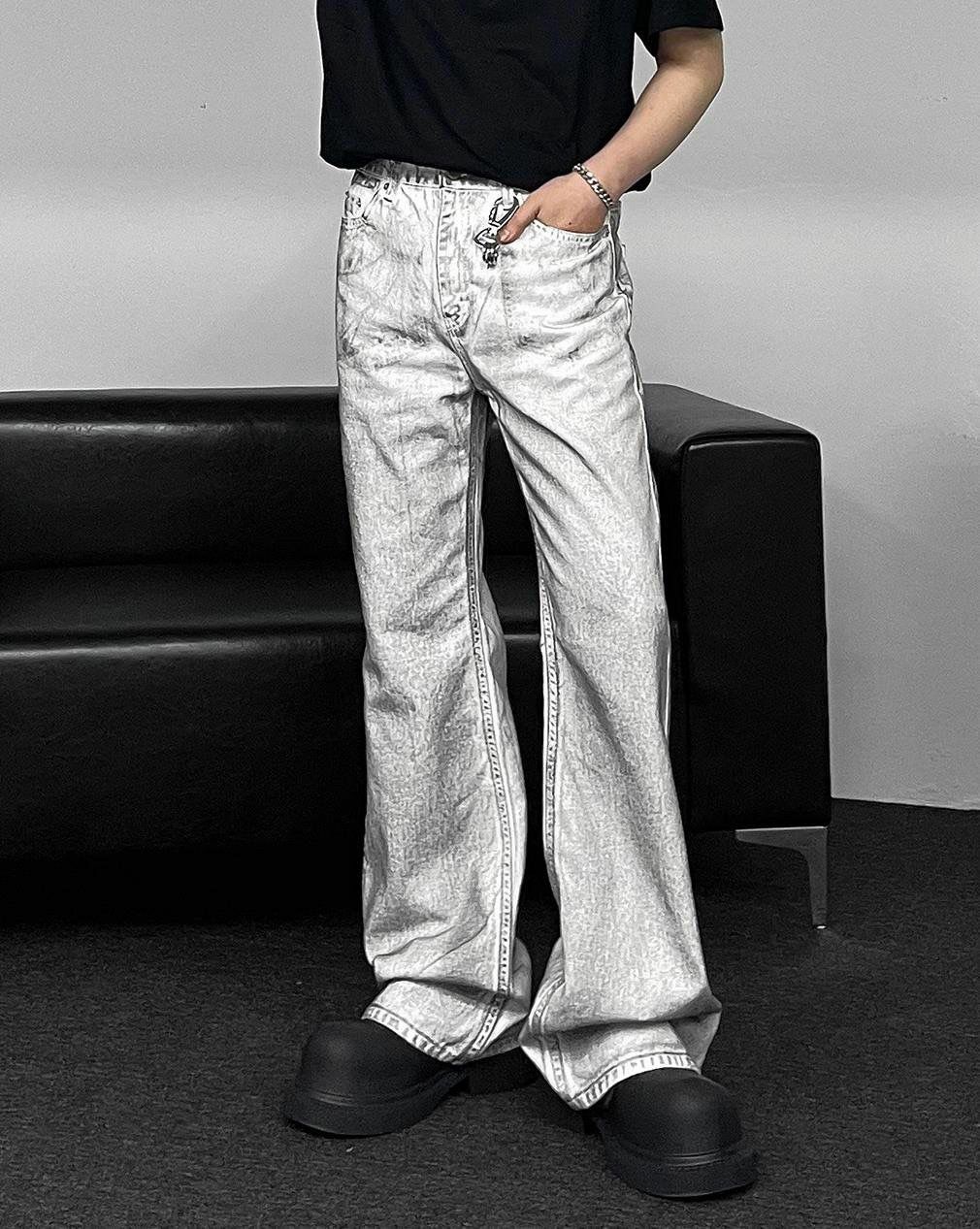 仿污喇叭牛仔褲 J734