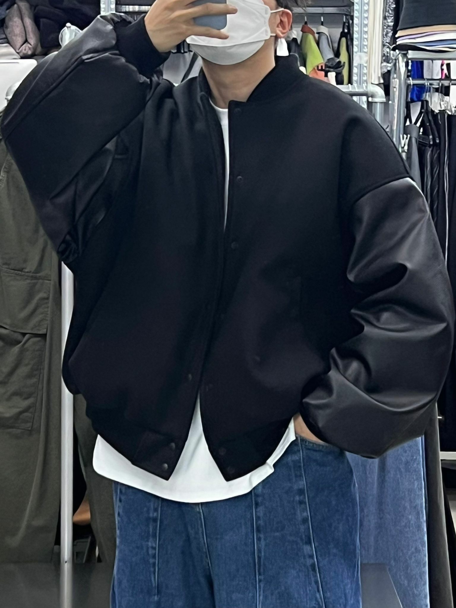 拼皮袖夾棉棒球褸 JK2148