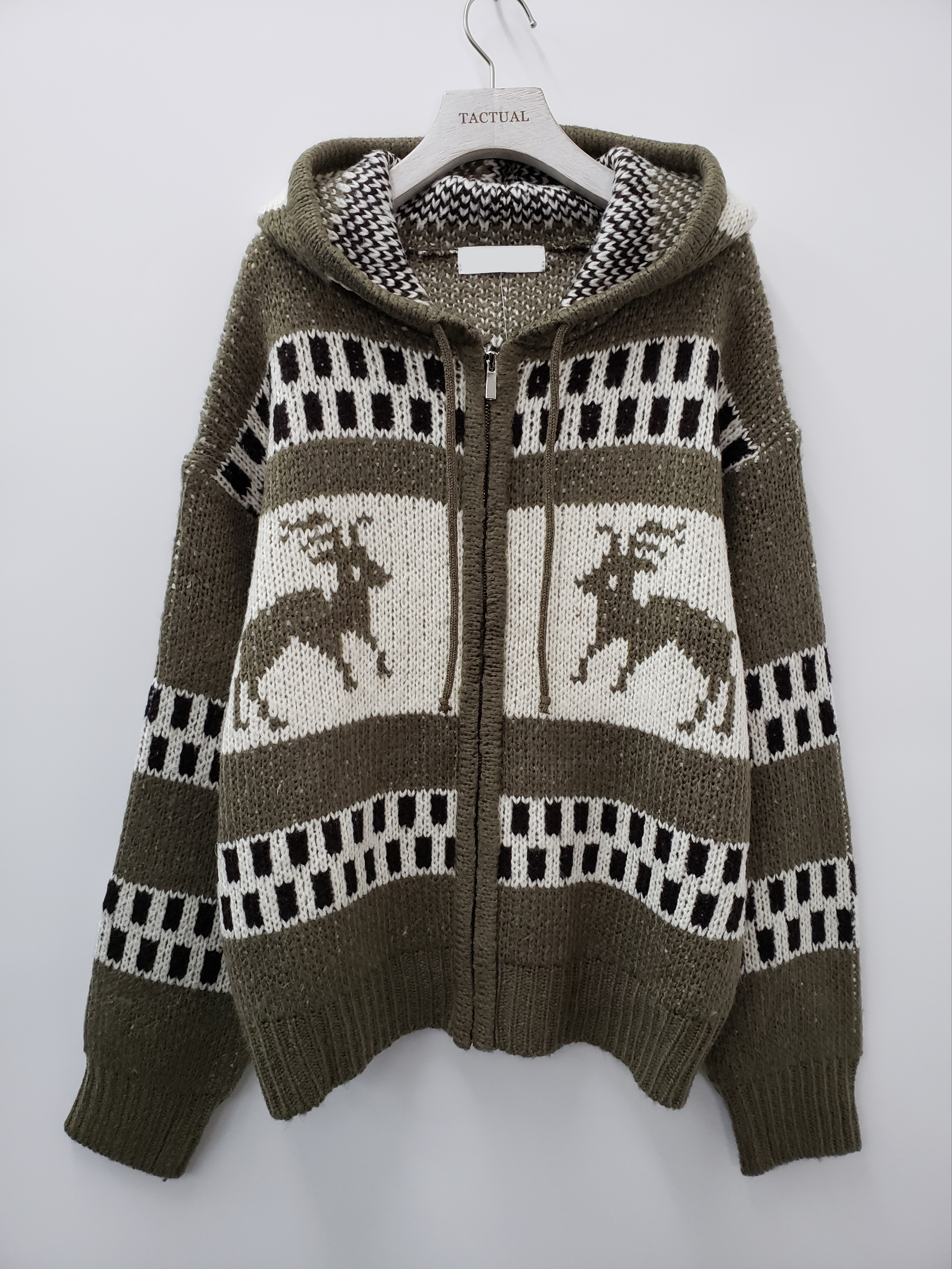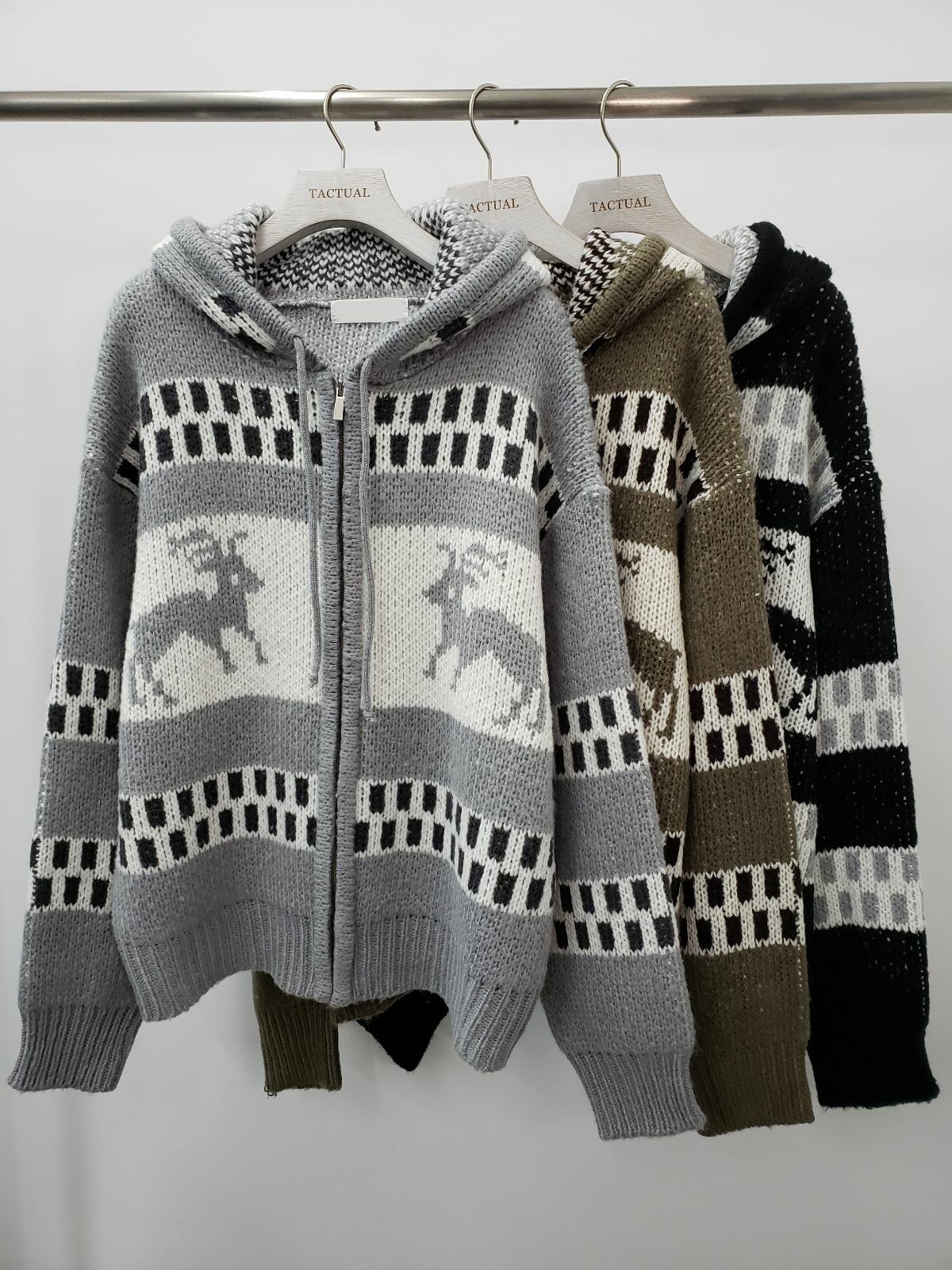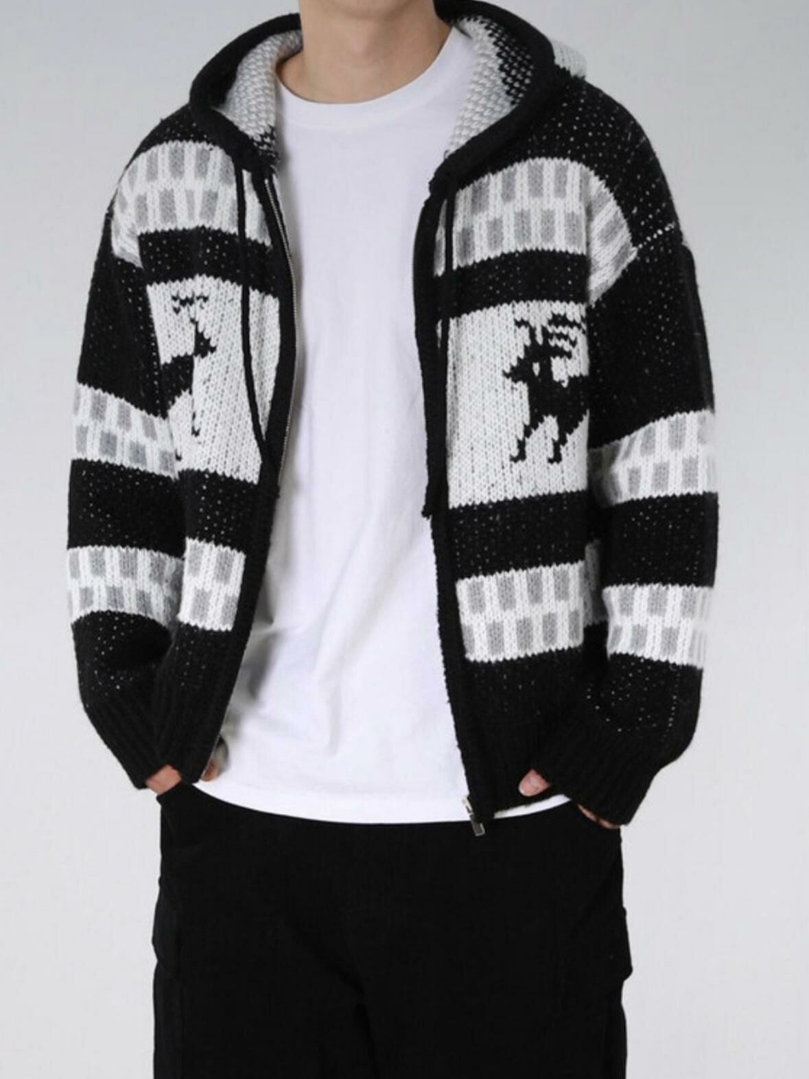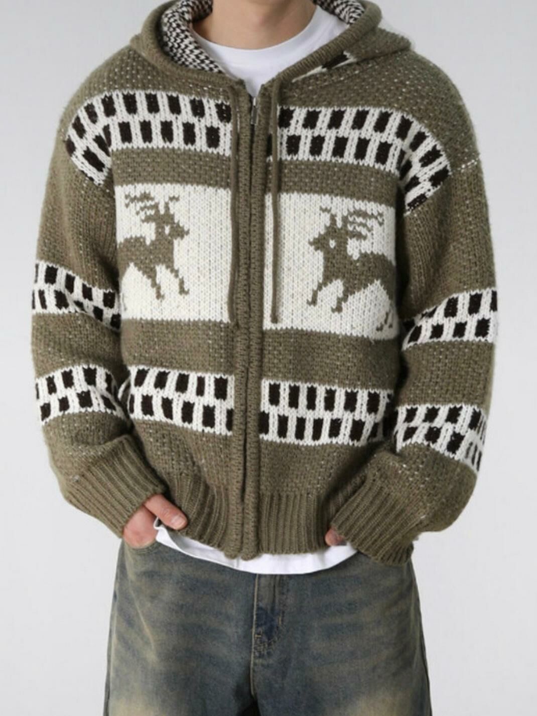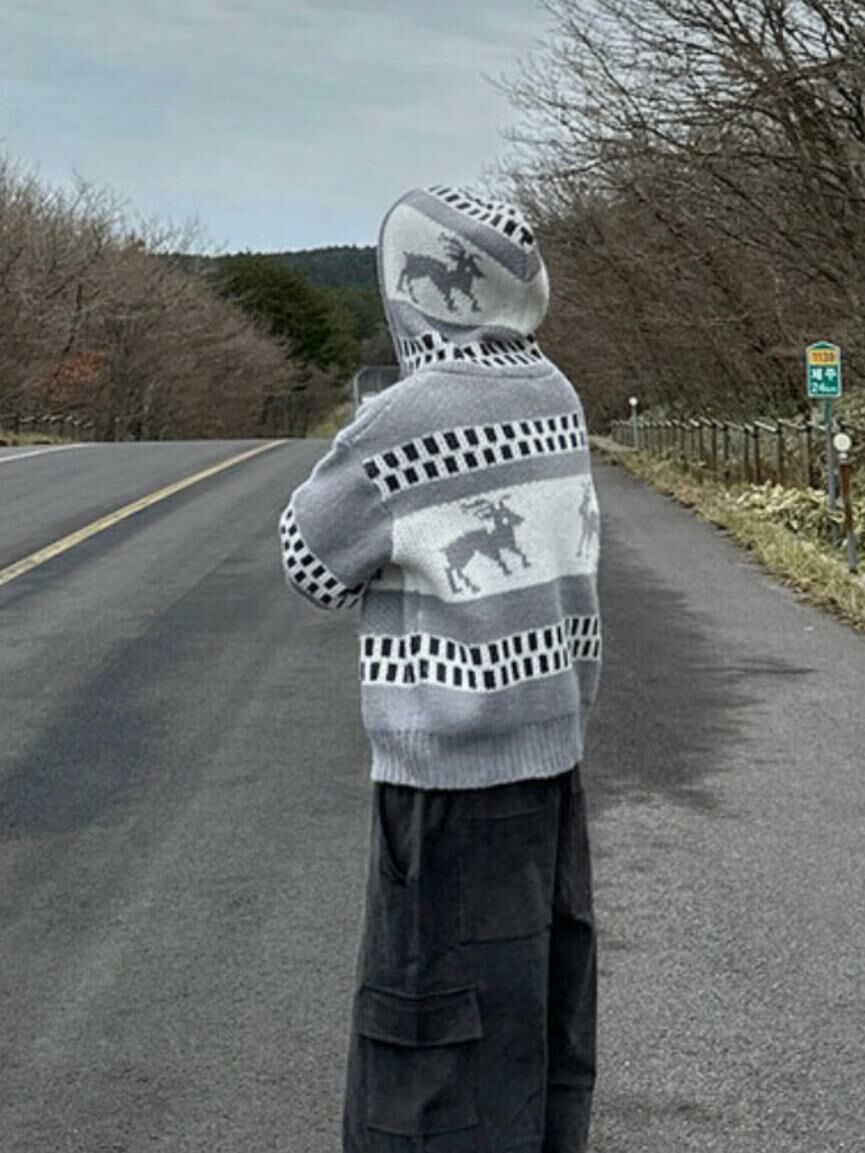 鹿圖案連帽針織拉鍊外套 JK2194