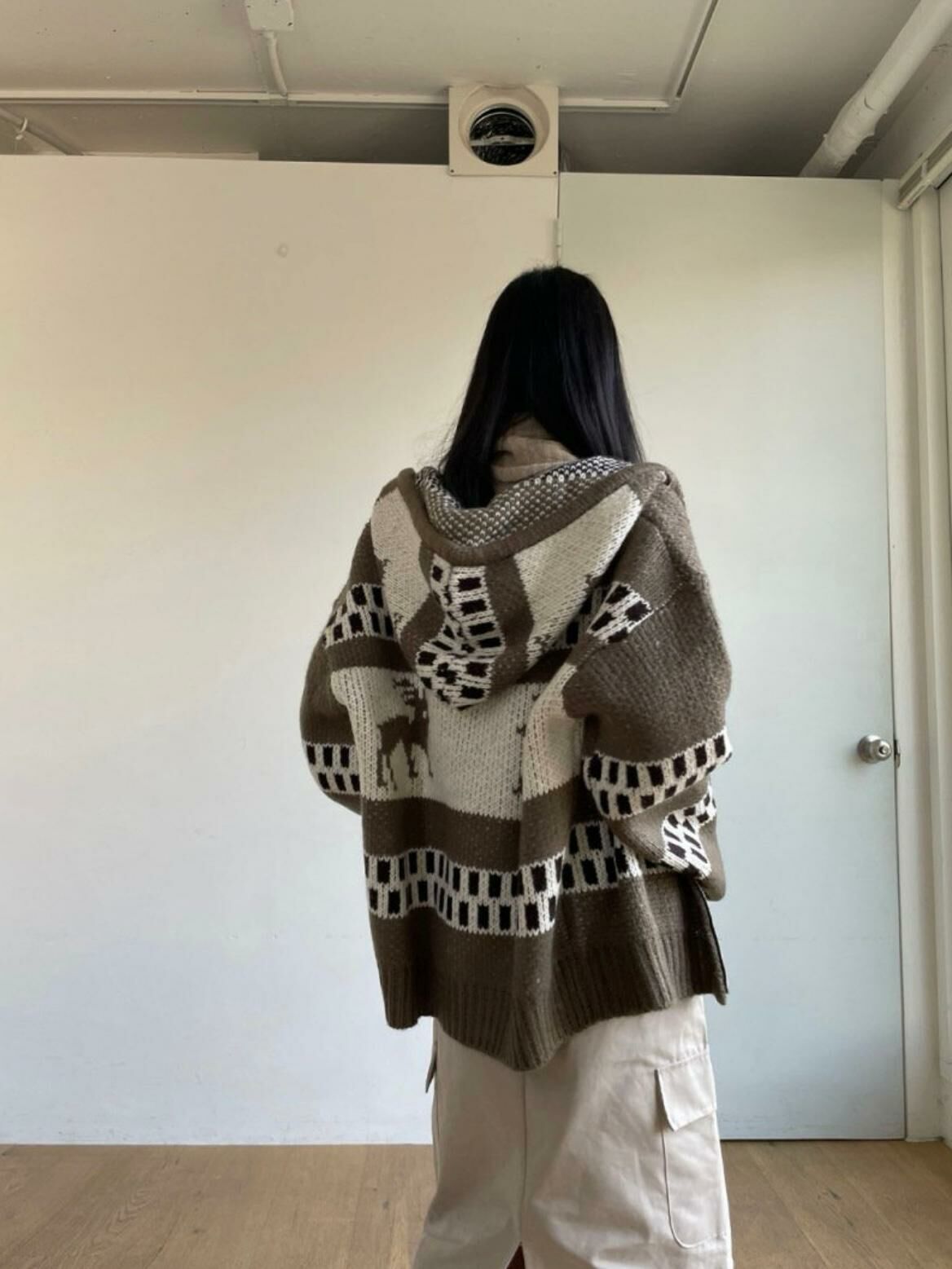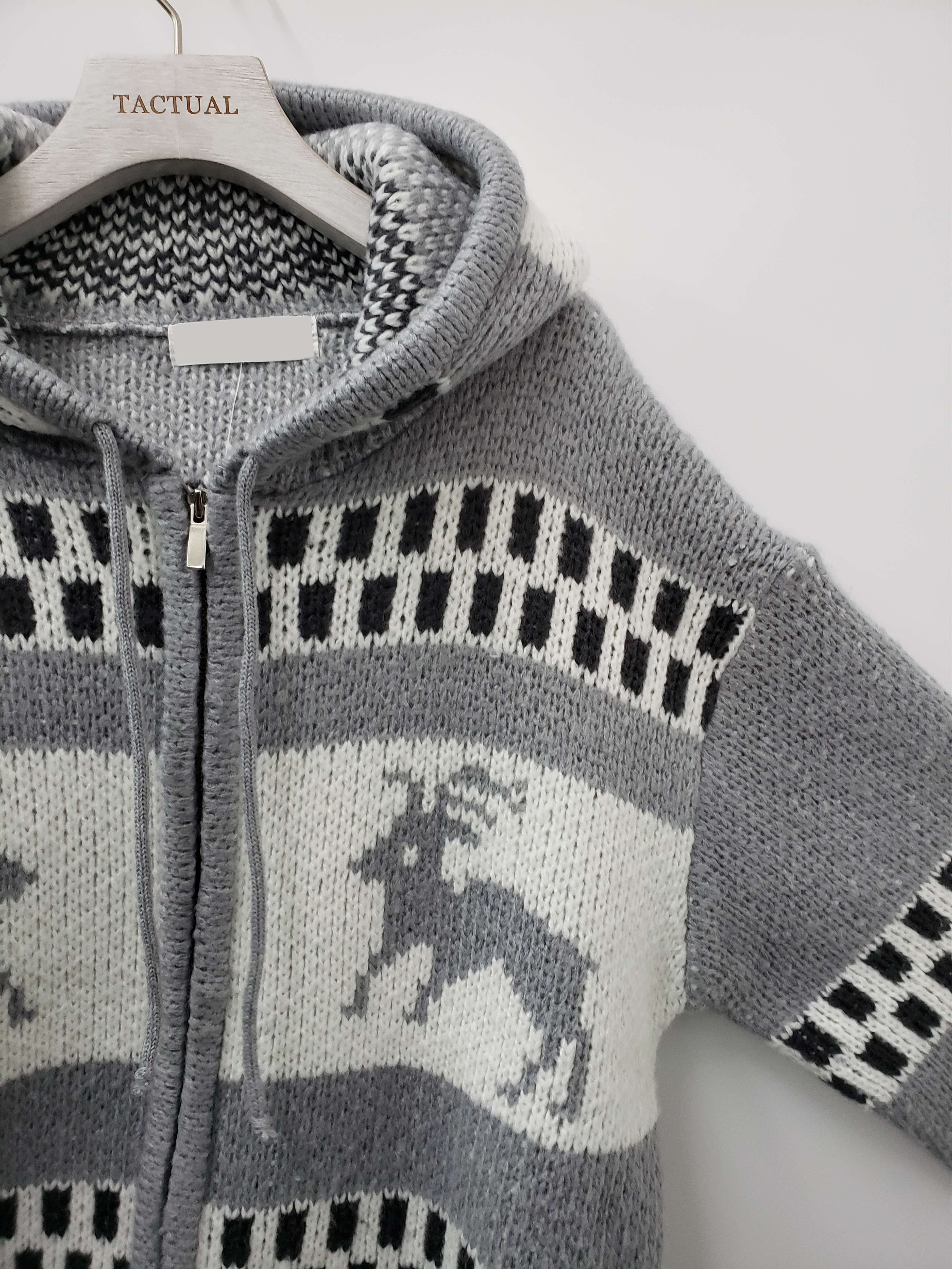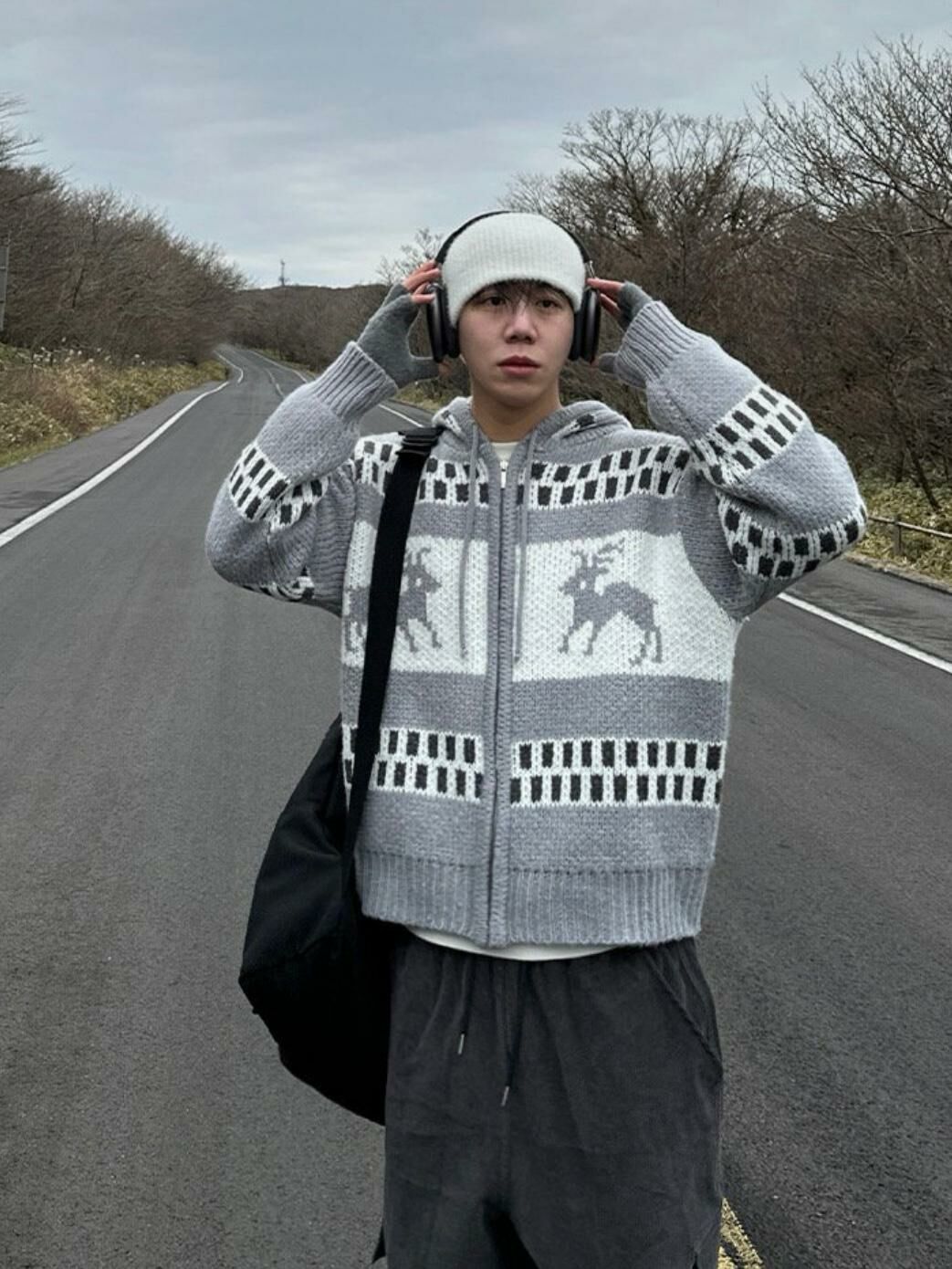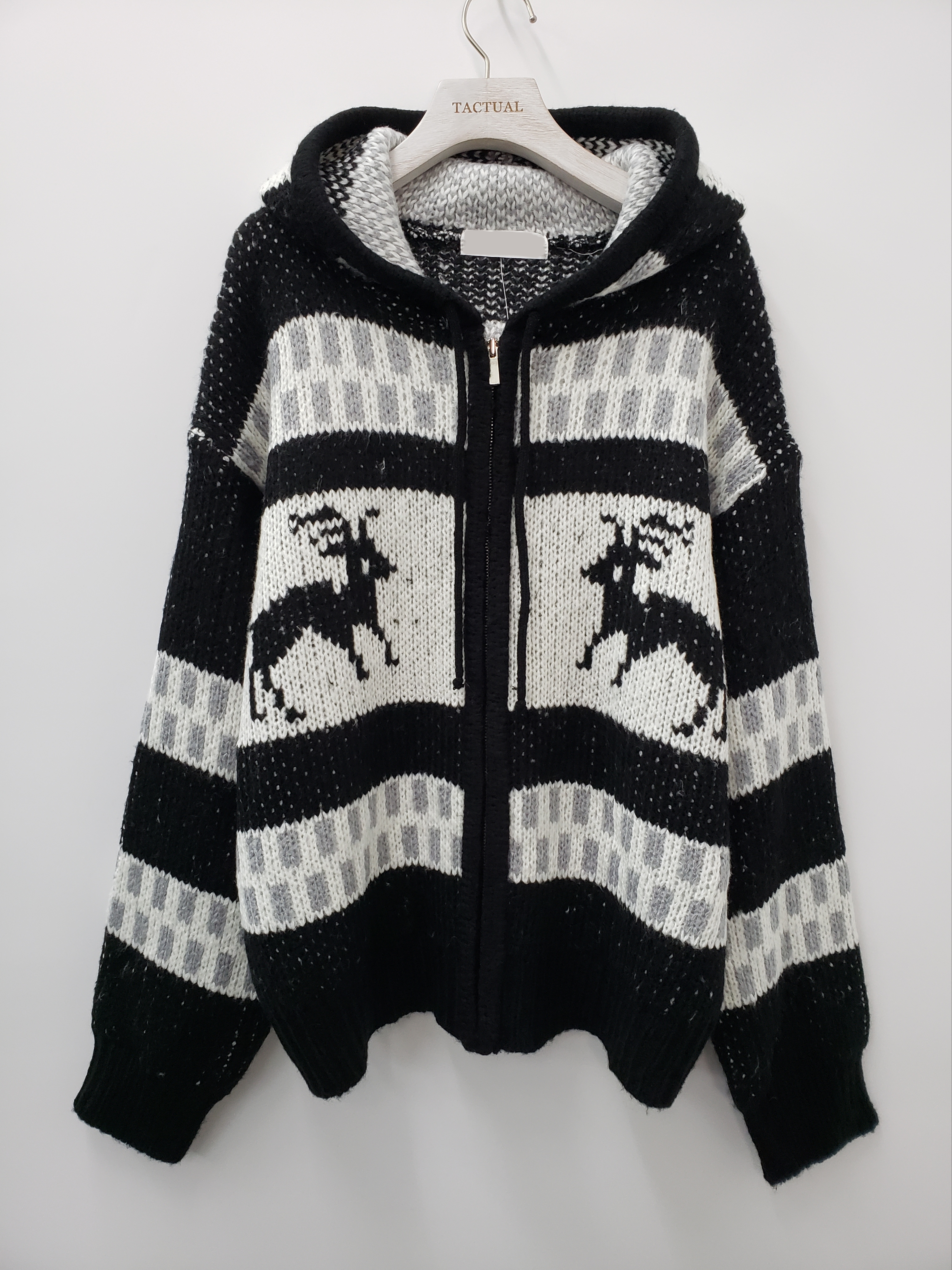 鹿圖案連帽針織拉鍊外套 JK2194