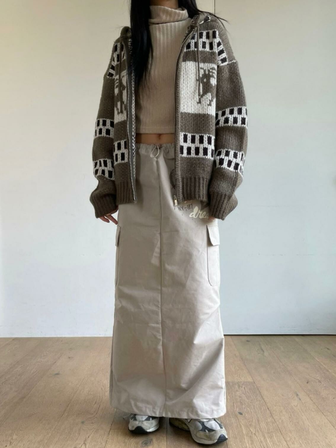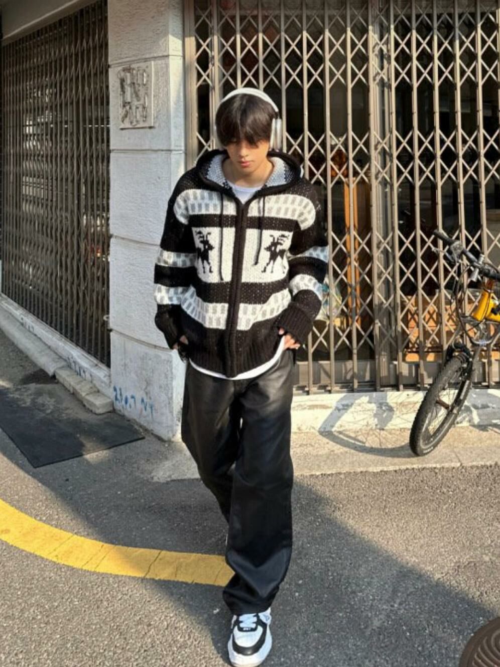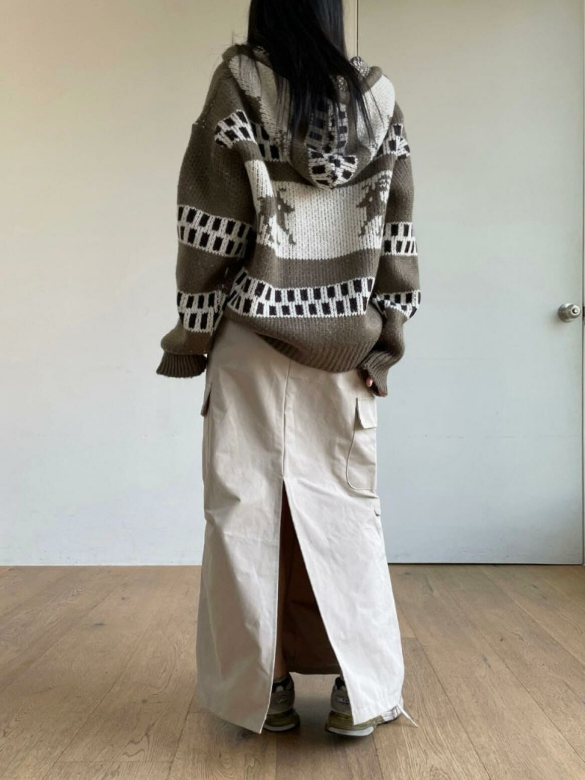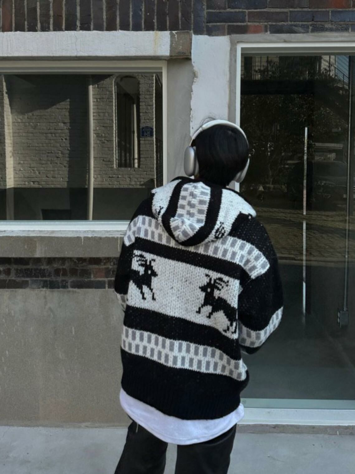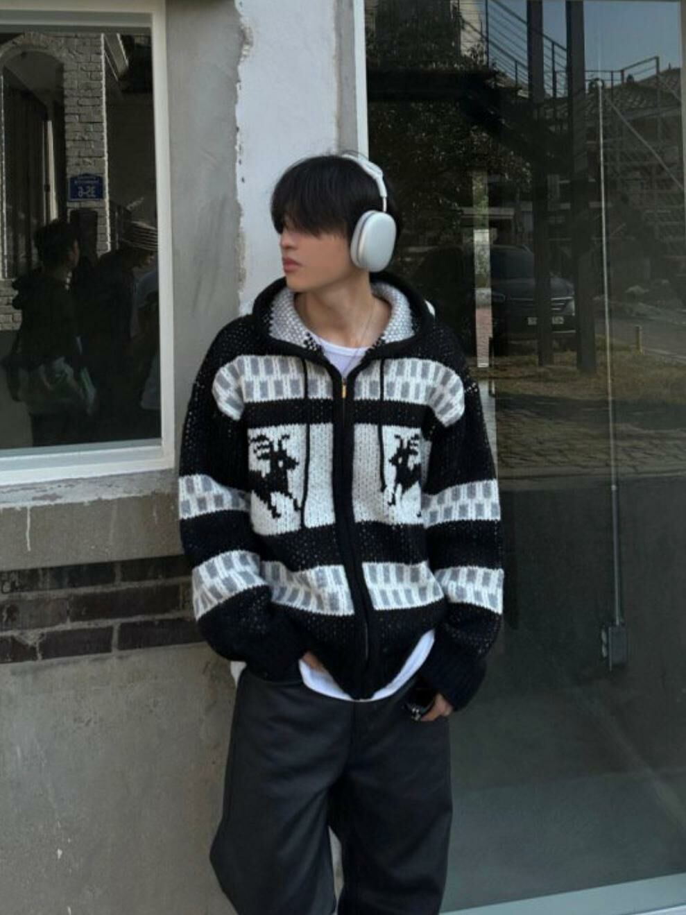 鹿圖案連帽針織拉鍊外套 JK2194