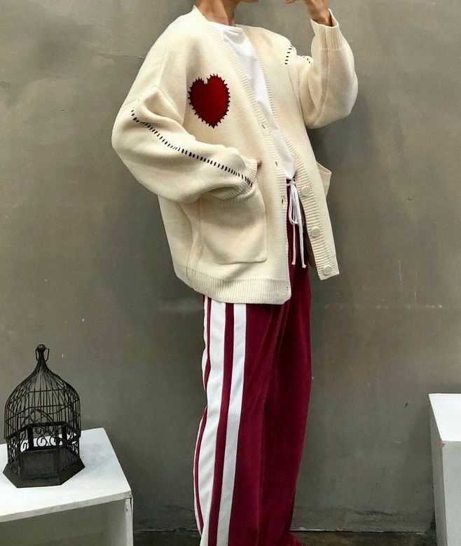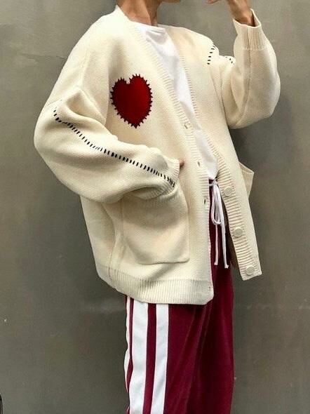 心形圖案開胸針織外套 JK2389