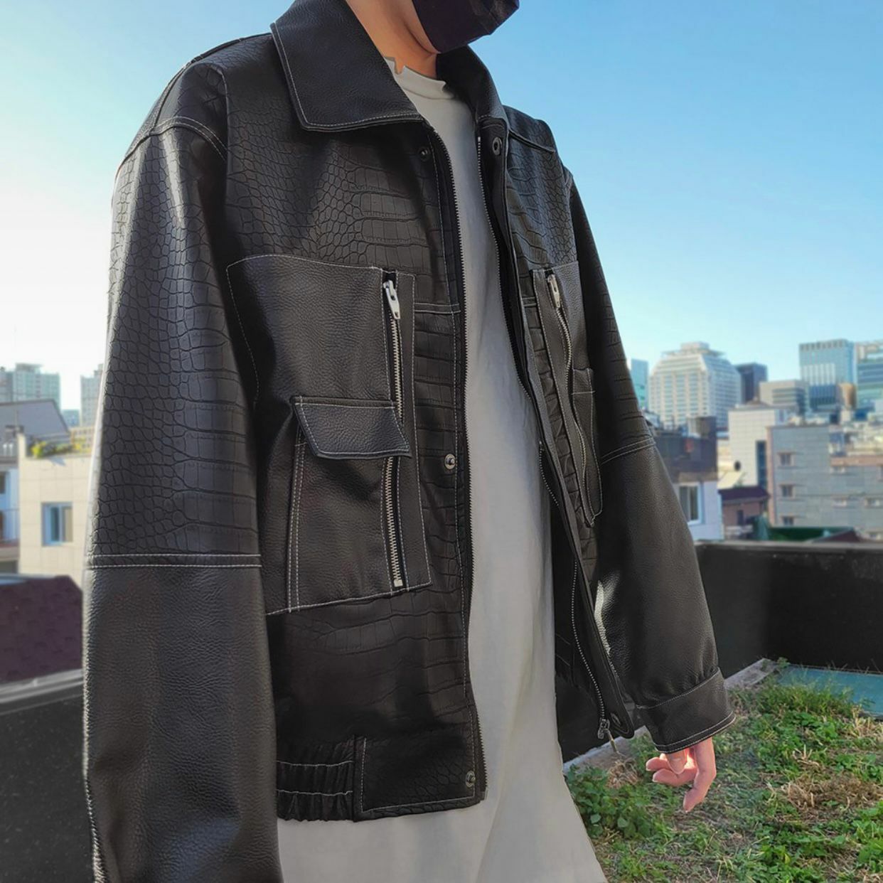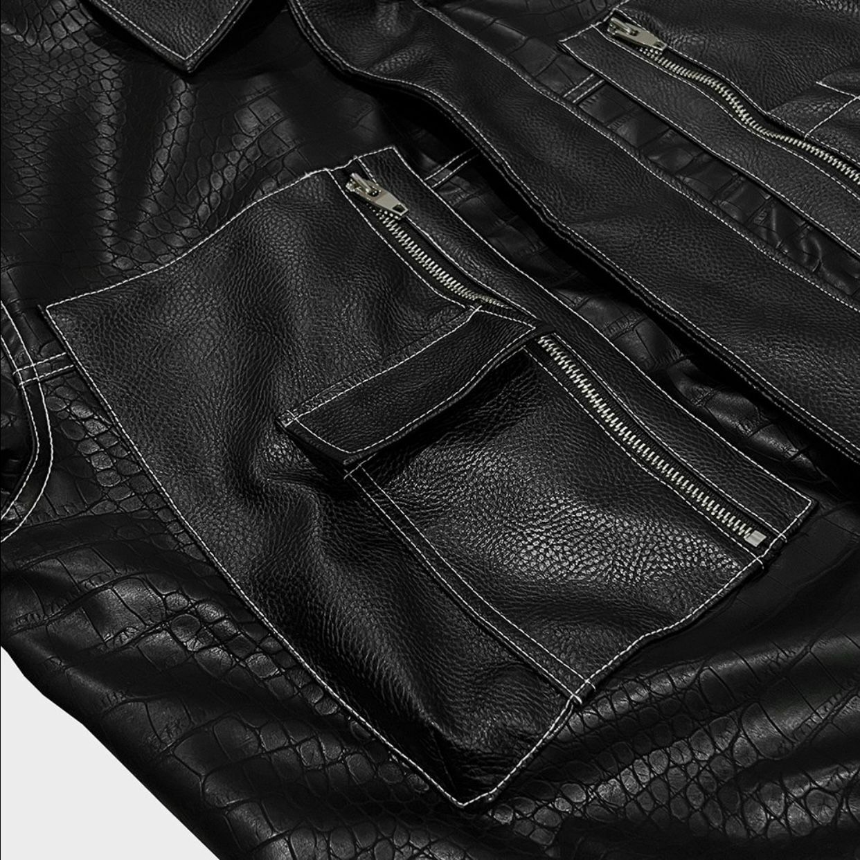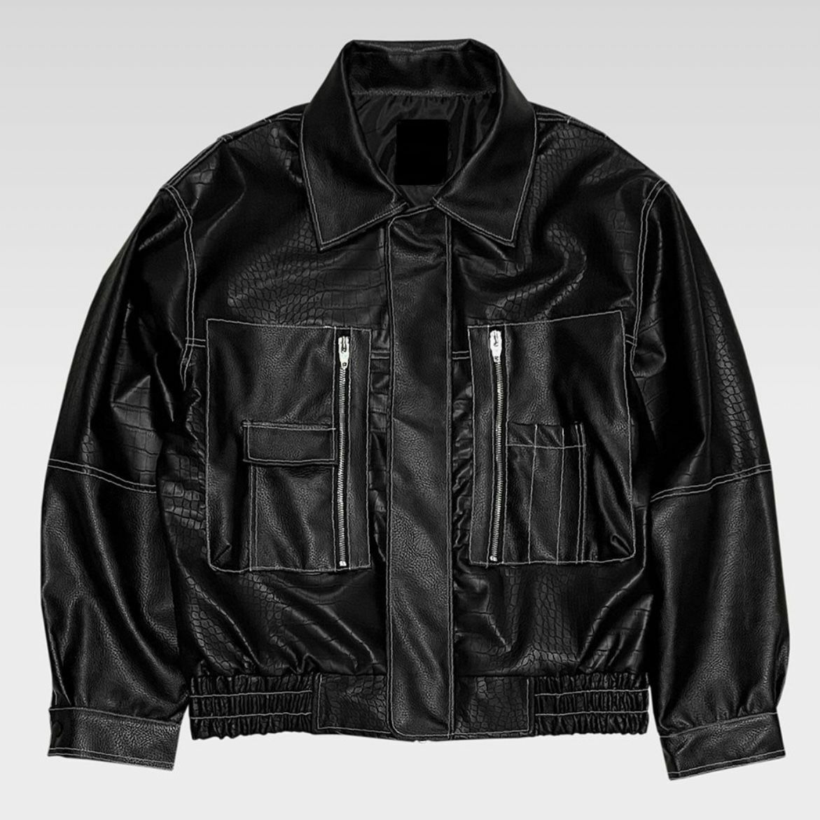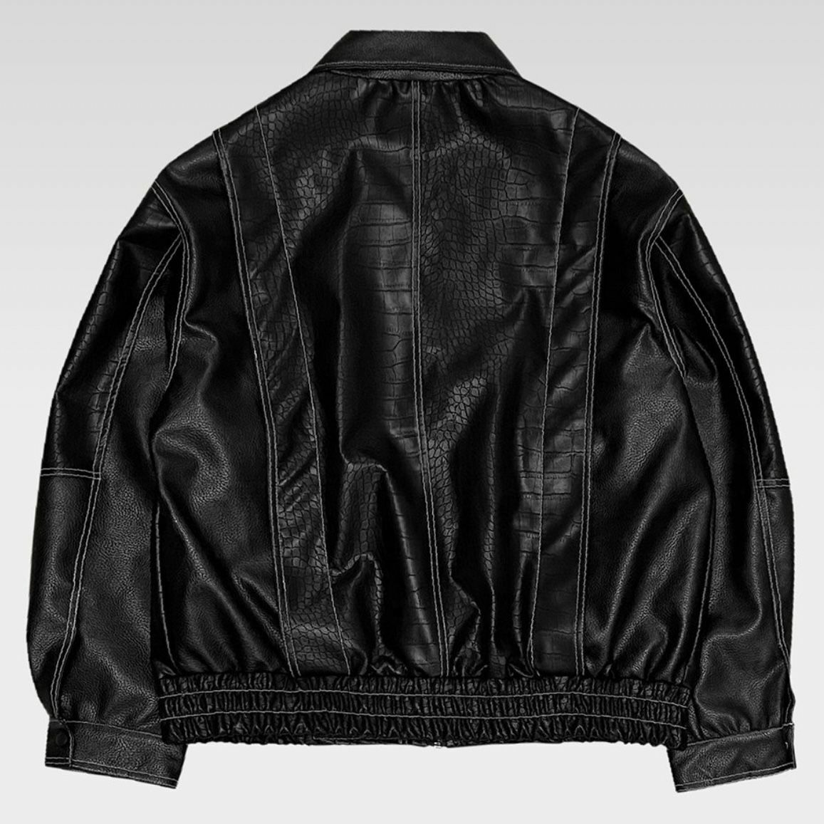 反領暗蛇紋拉鍊合成皮褸 JK2423