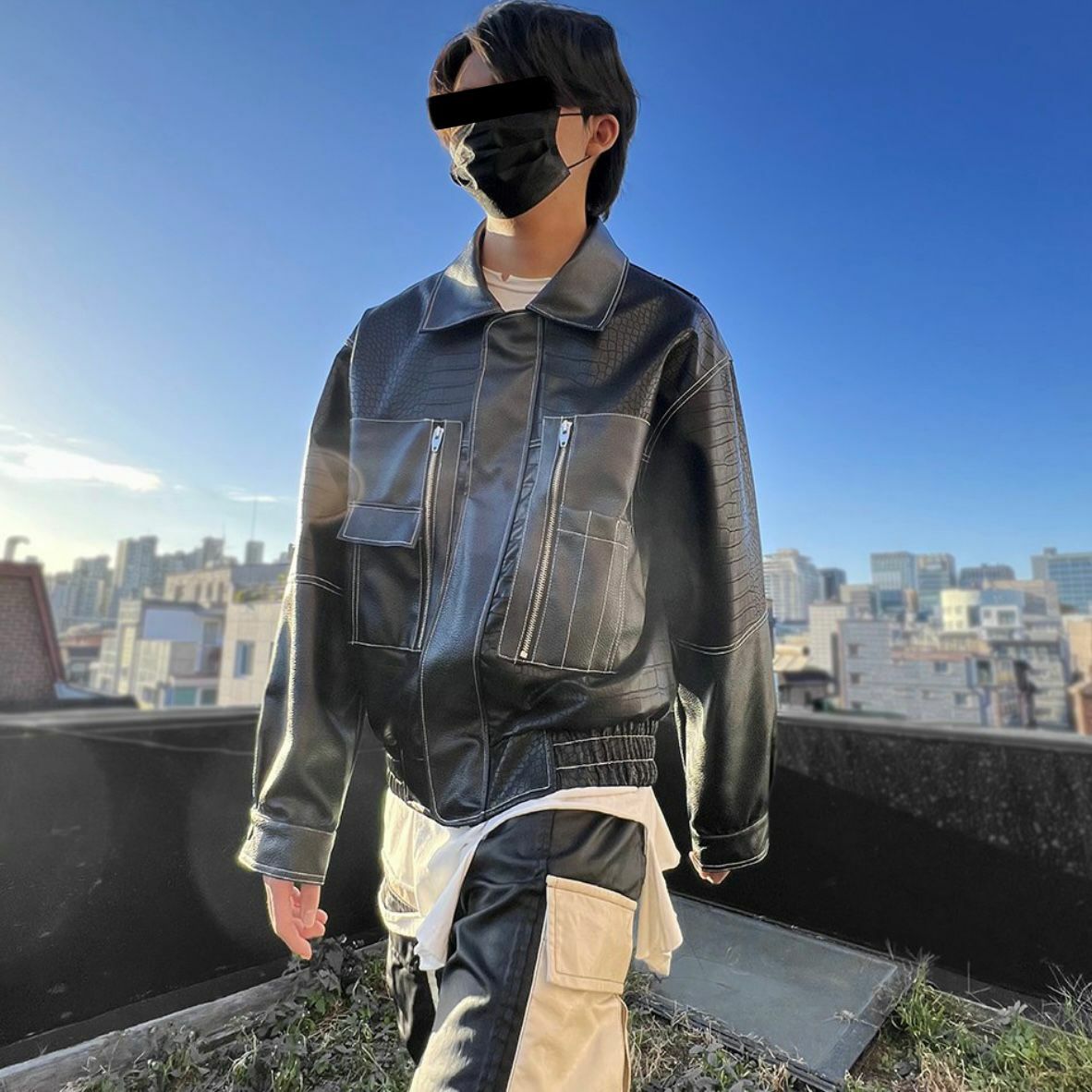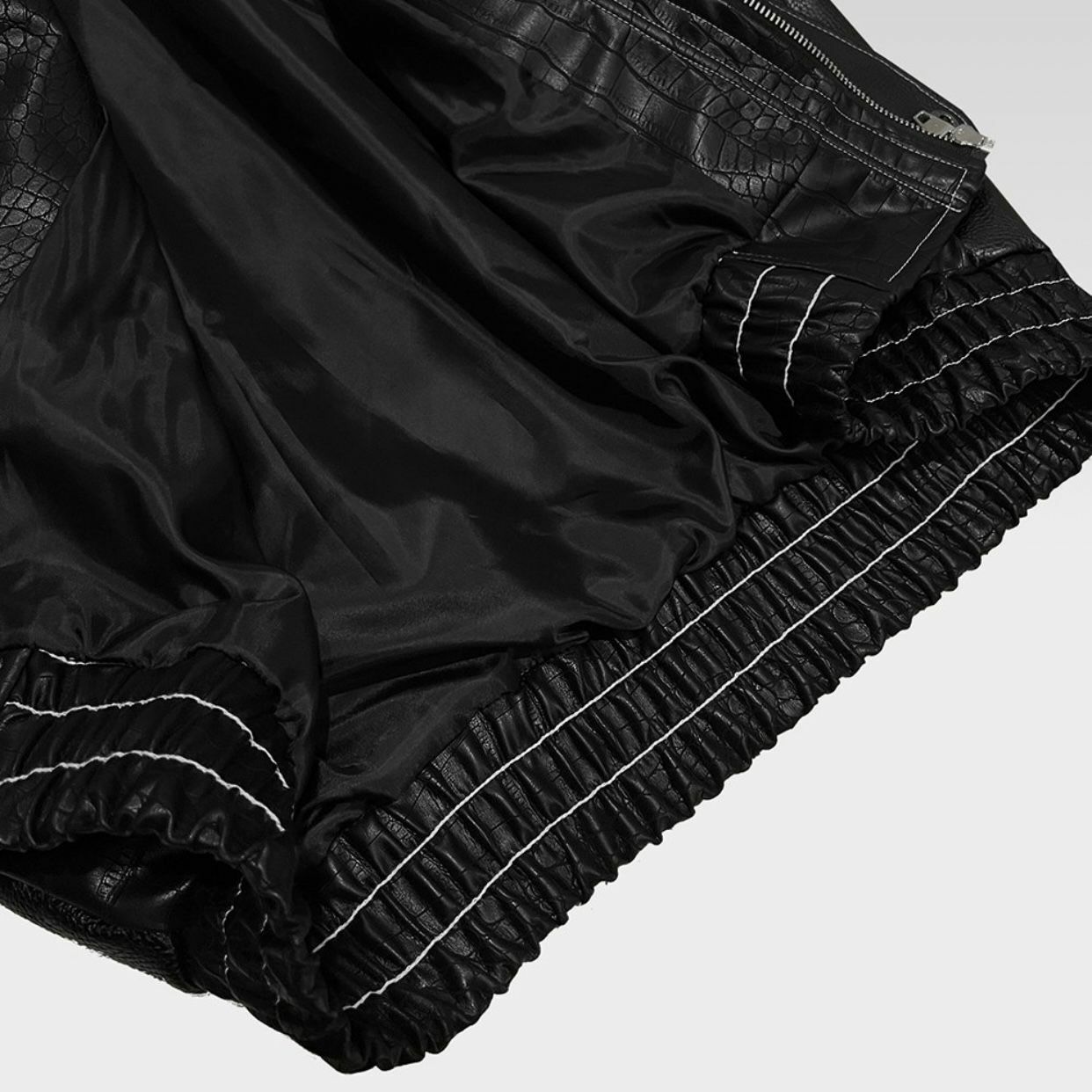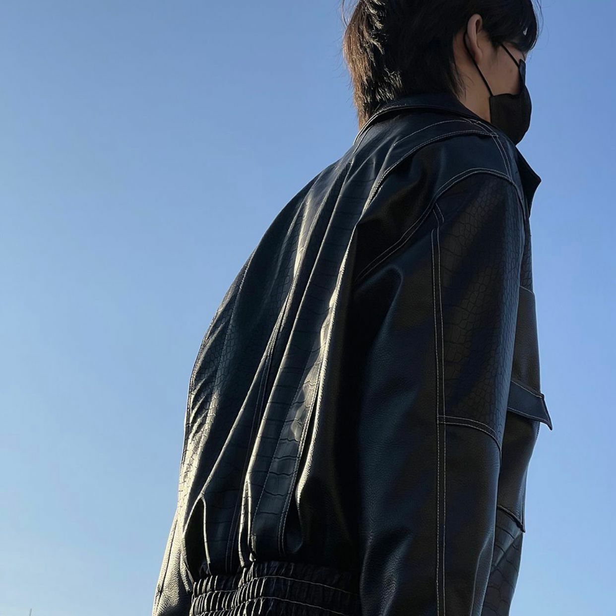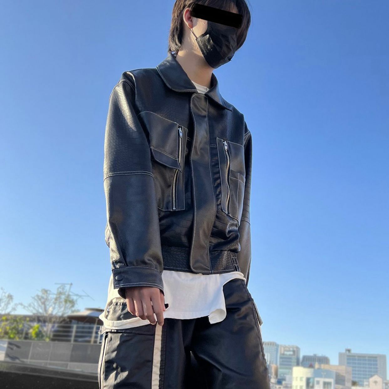 反領暗蛇紋拉鍊合成皮褸 JK2423
