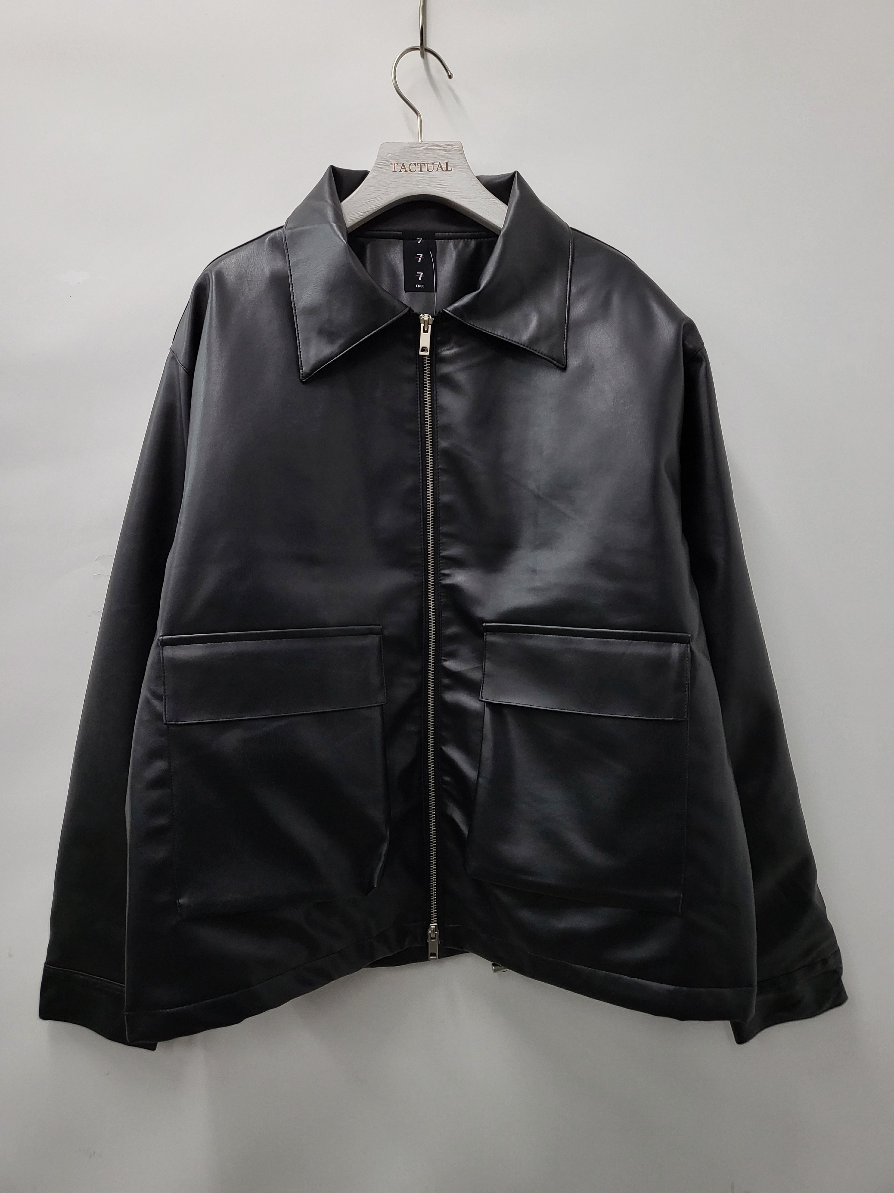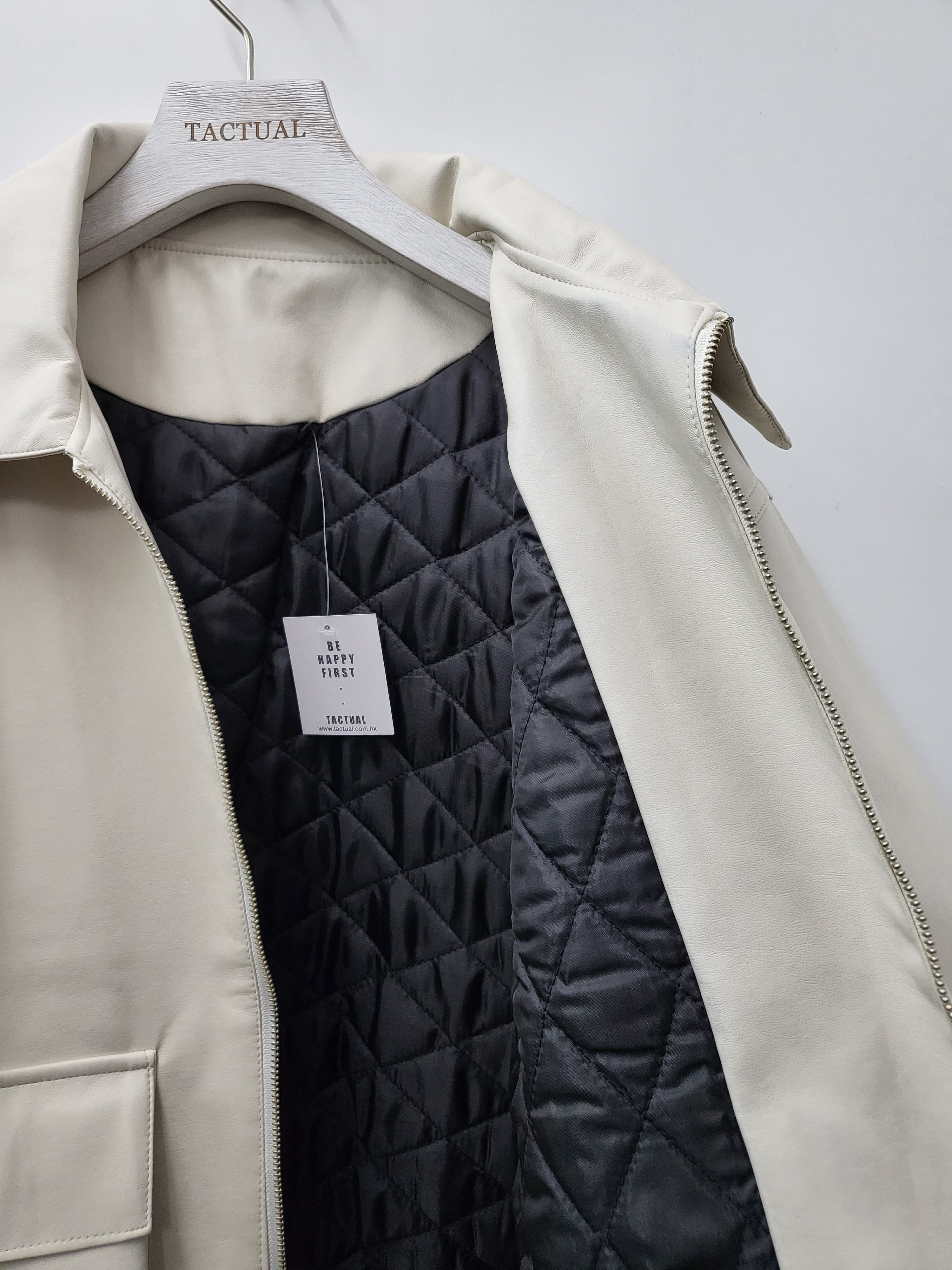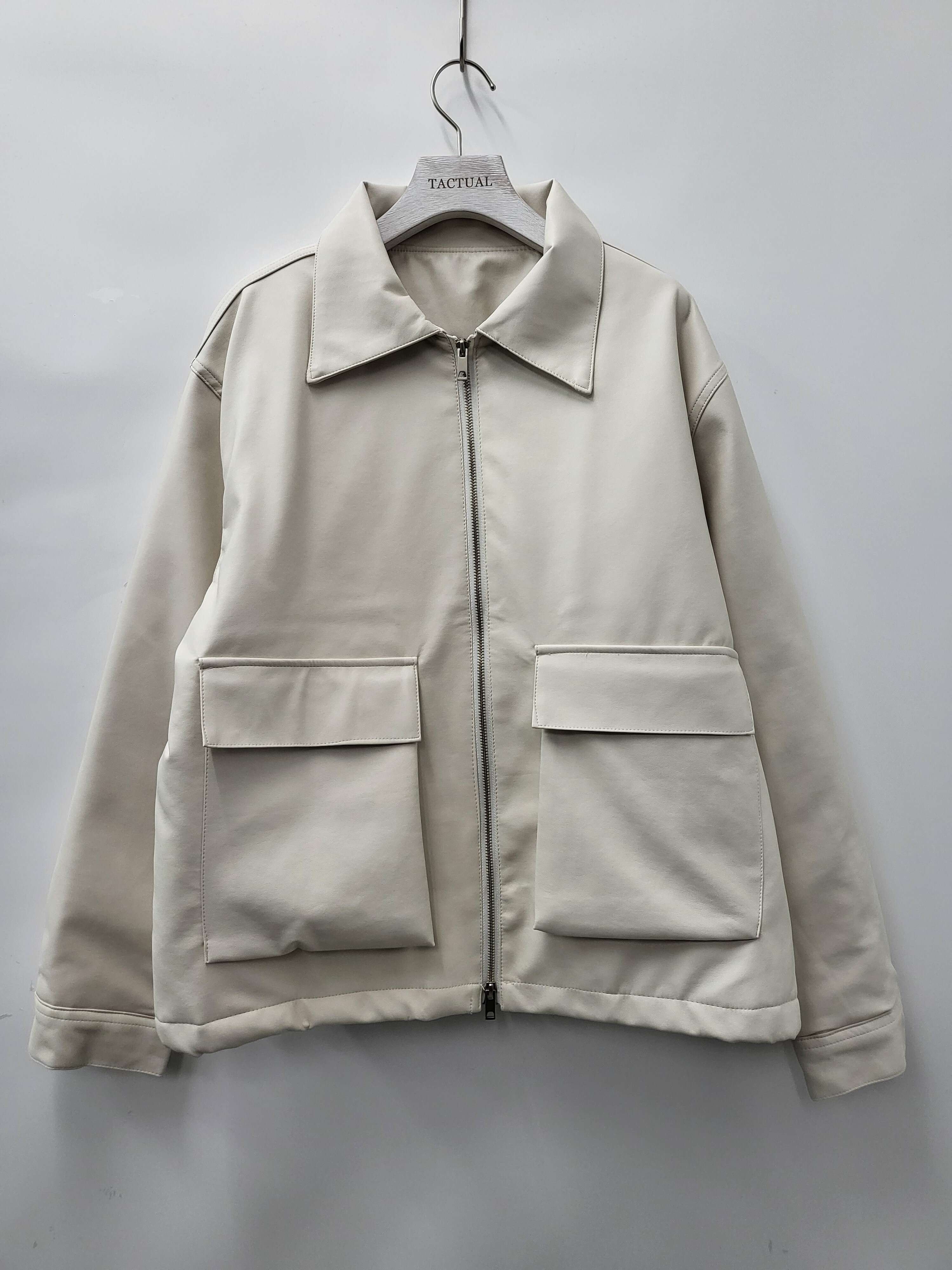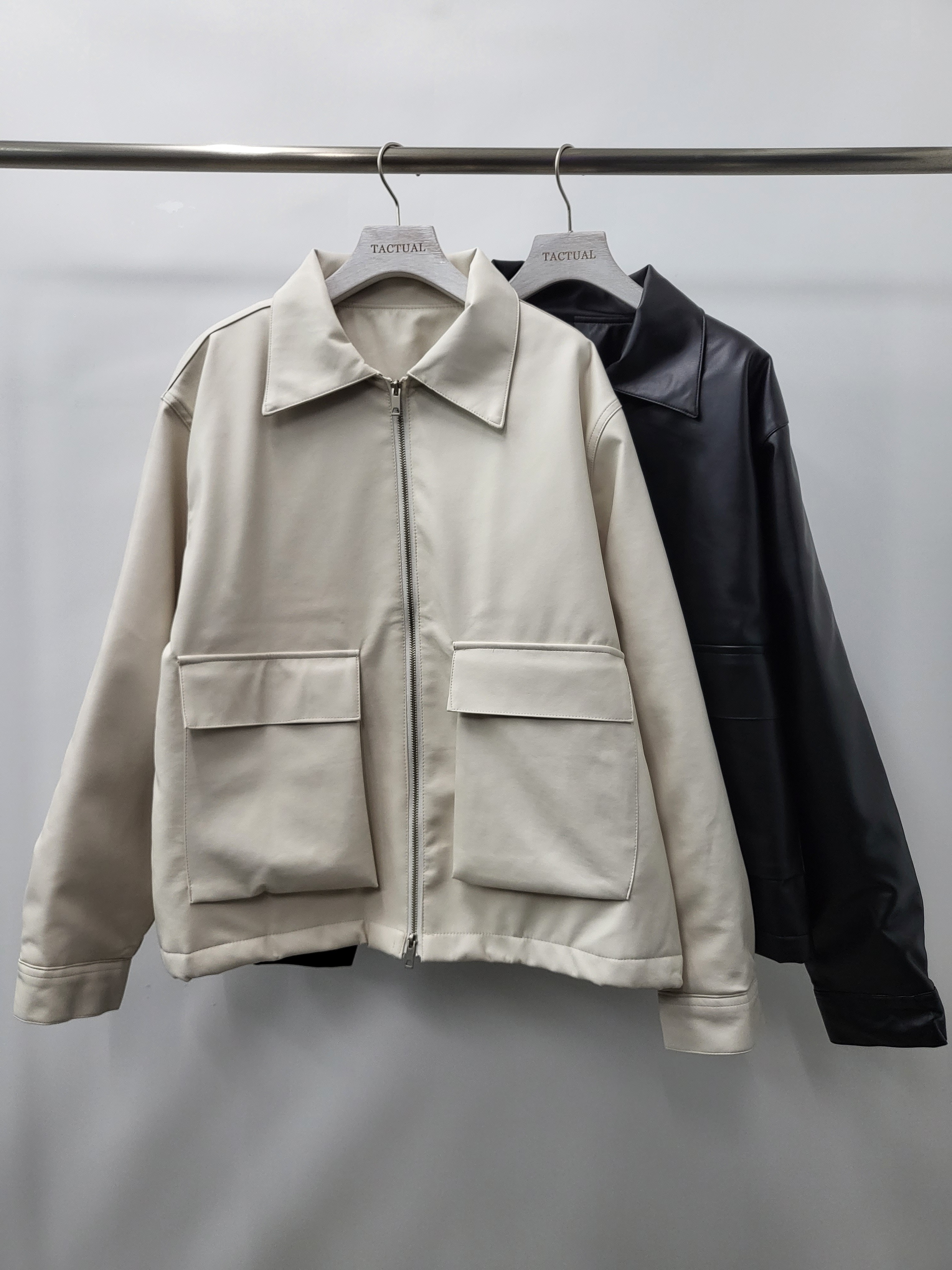 反領拉鍊合成皮褸(薄夾棉) JK2449