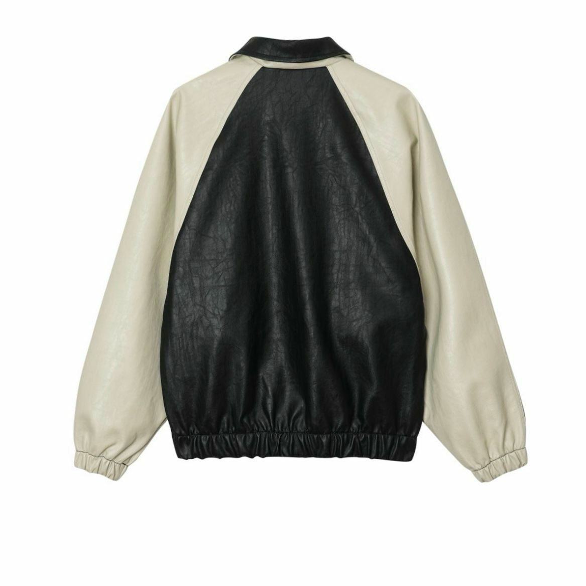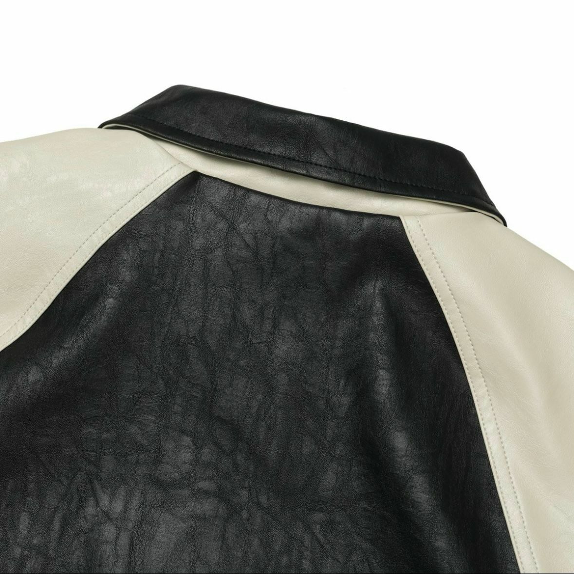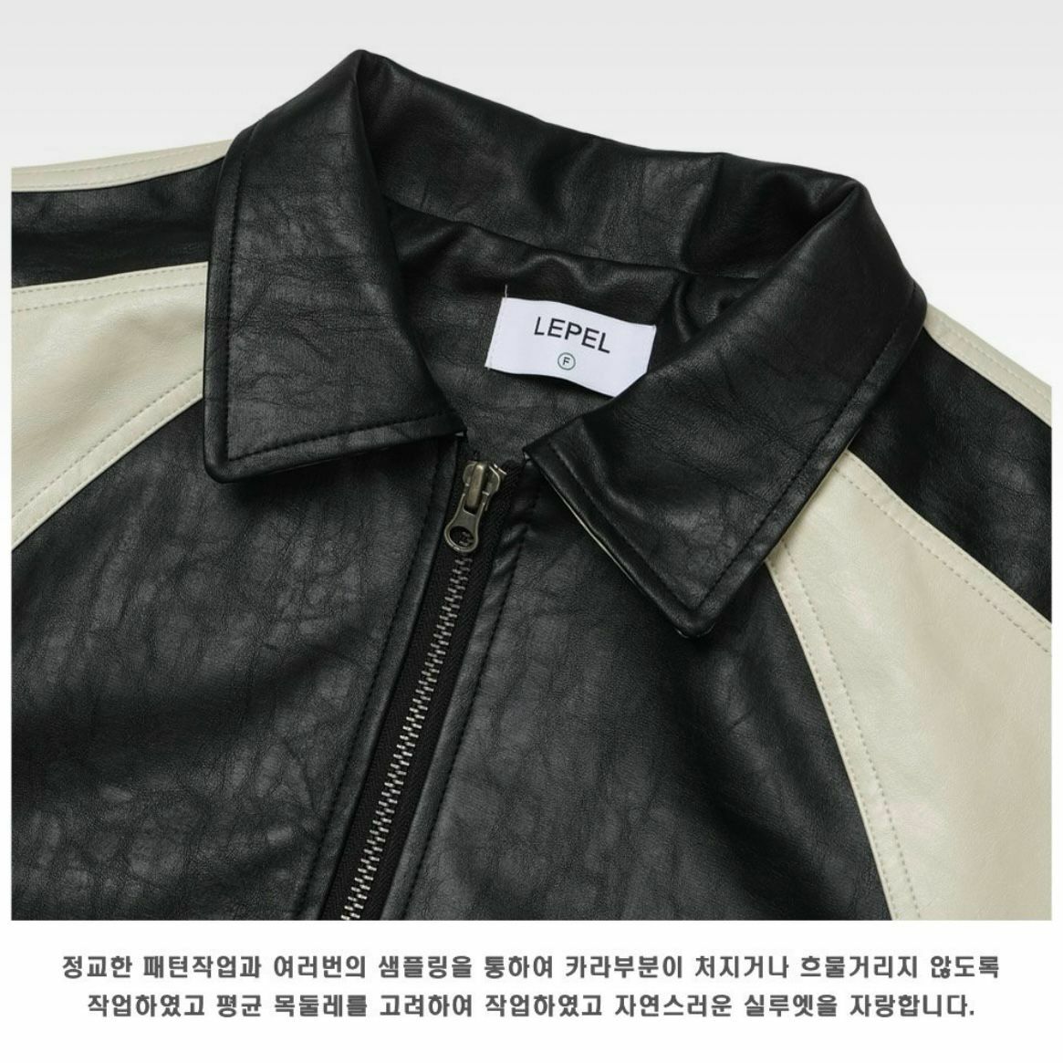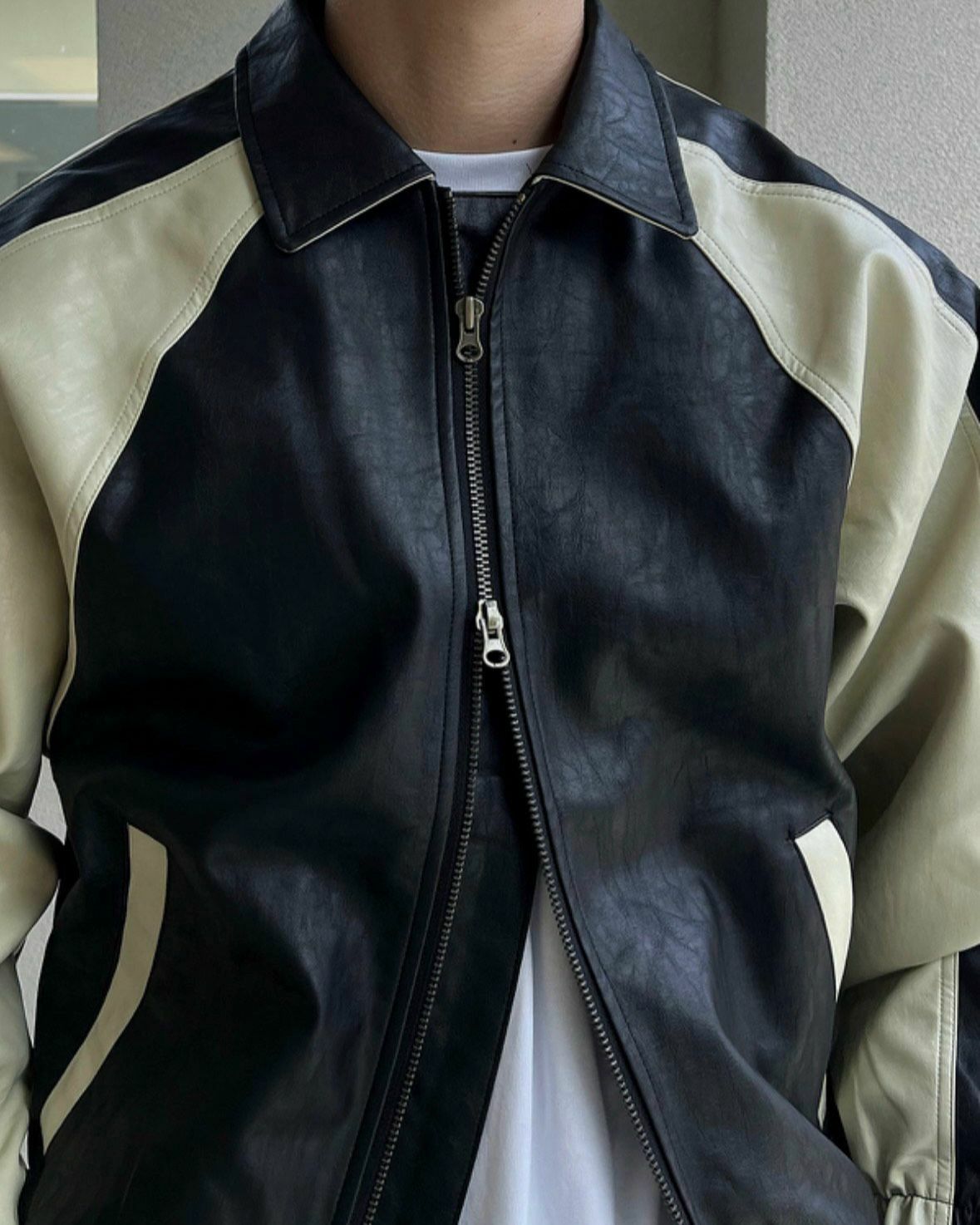 反領拼色拉鍊合成皮褸 JK2468