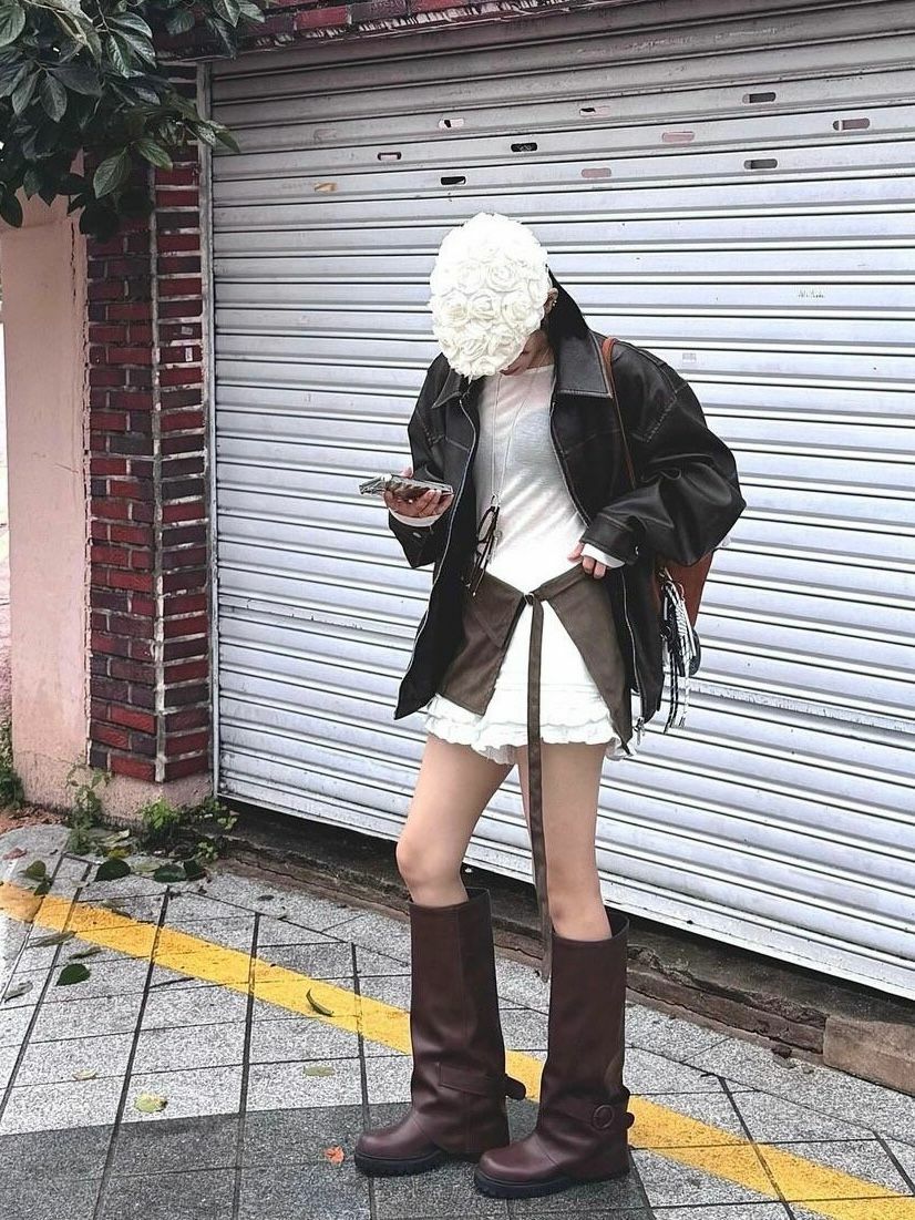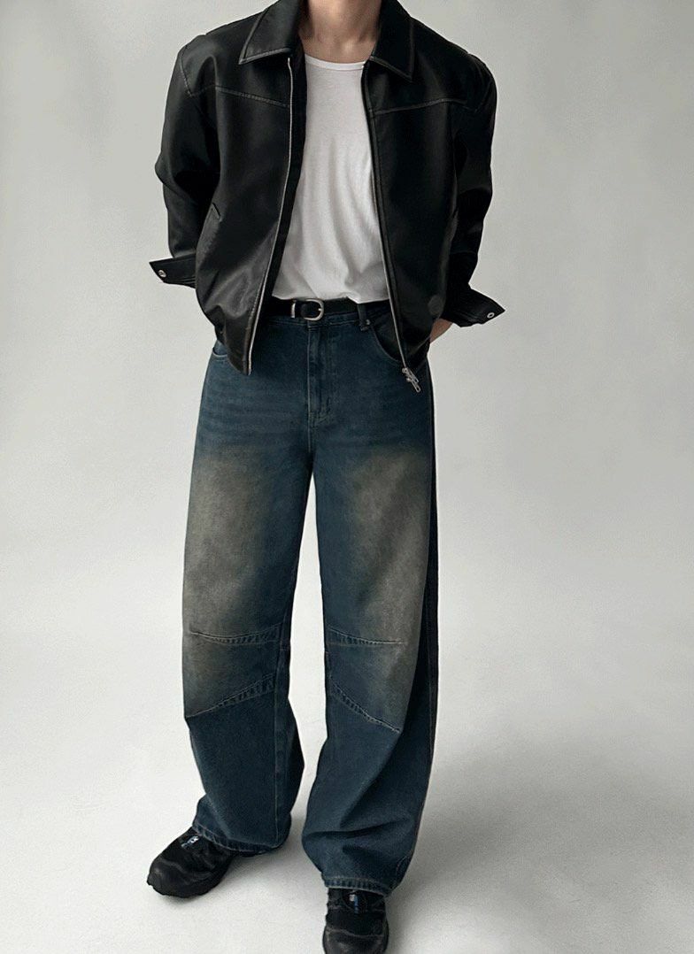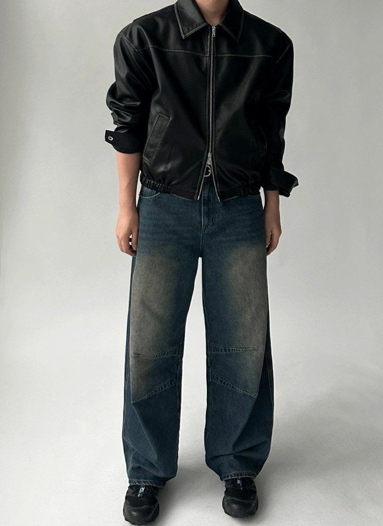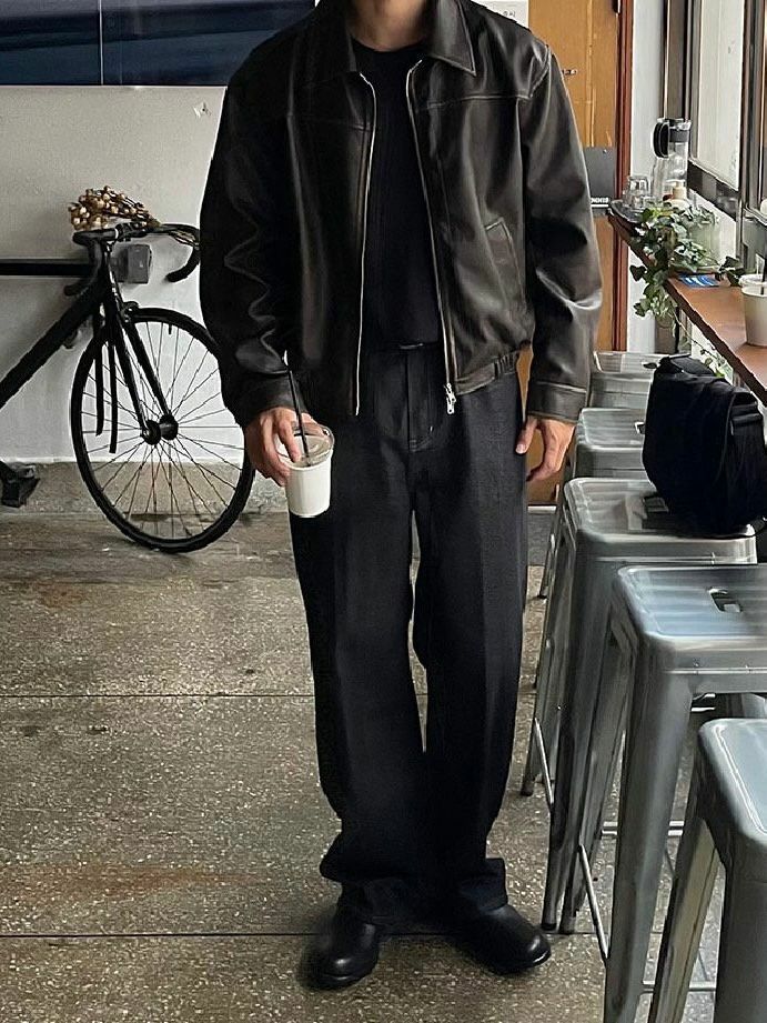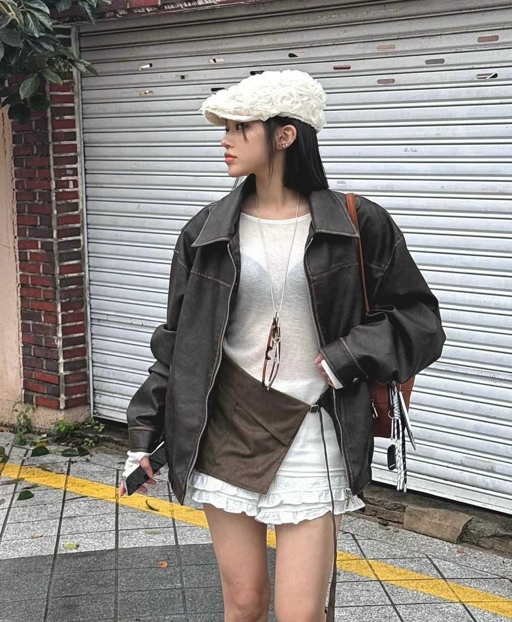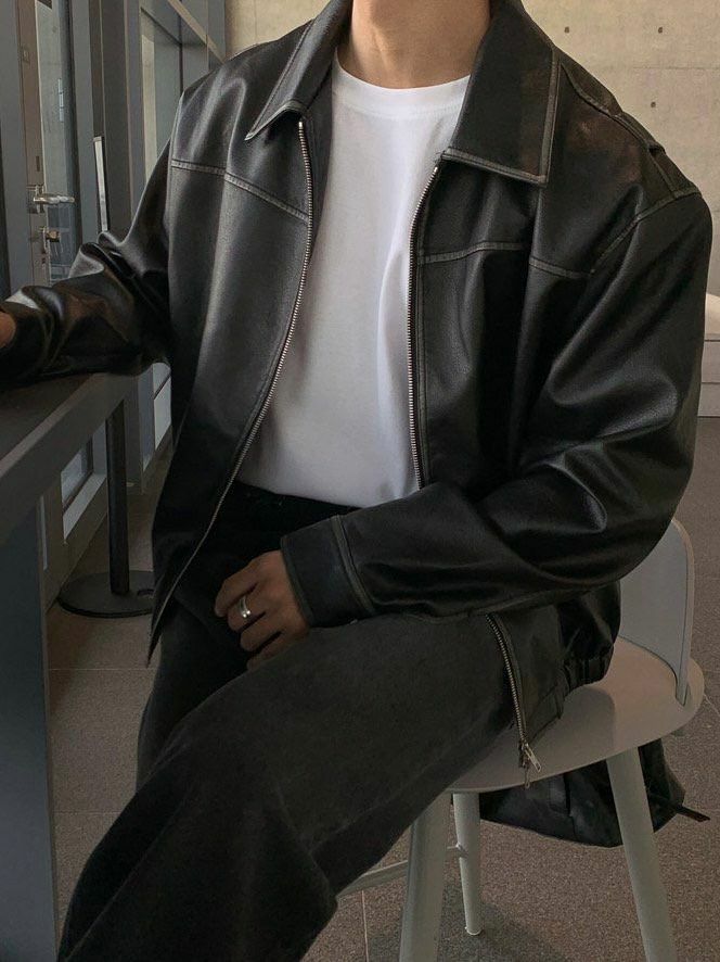 洗水反領拉鍊合成皮褸 JK2560