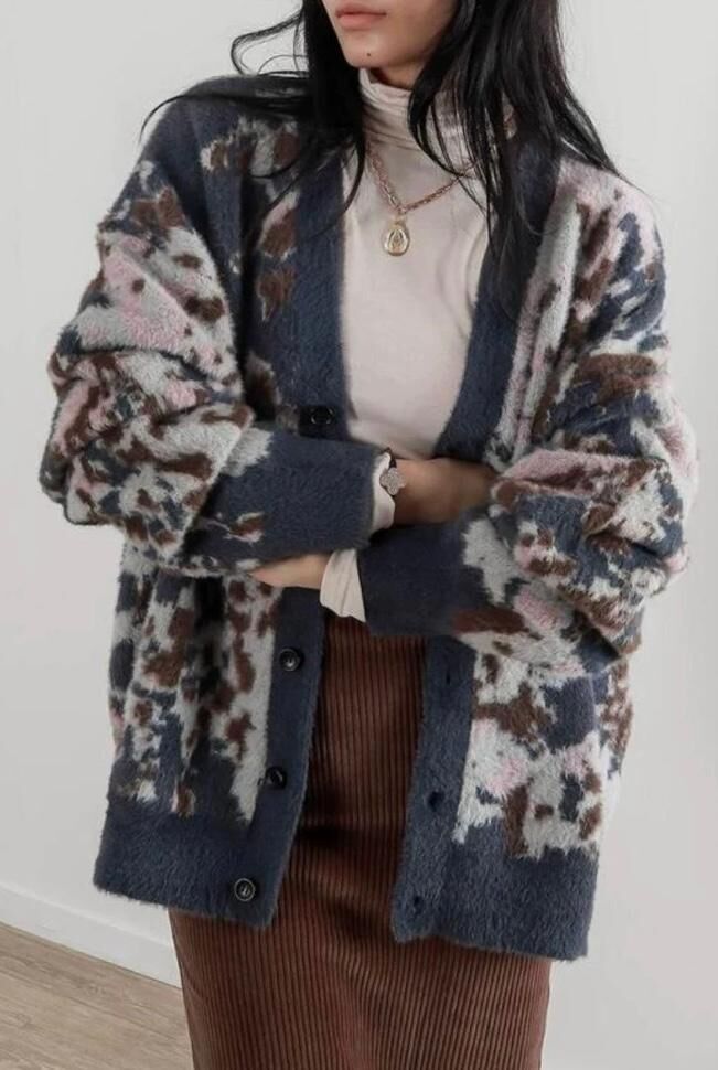 花紋開胸針織外套 JK2569