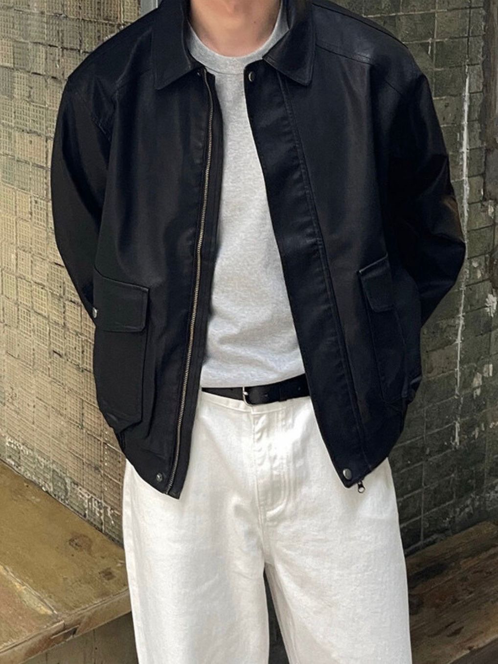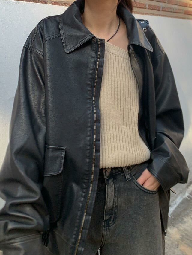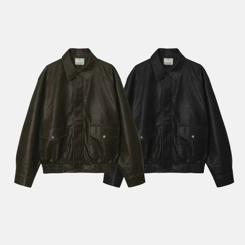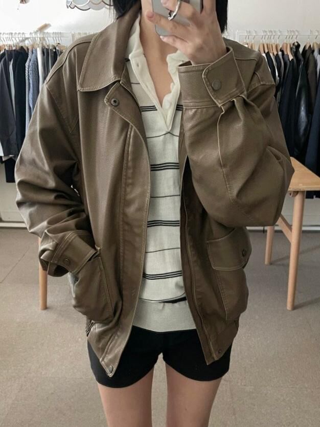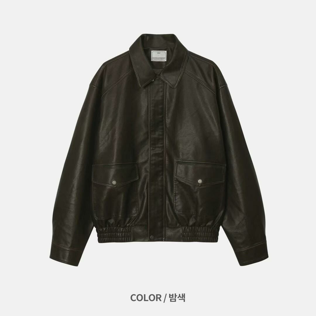 反領拉鍊合成皮褸 JK2574