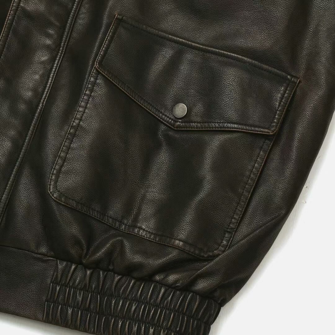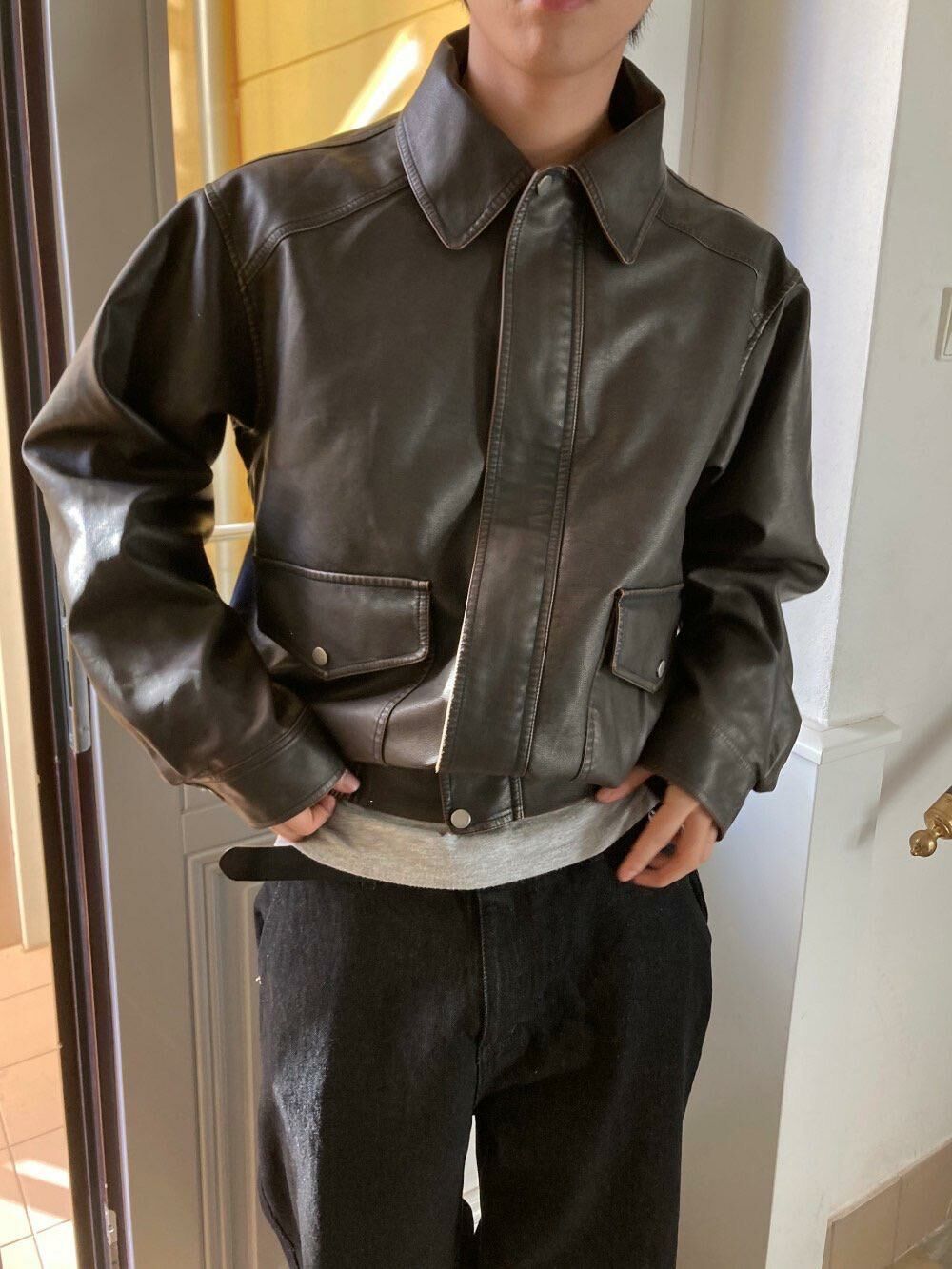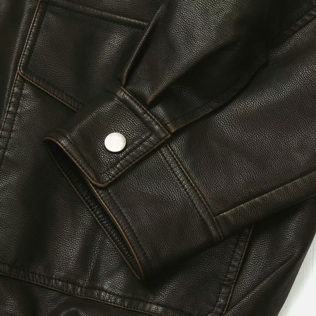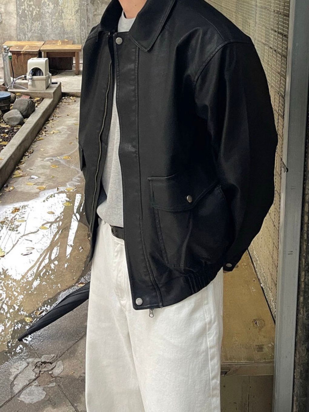 反領拉鍊合成皮褸 JK2574