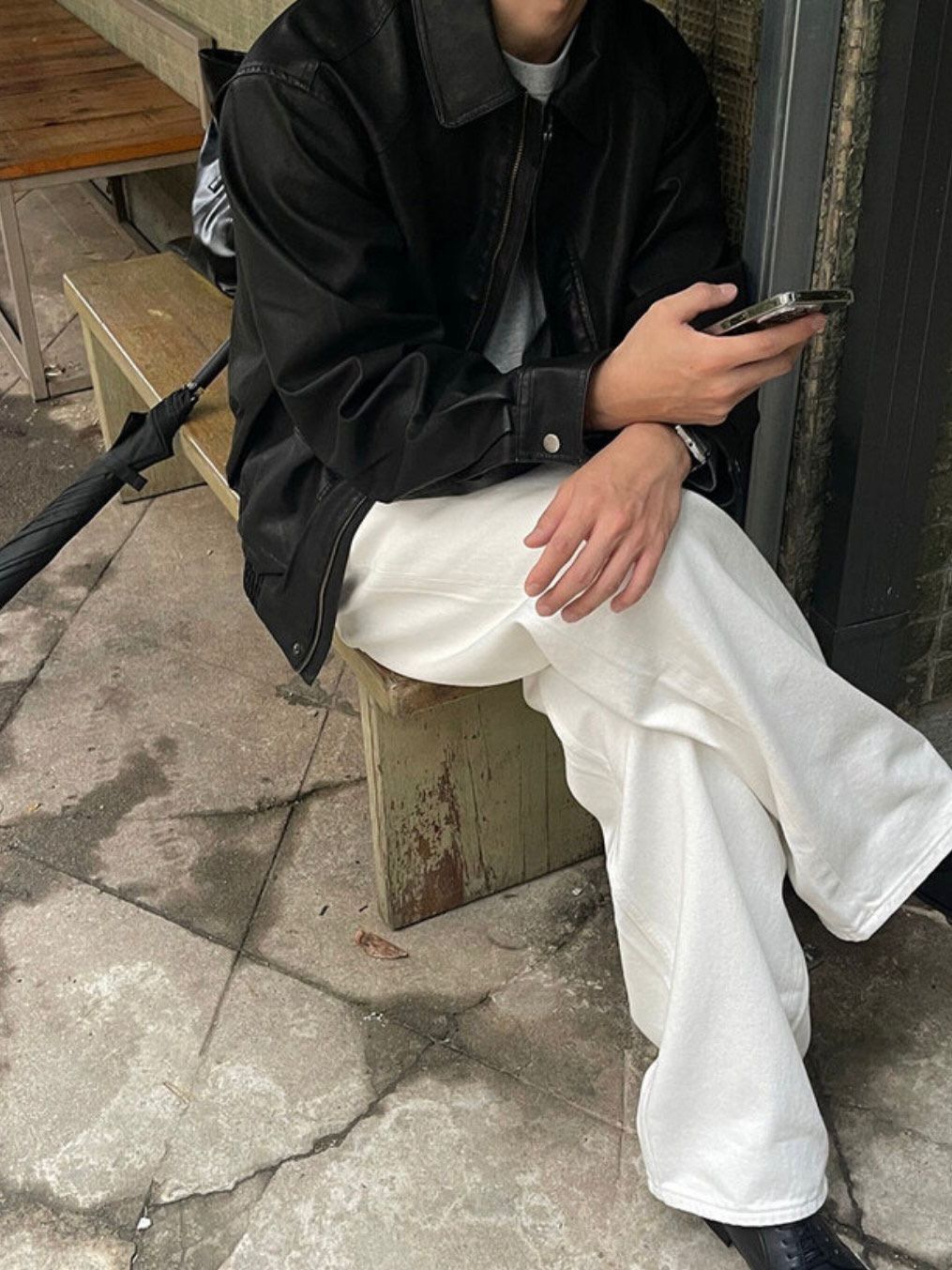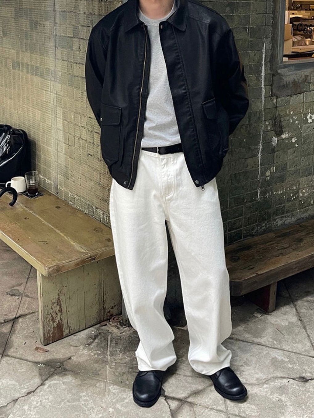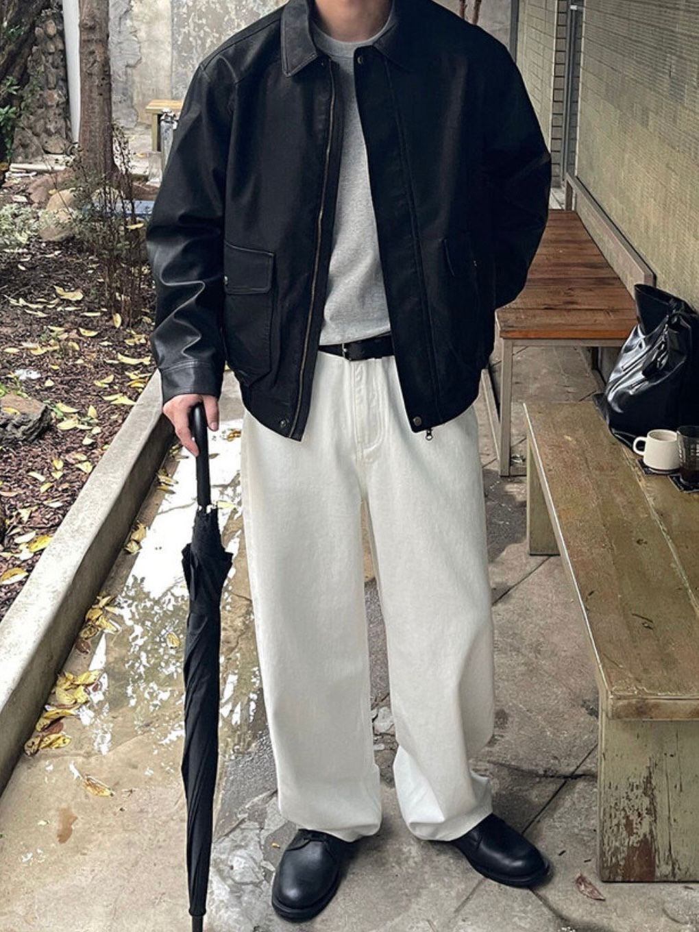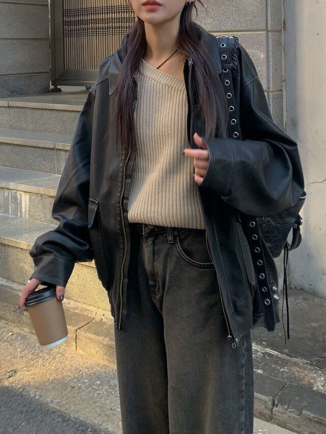 反領拉鍊合成皮褸 JK2574