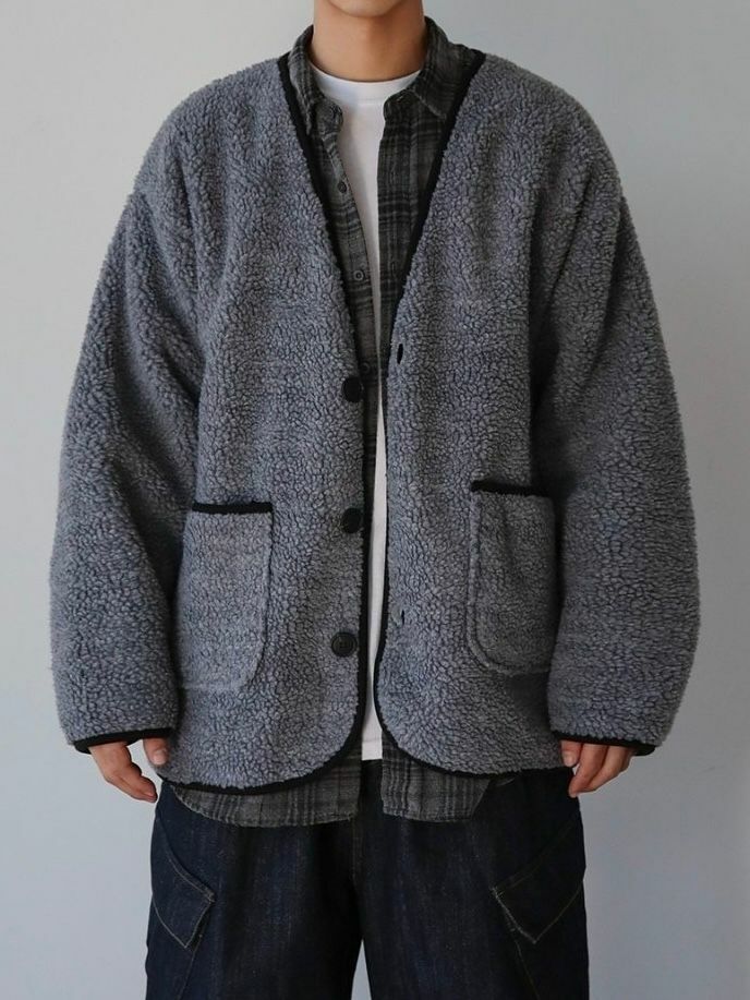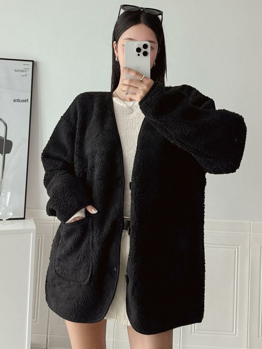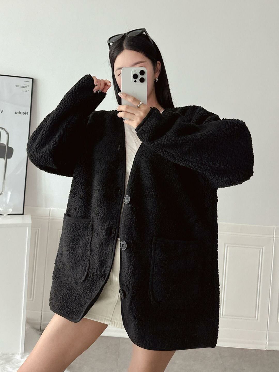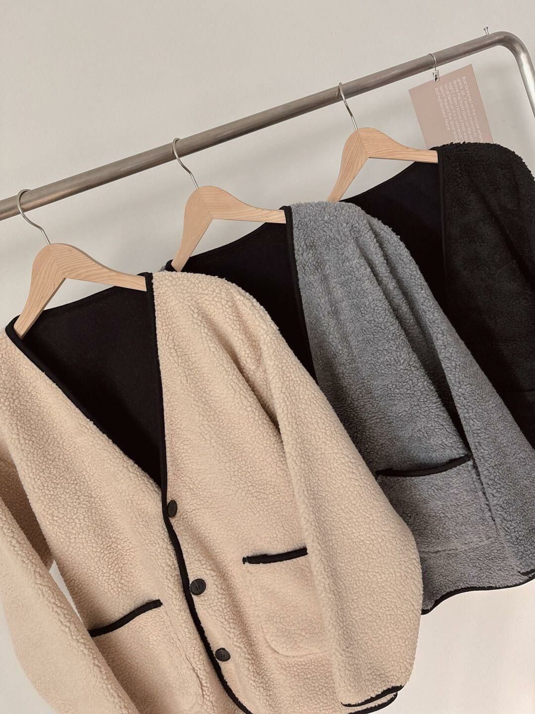 淨色開胸毛毛褸 JK2575