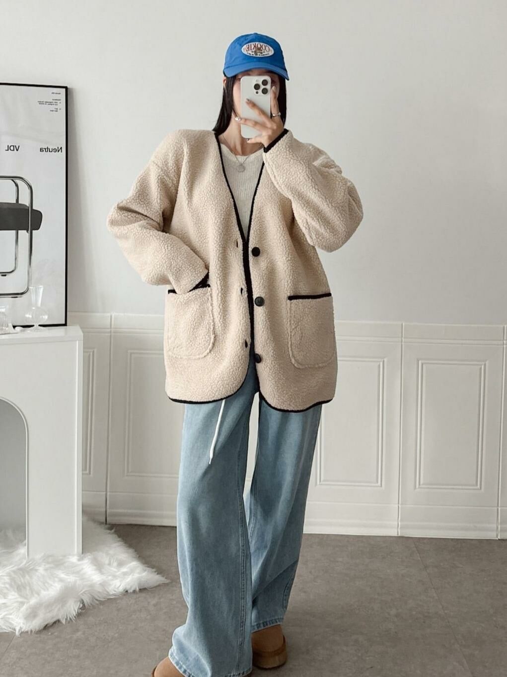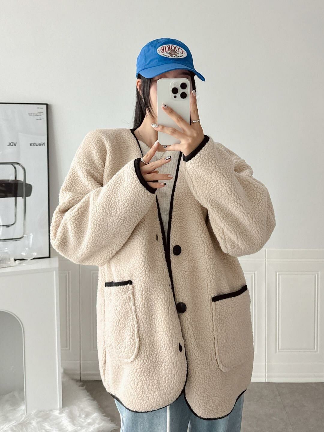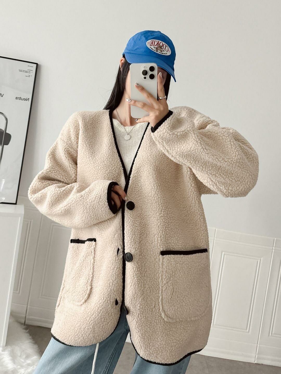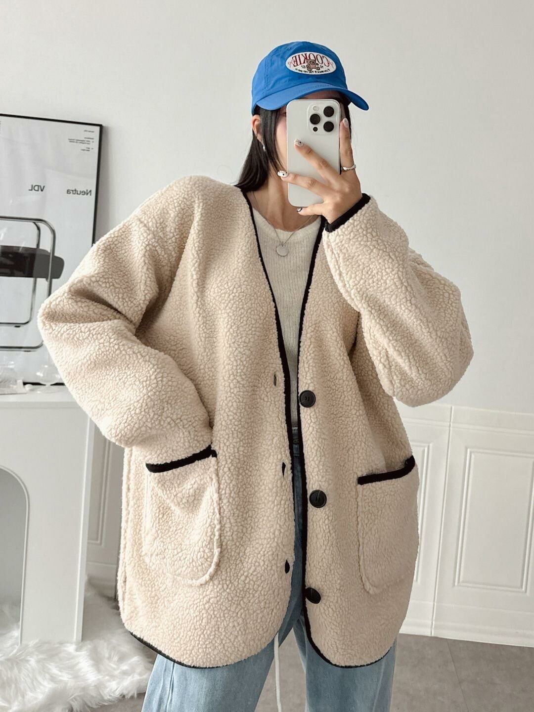 淨色開胸毛毛褸 JK2575