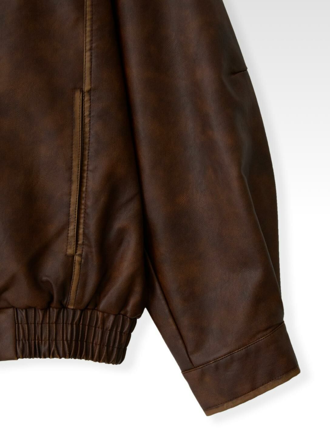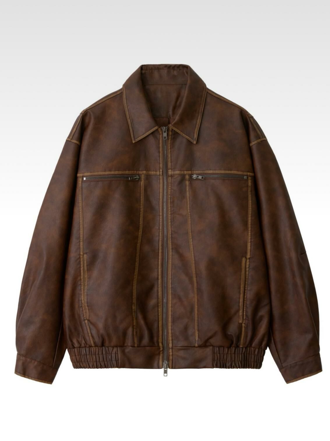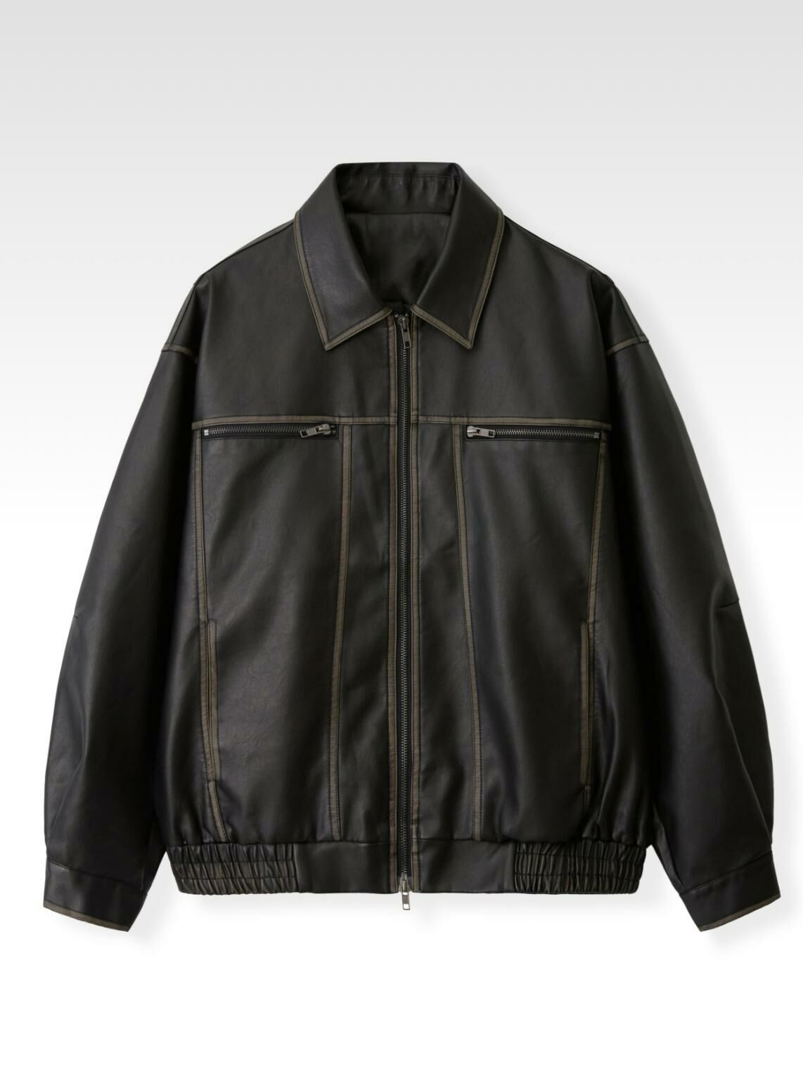 洗水反領拉鍊合成皮褸 JK2584