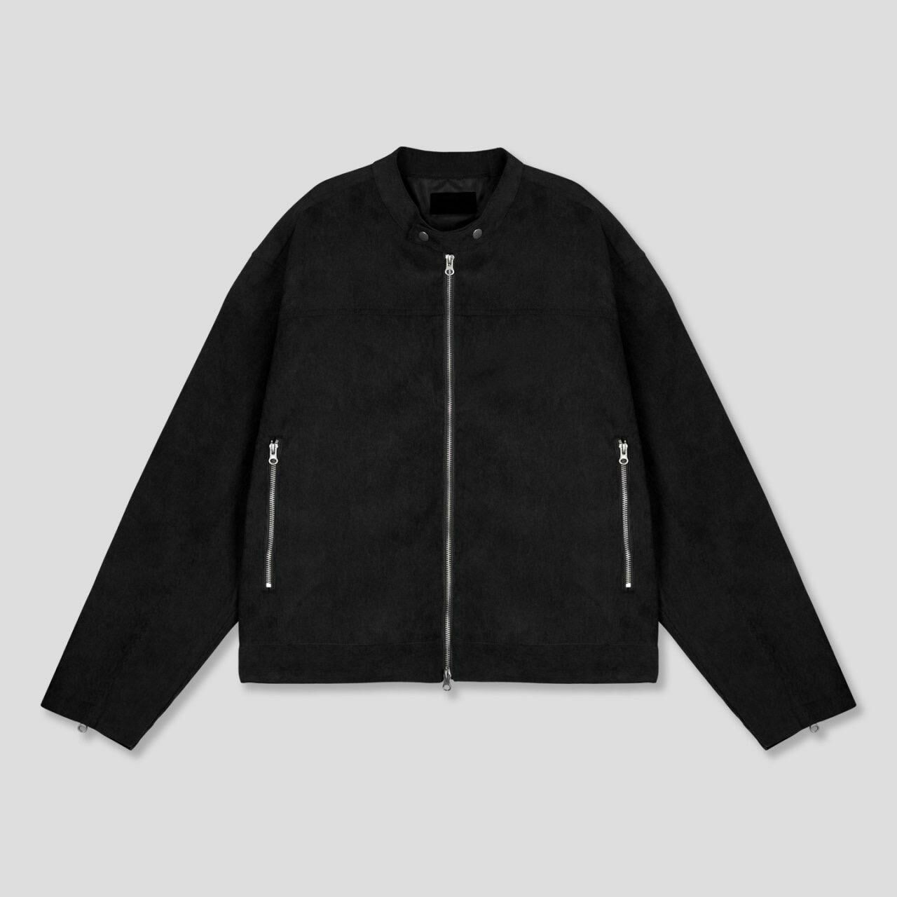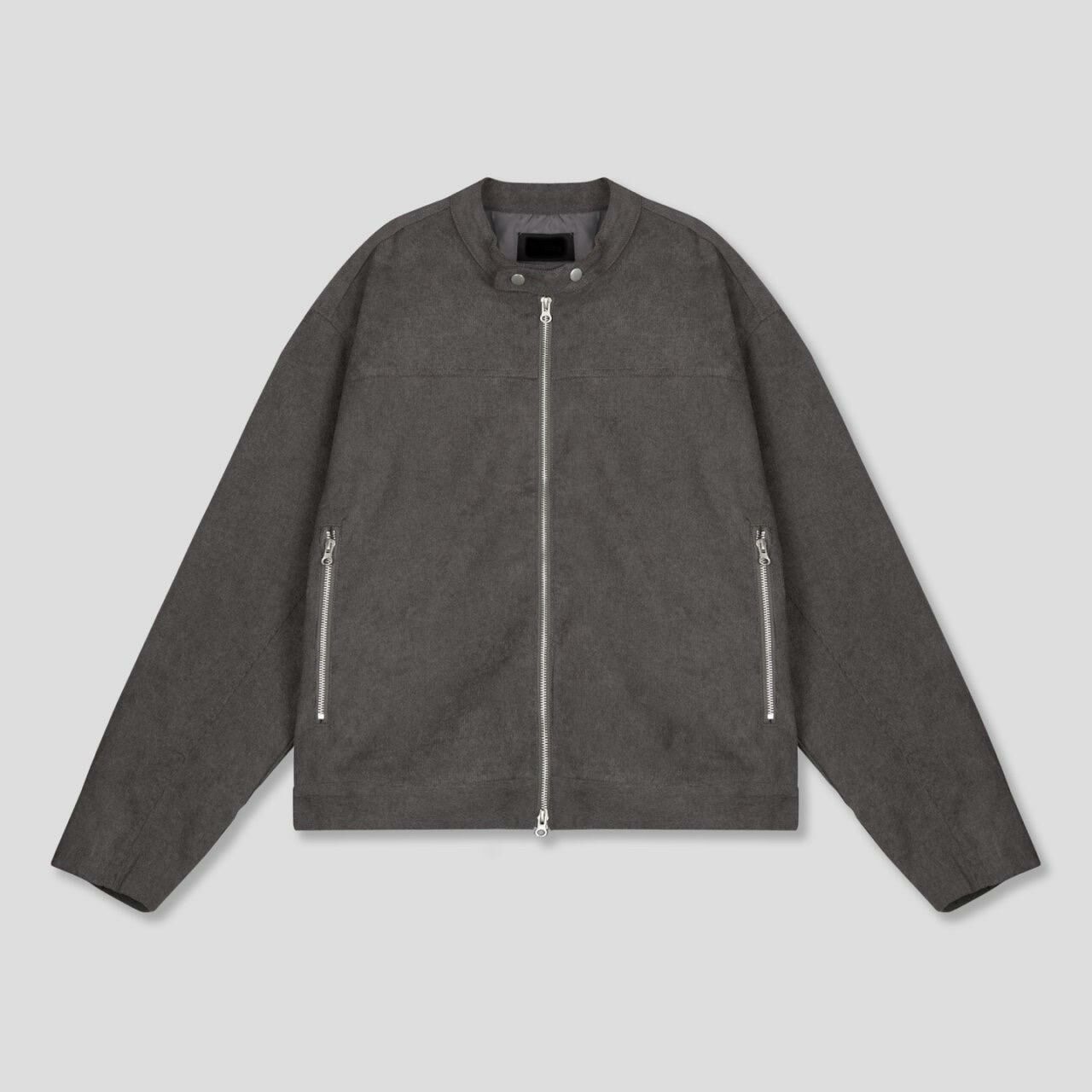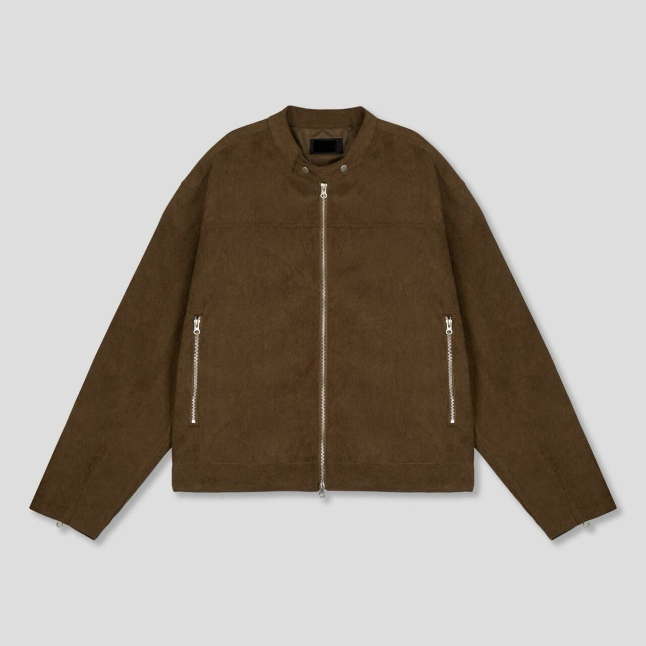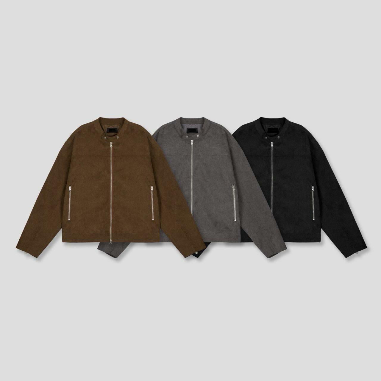 淨色企領拉鍊猄面褸 JK2593