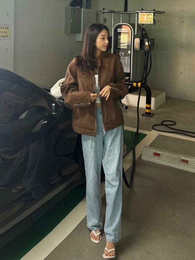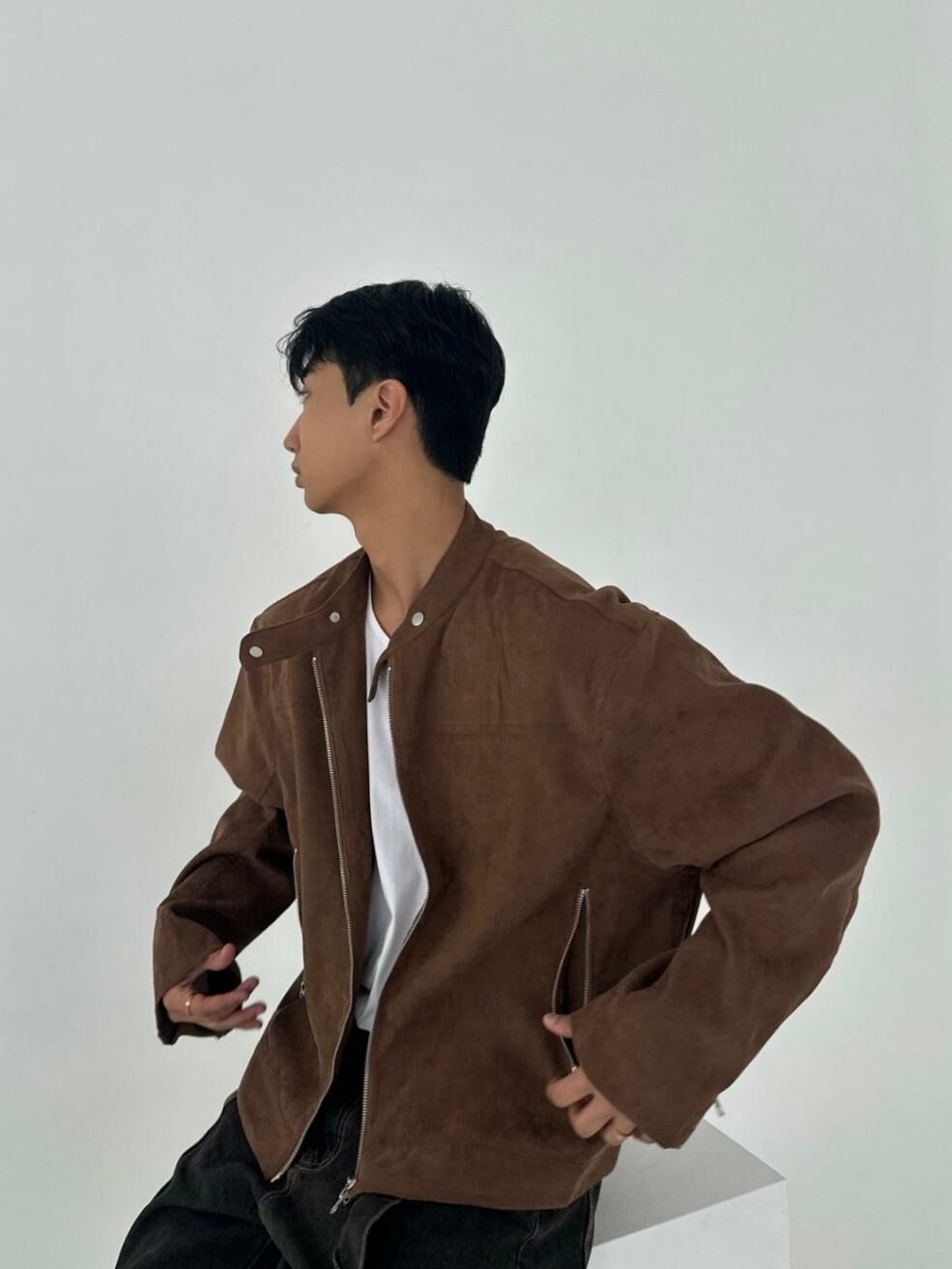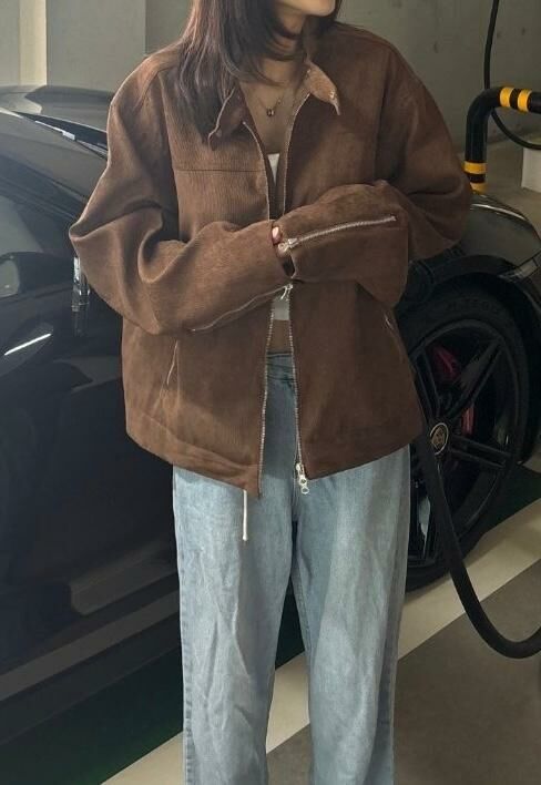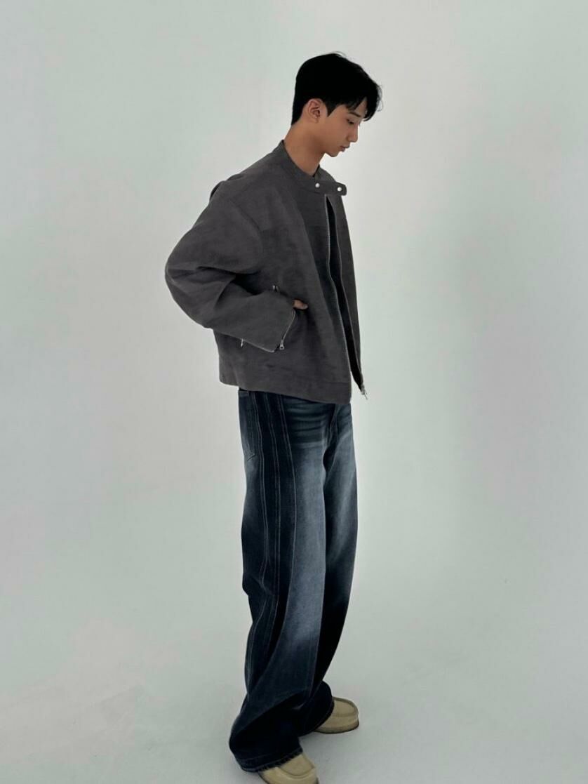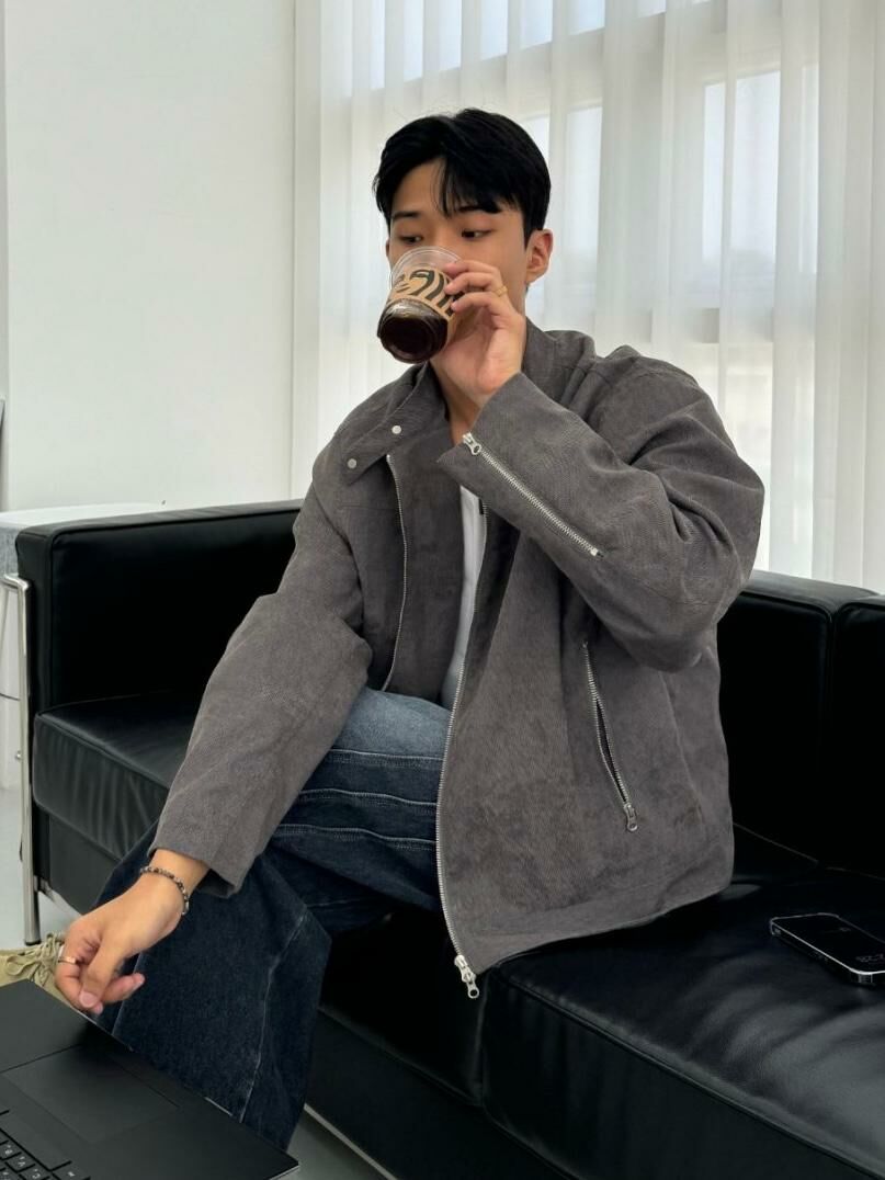 淨色企領拉鍊猄面褸 JK2593