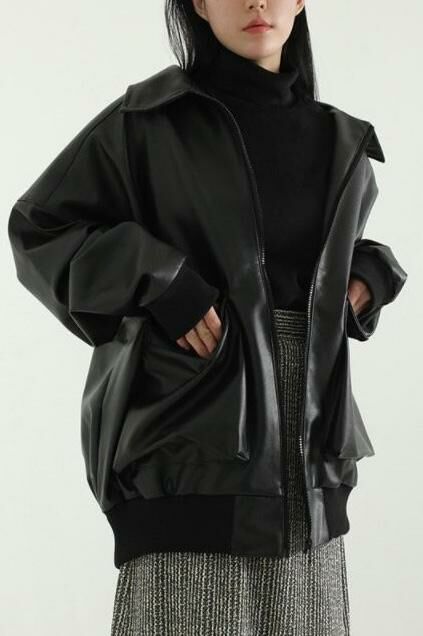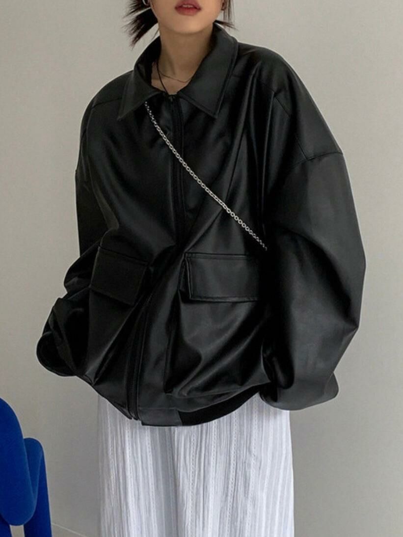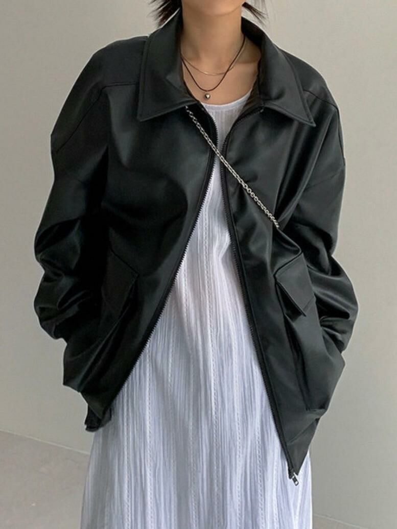 反領拉鍊合成皮褸 JK2604
