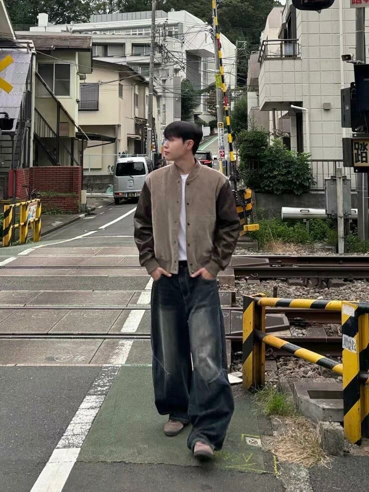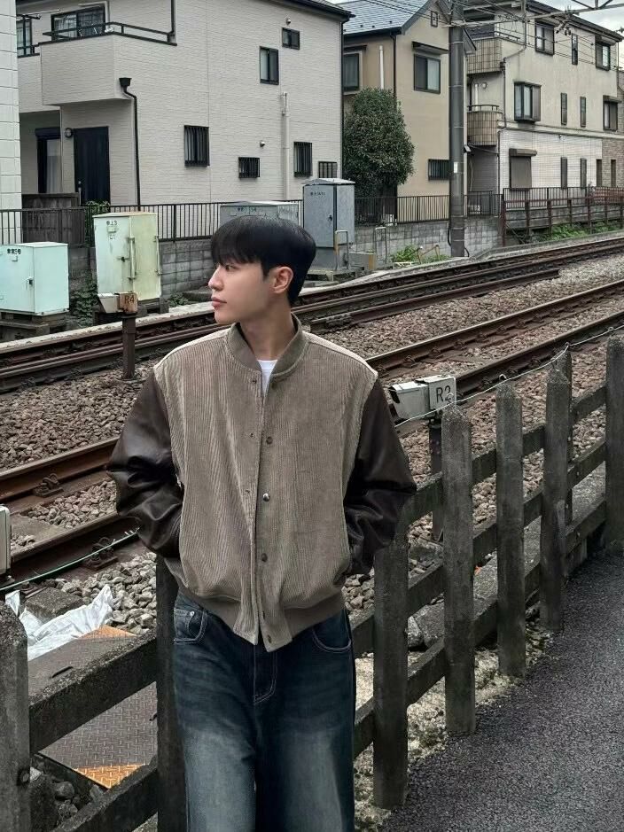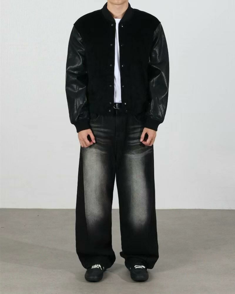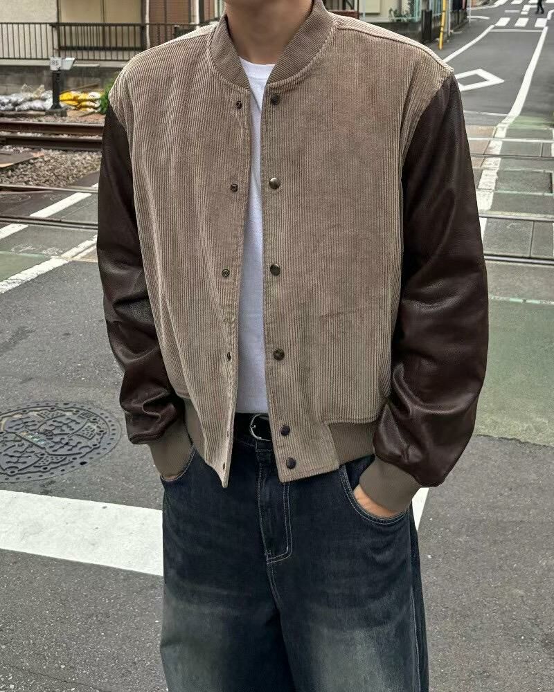 拼皮袖棒球褸(薄夾棉) JK2619