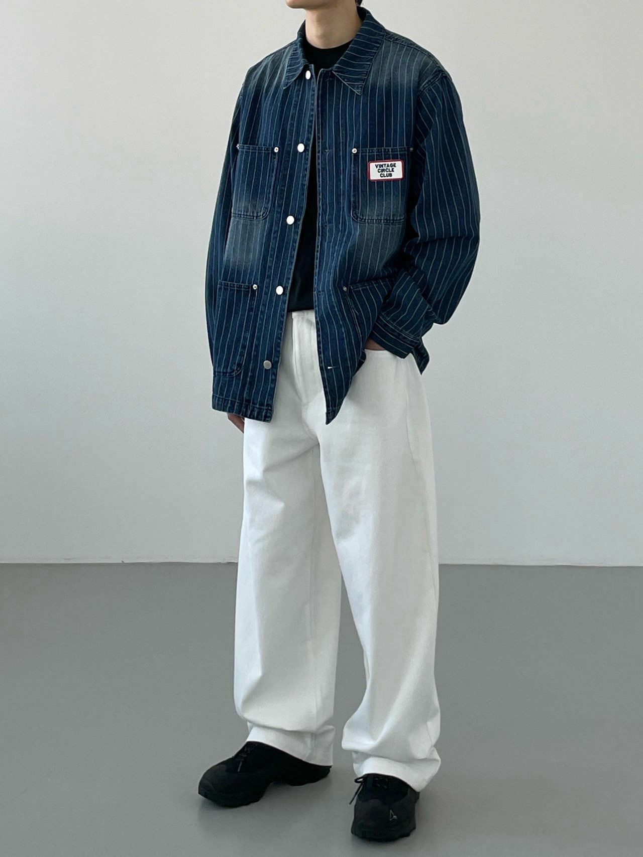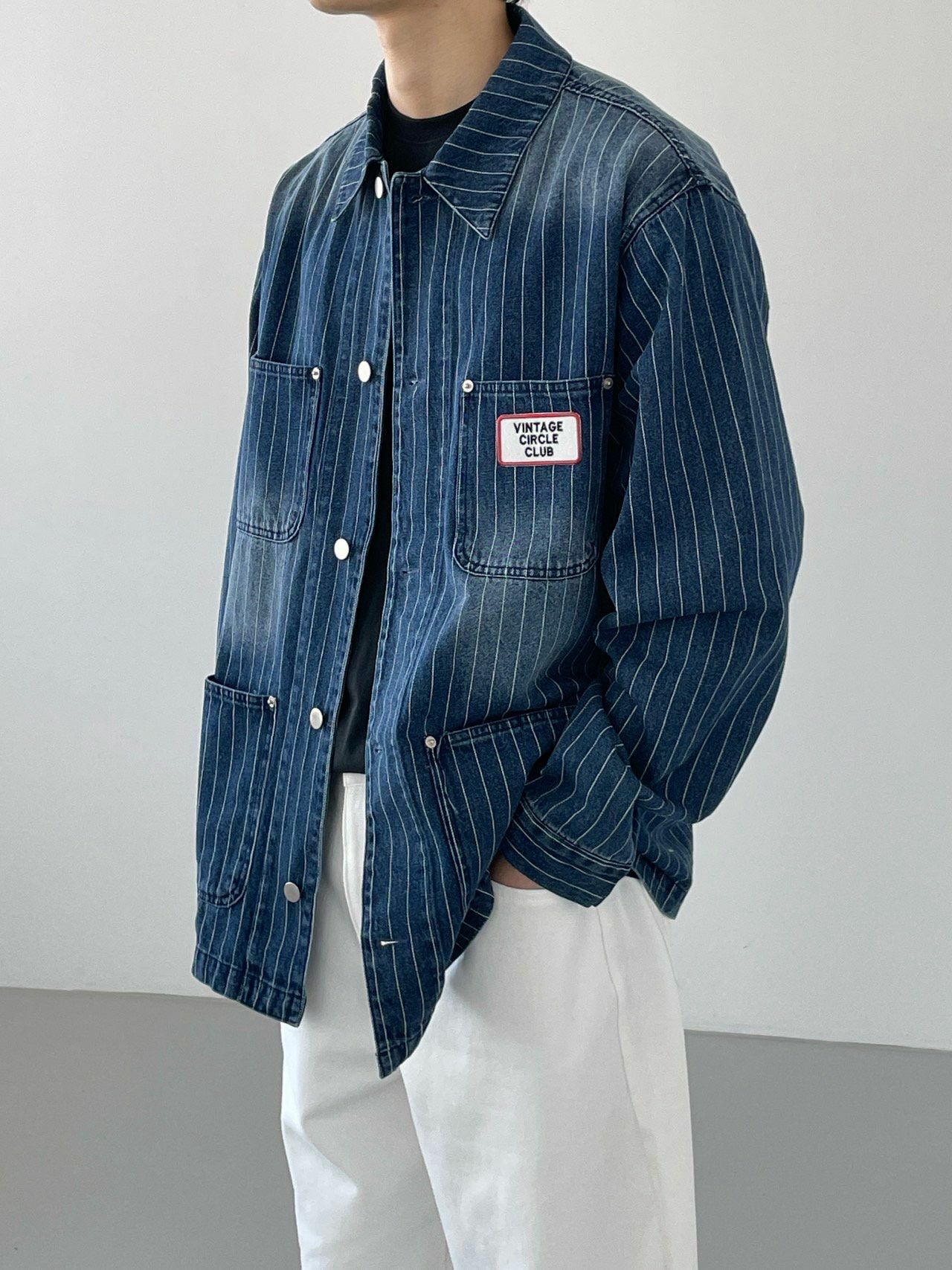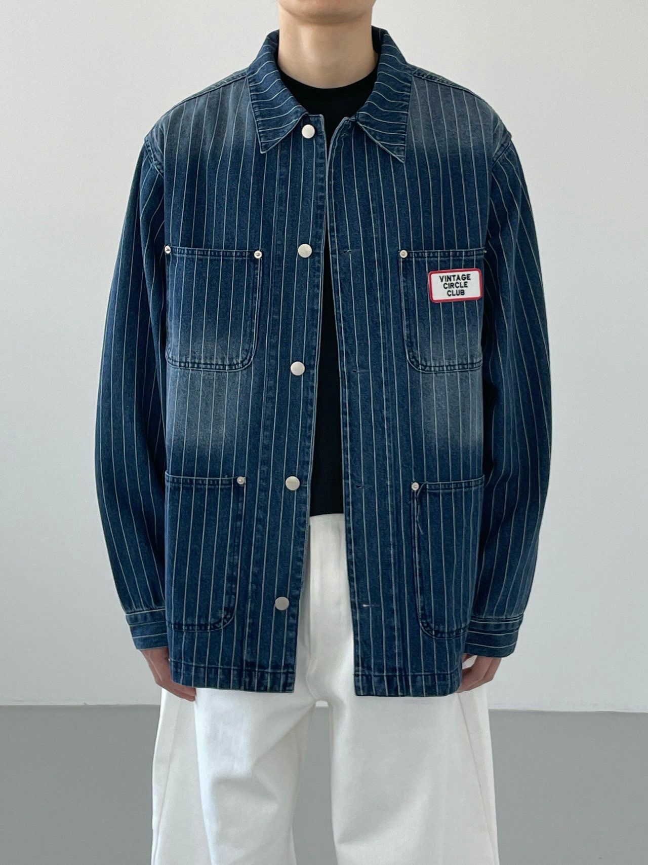 洗水直間襟章牛仔褸 JK2622