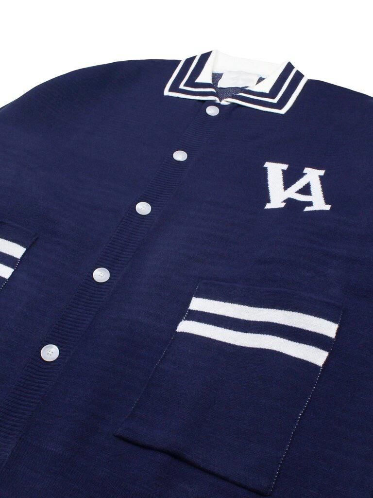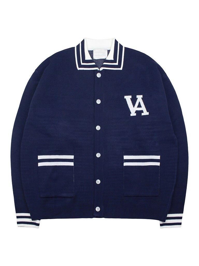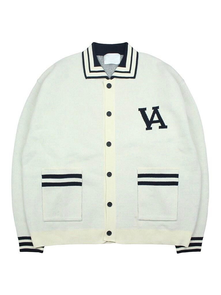 反領英文字開胸針織外套 JK2634