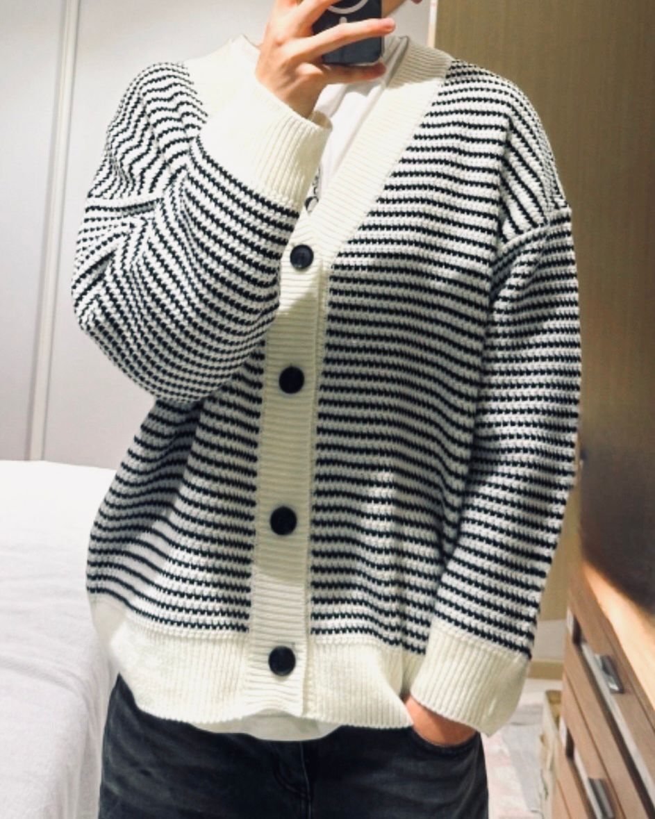 橫間開胸針織外套 JK2636