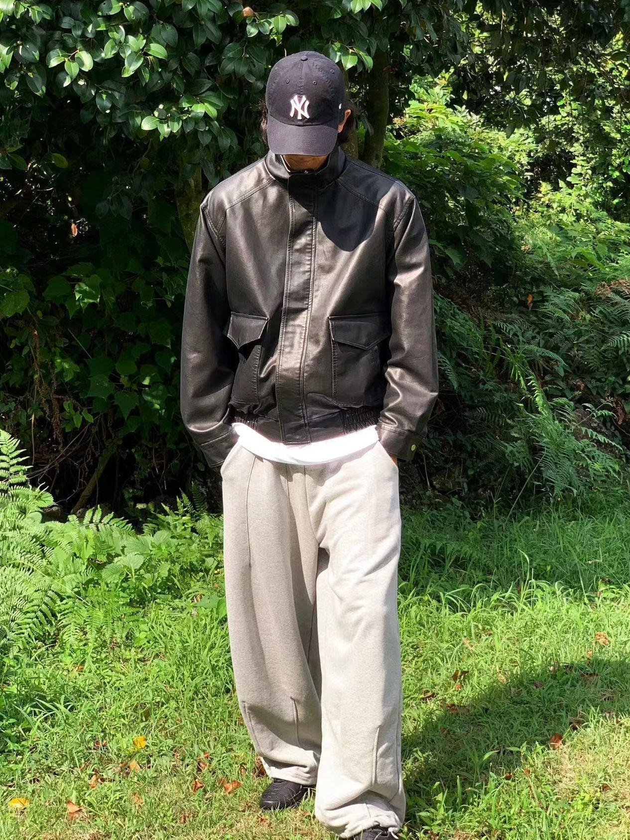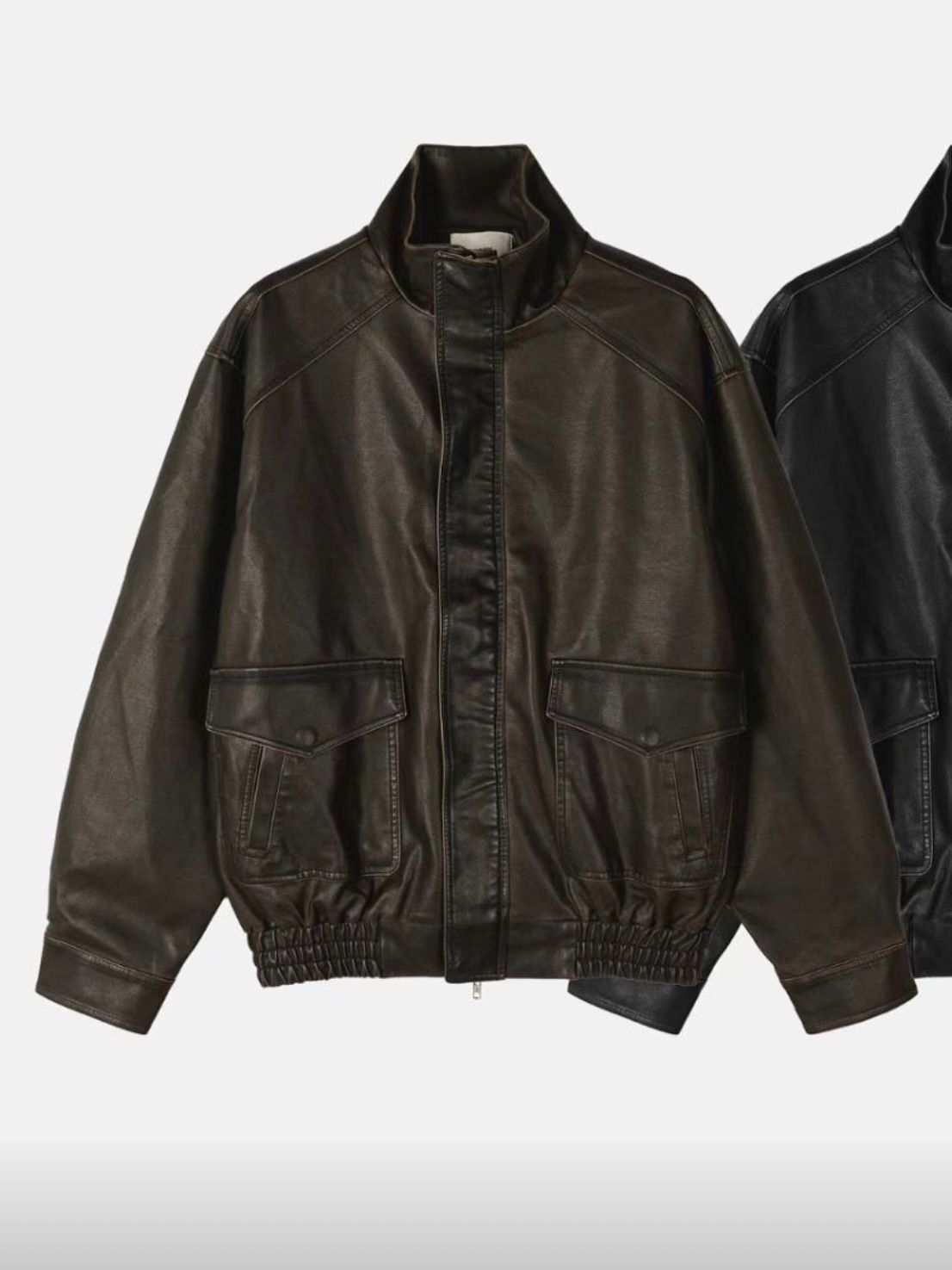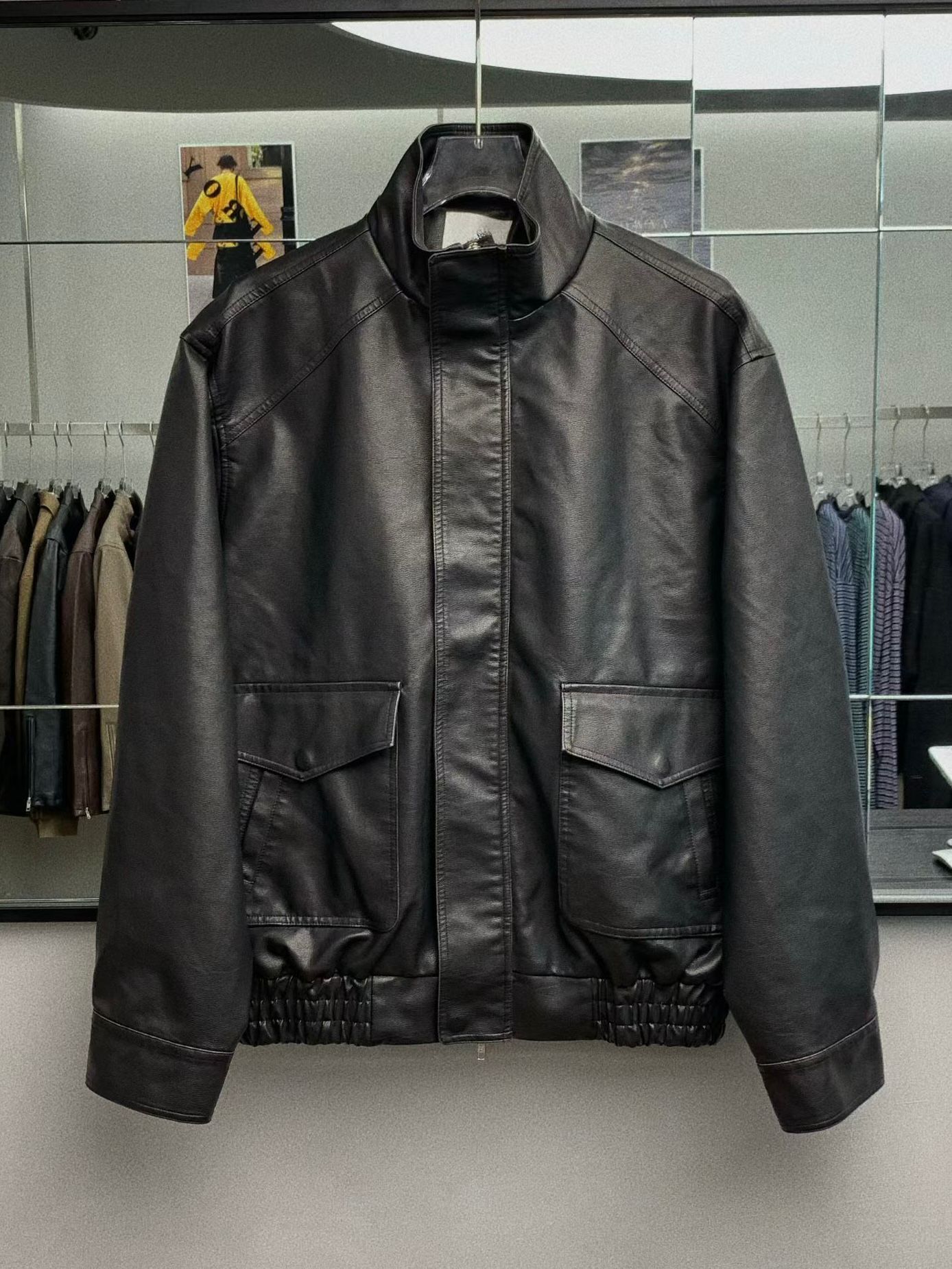 企領拉鍊合成皮褸 JK2645
