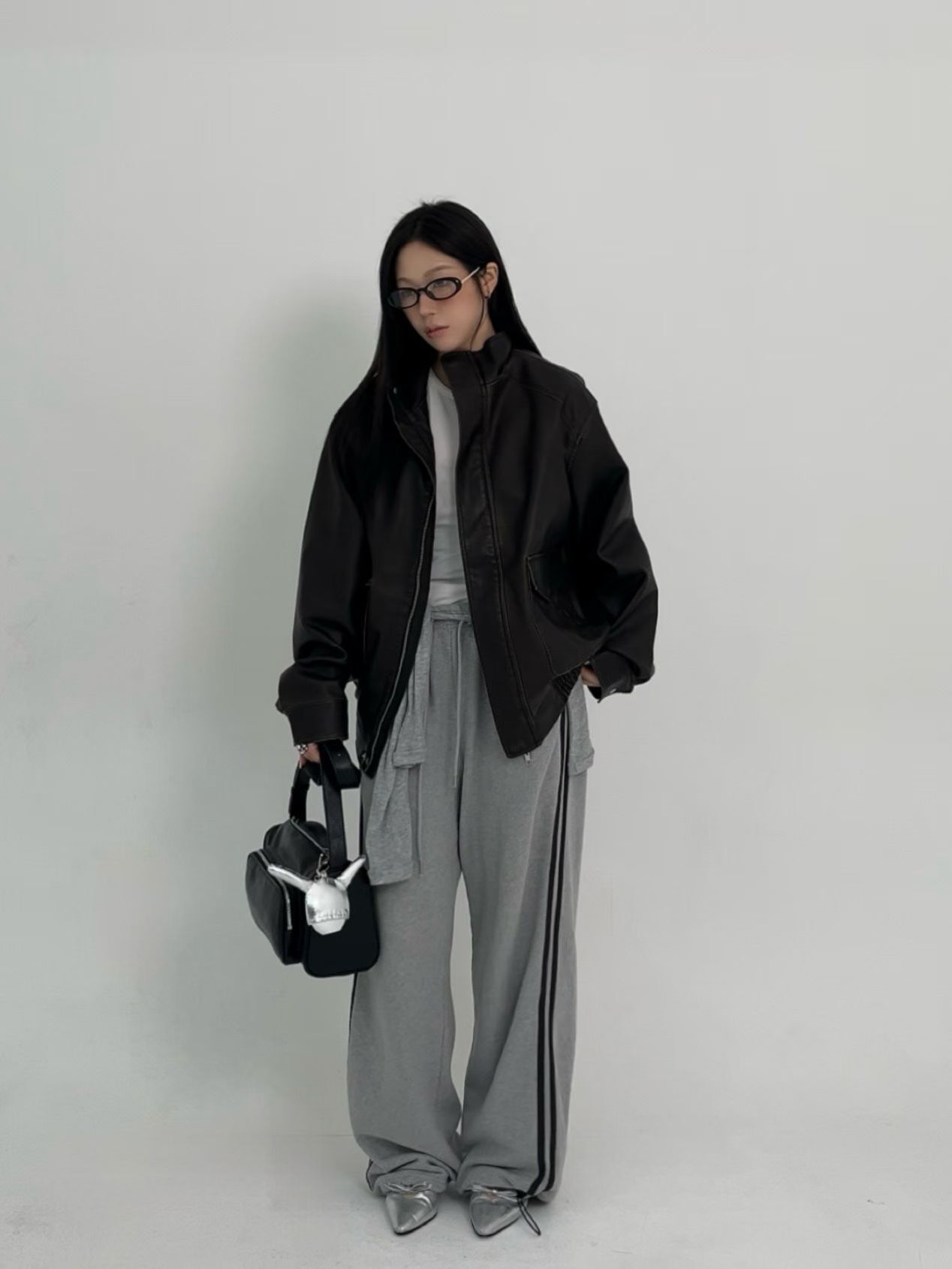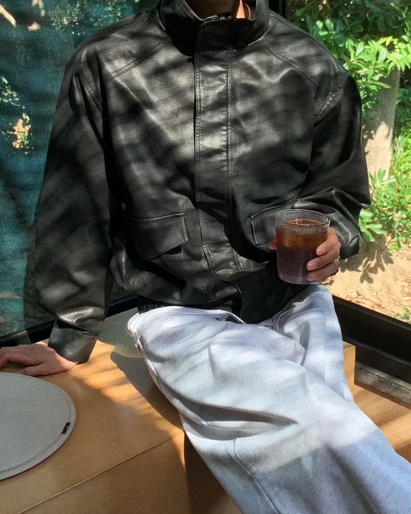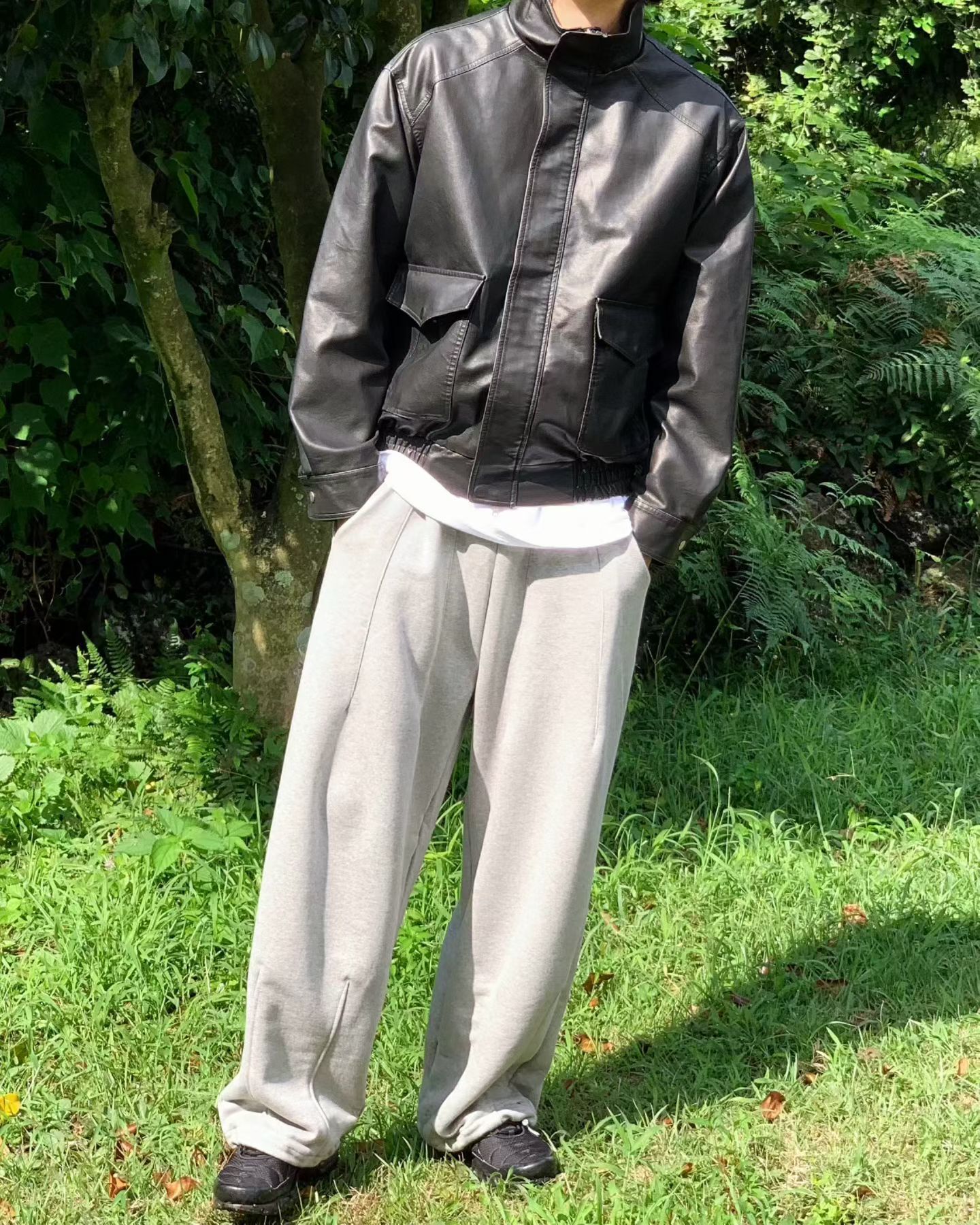 企領拉鍊合成皮褸 JK2645
