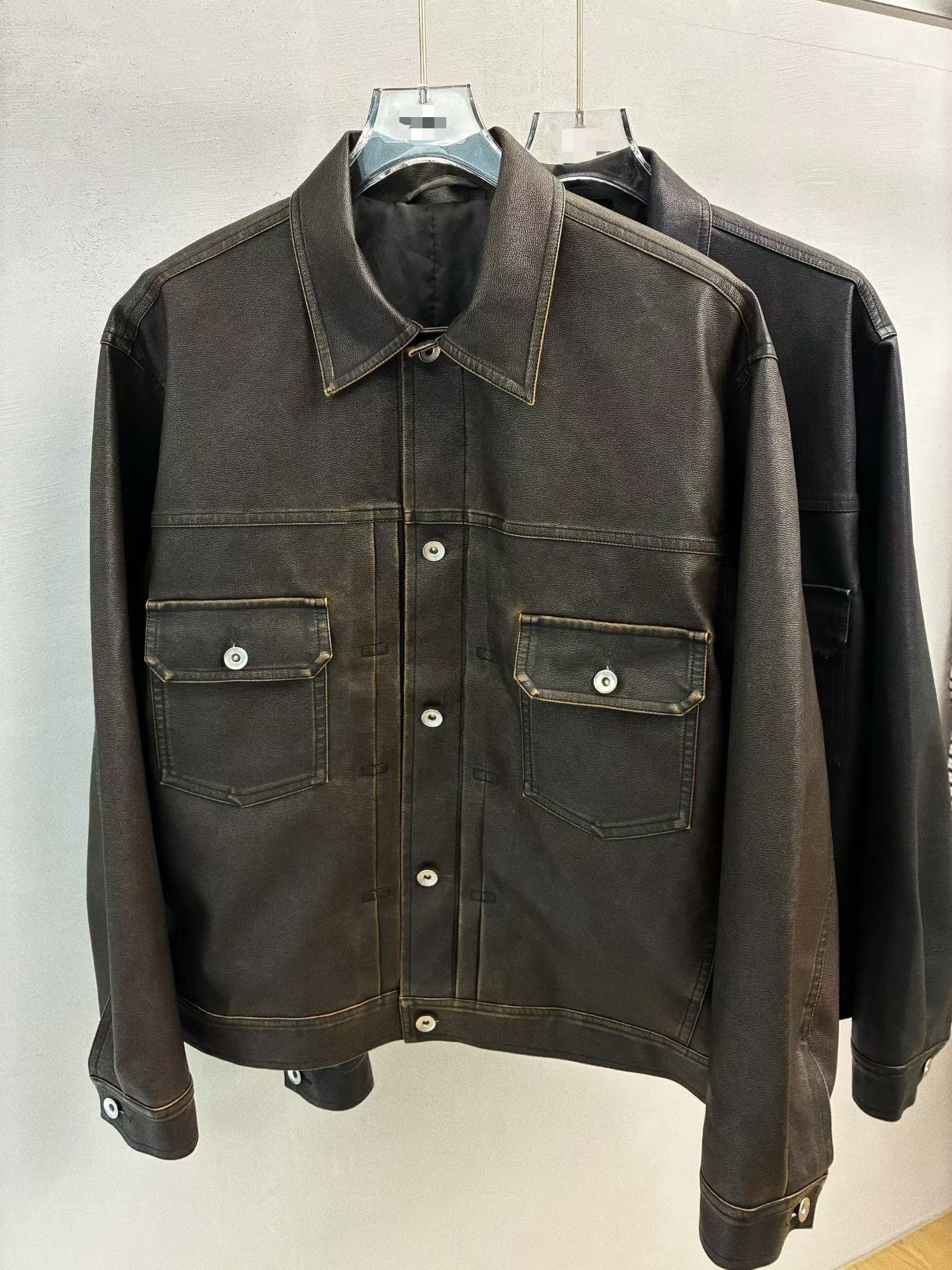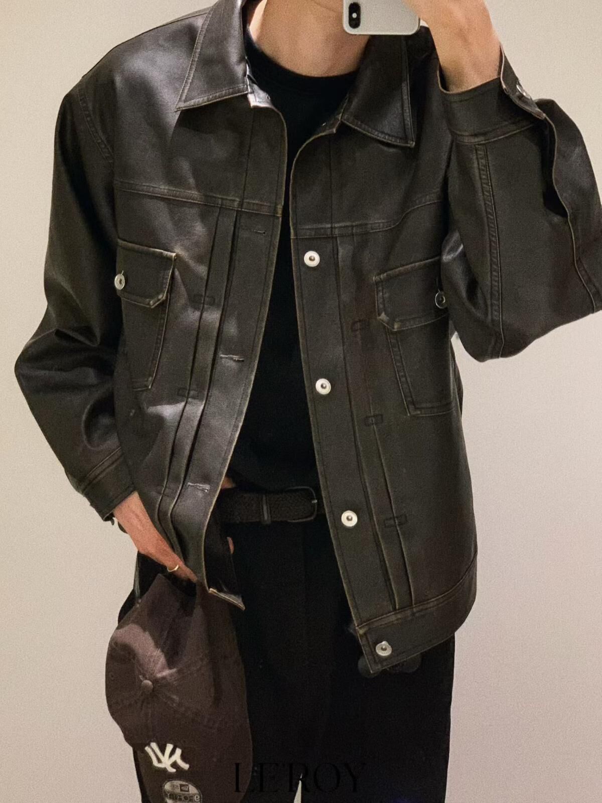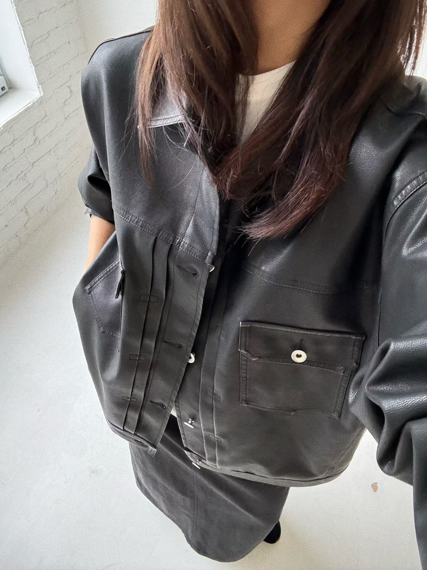 反領開胸合成皮褸 JK2657