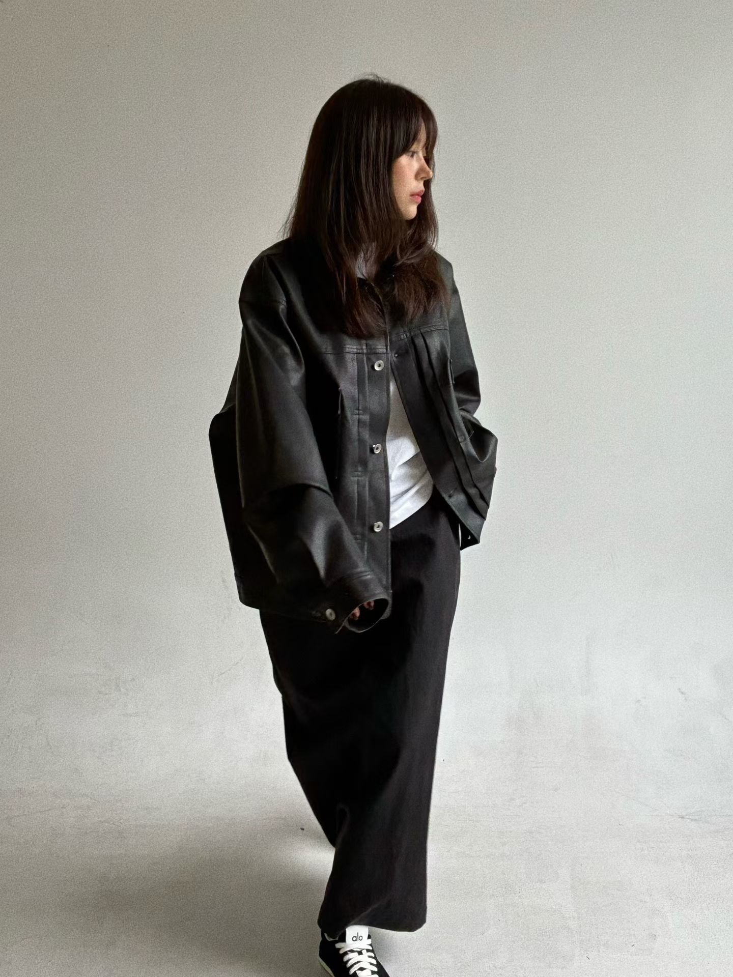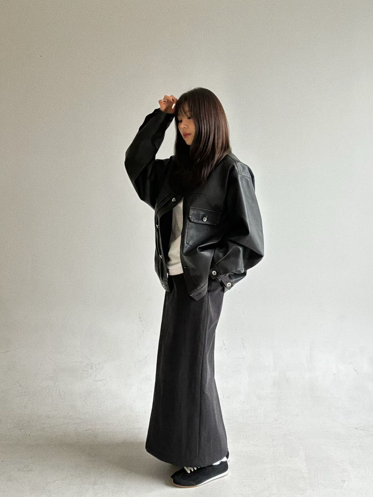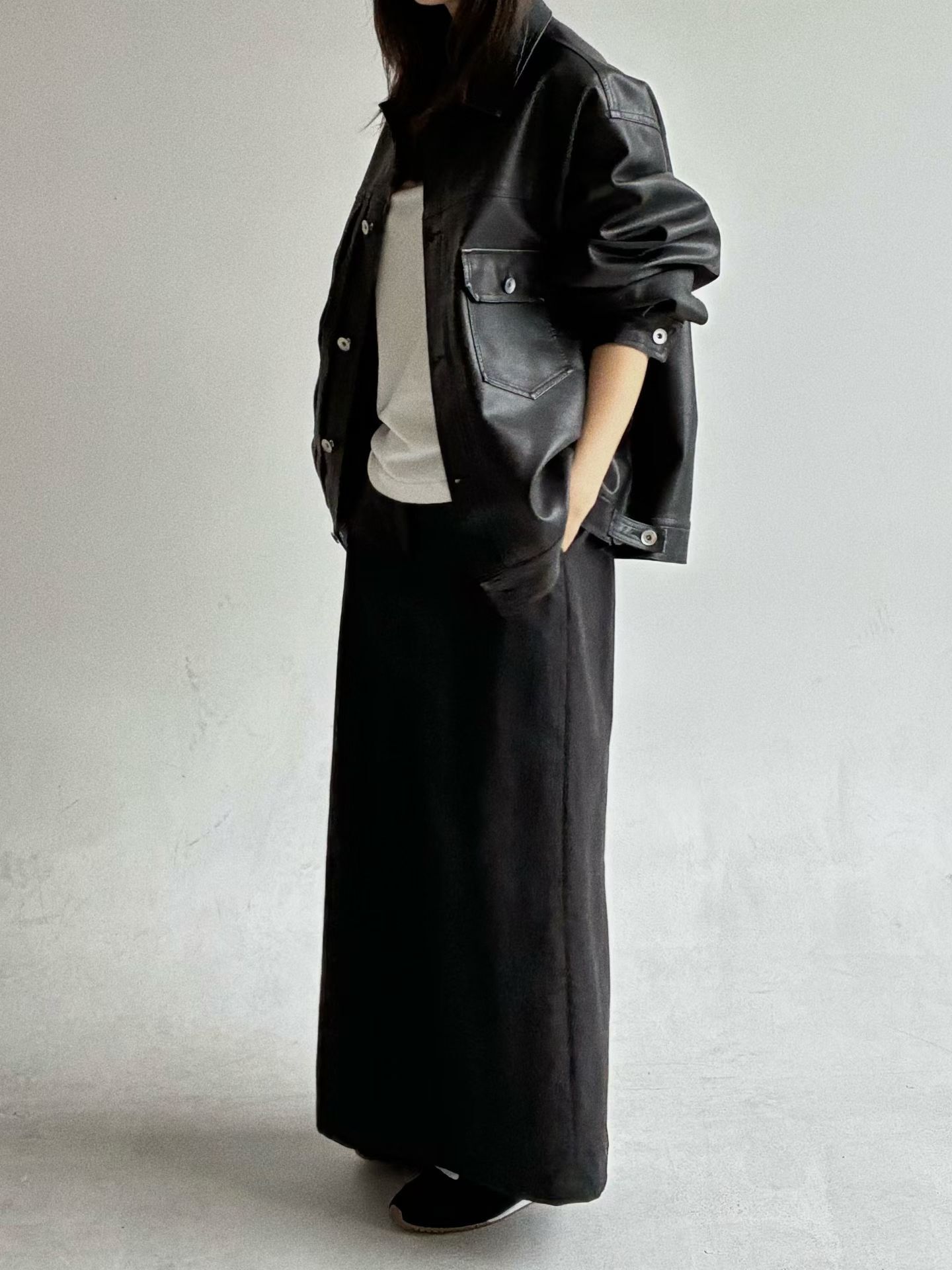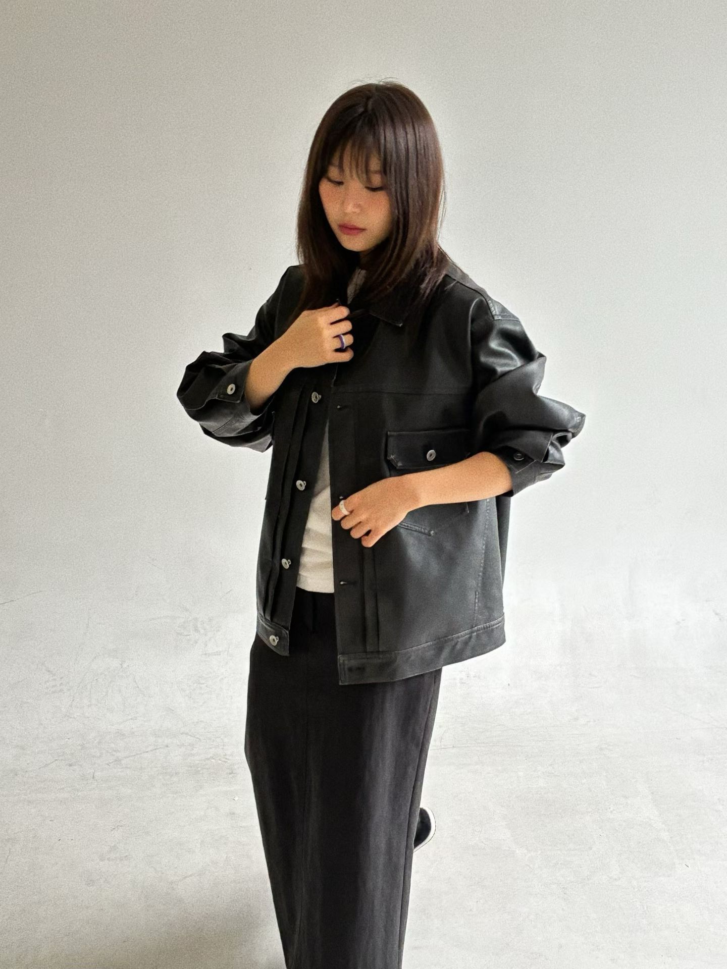 反領開胸合成皮褸 JK2657