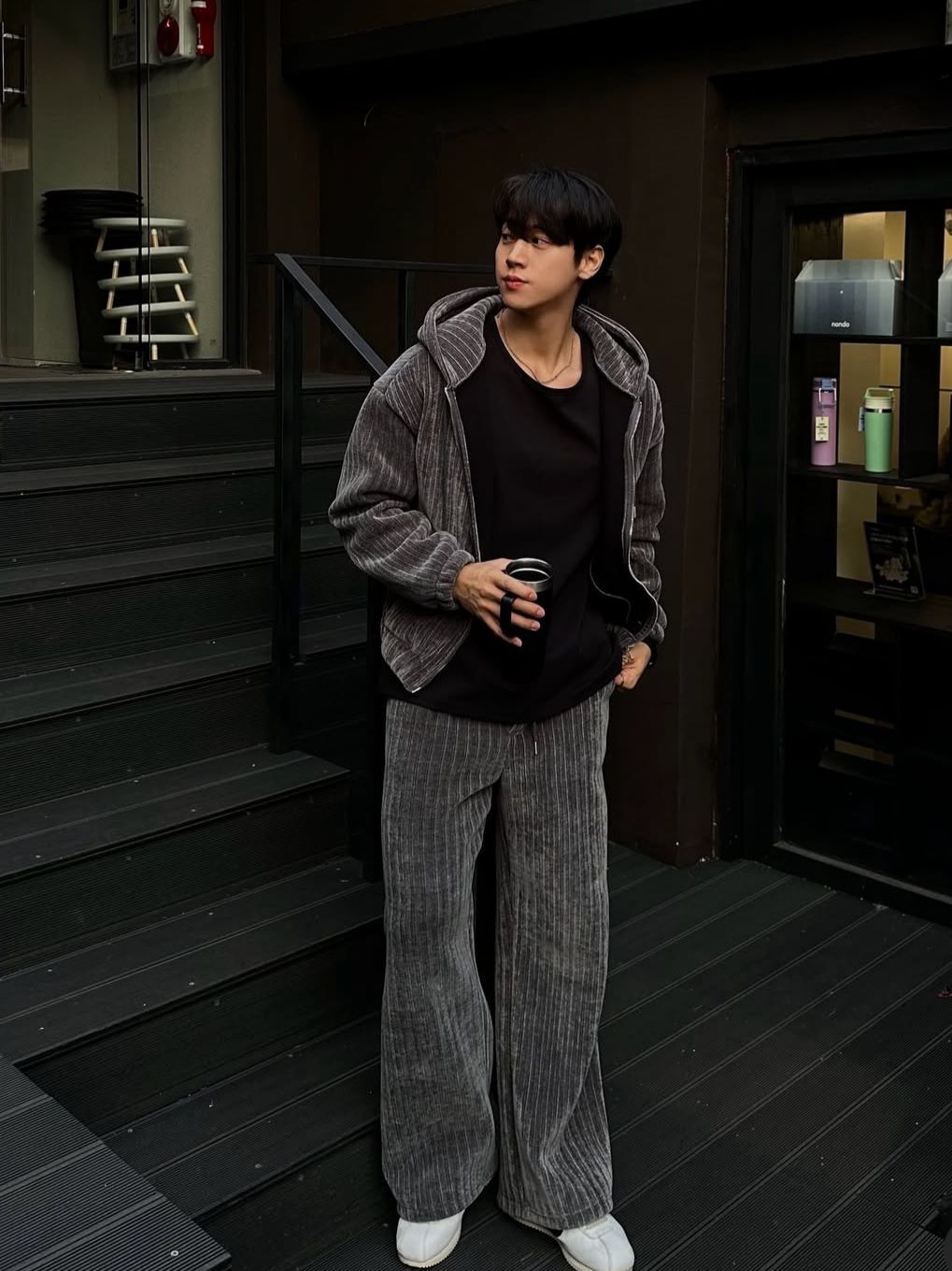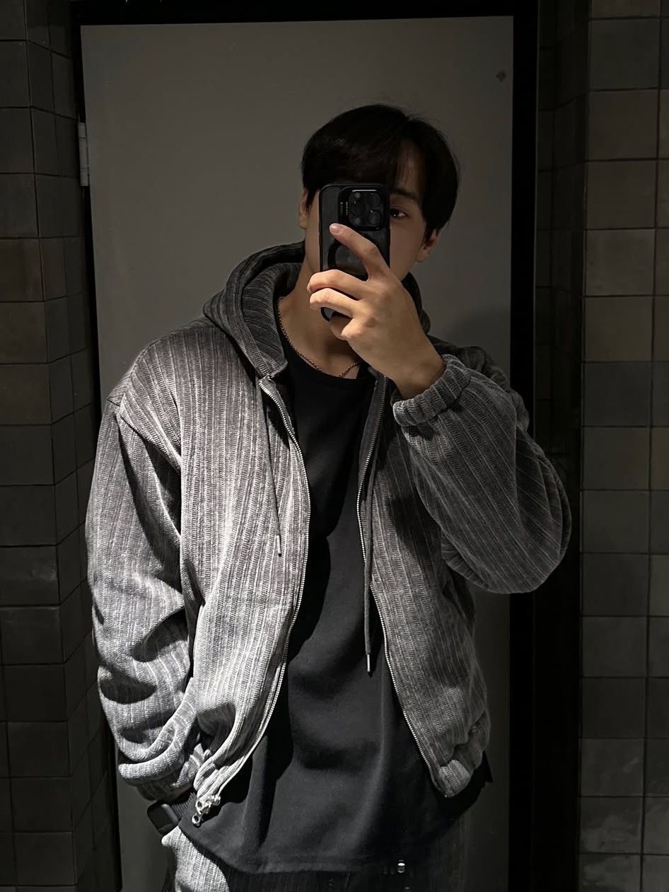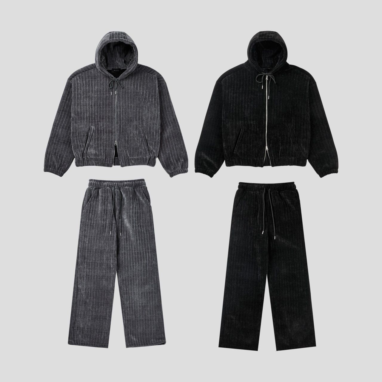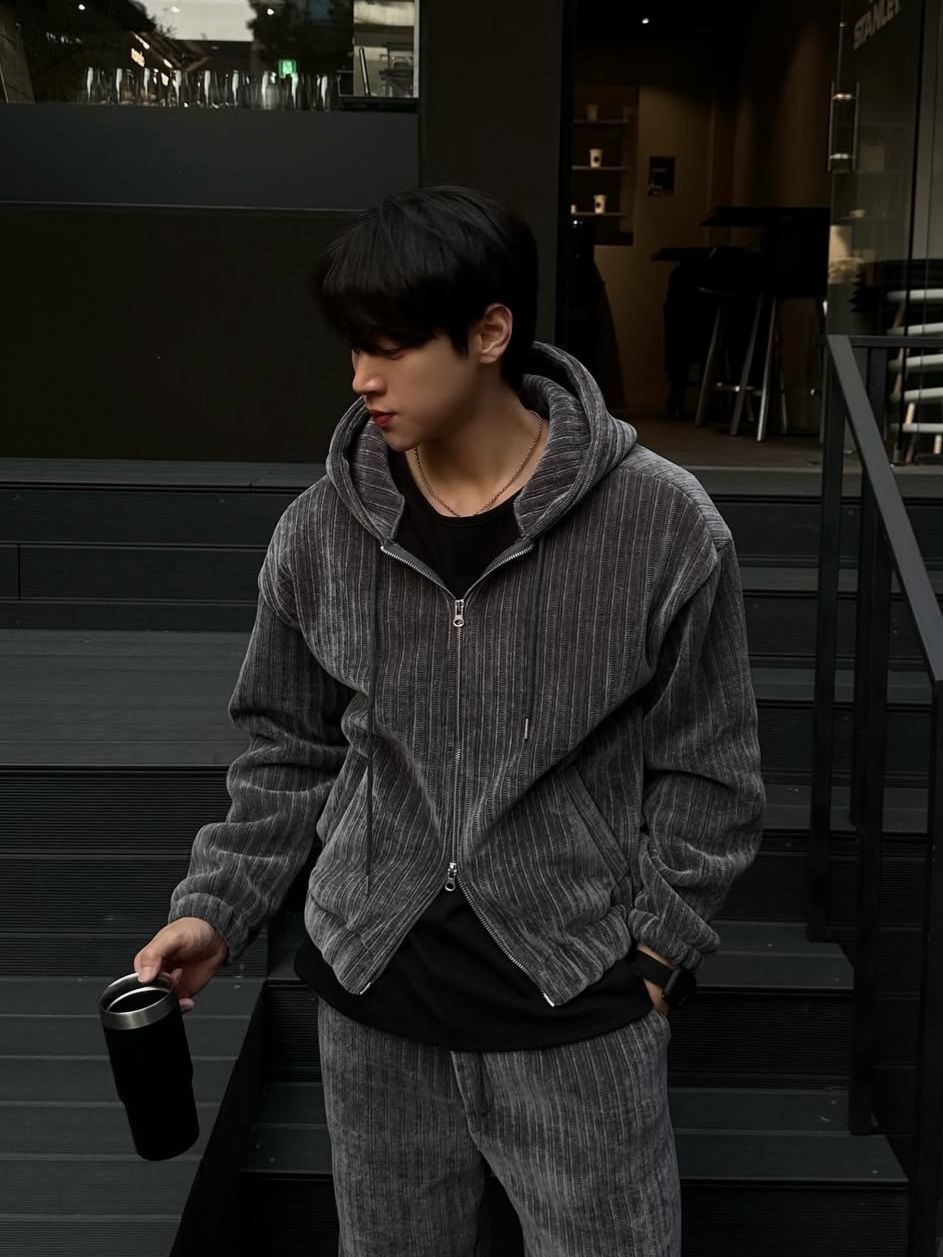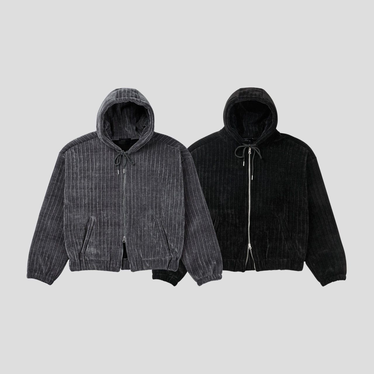 暗直紋連帽拉鍊外套(抓毛底) JK2766