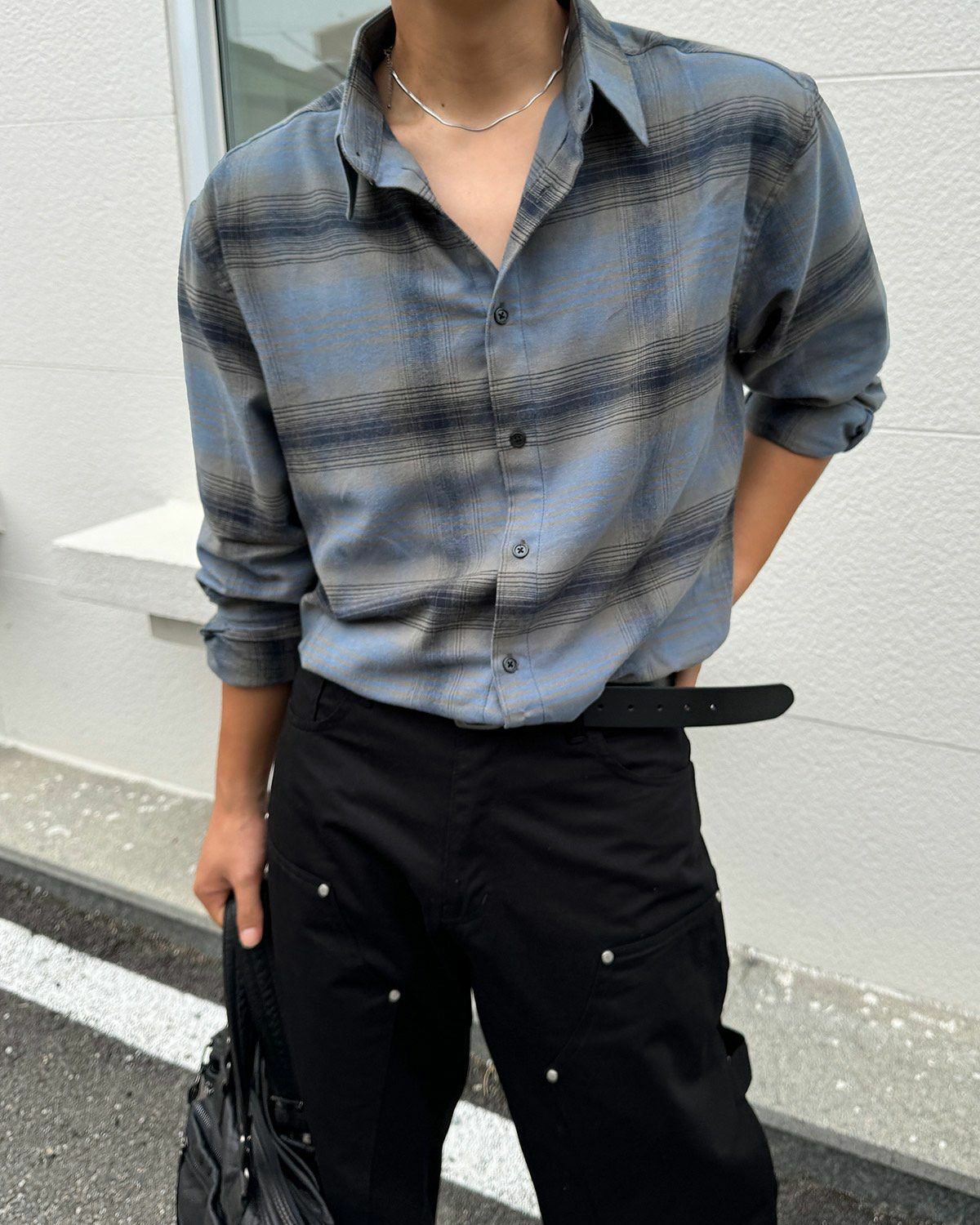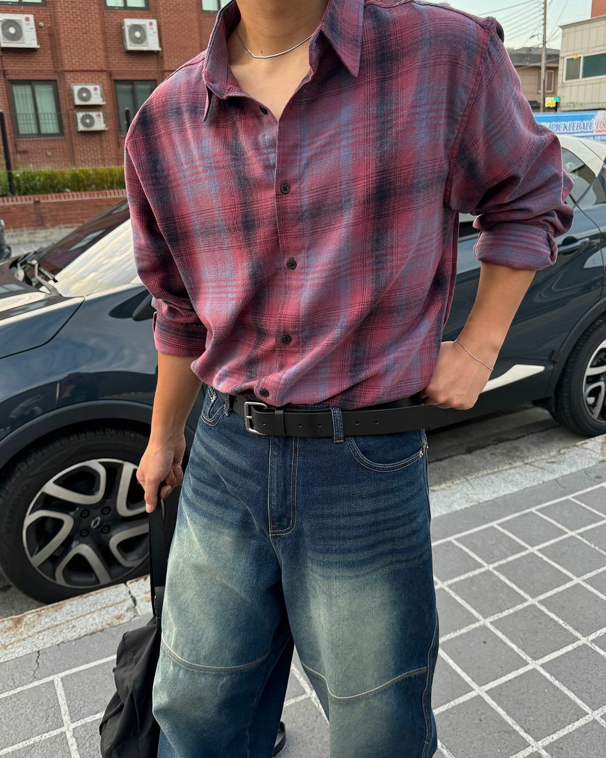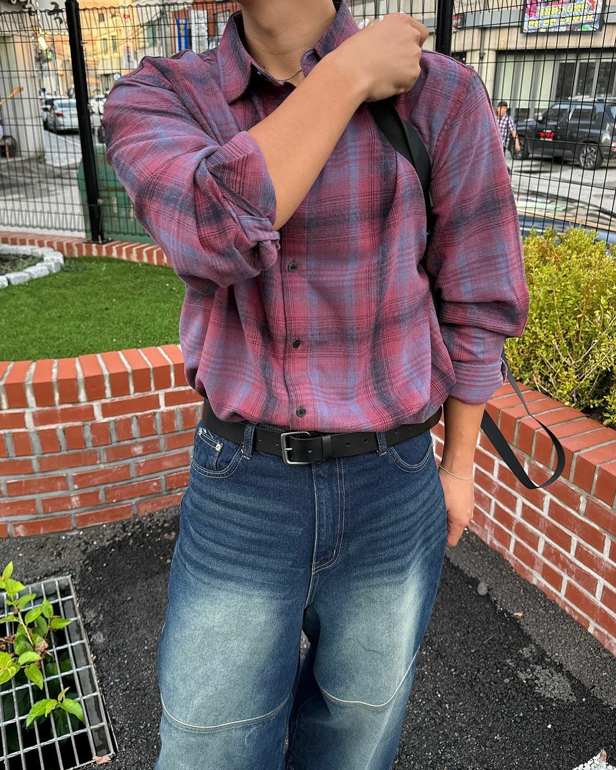 格紋長袖恤衫 kds-002S