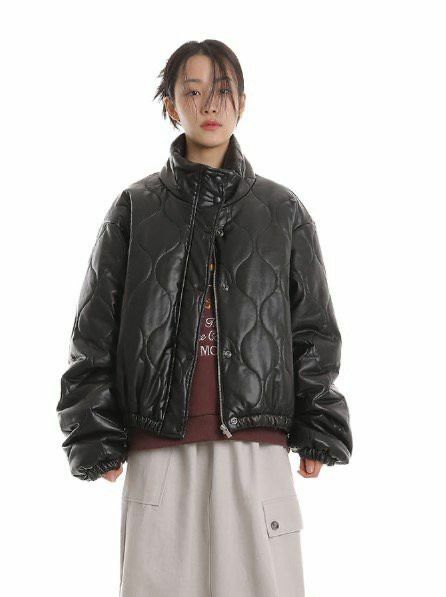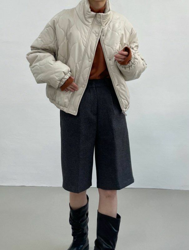 高領暗紋拉鍊外套(夾棉) kds-019JK