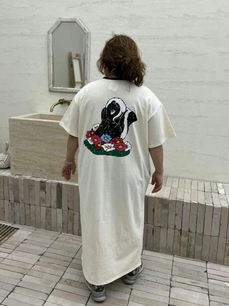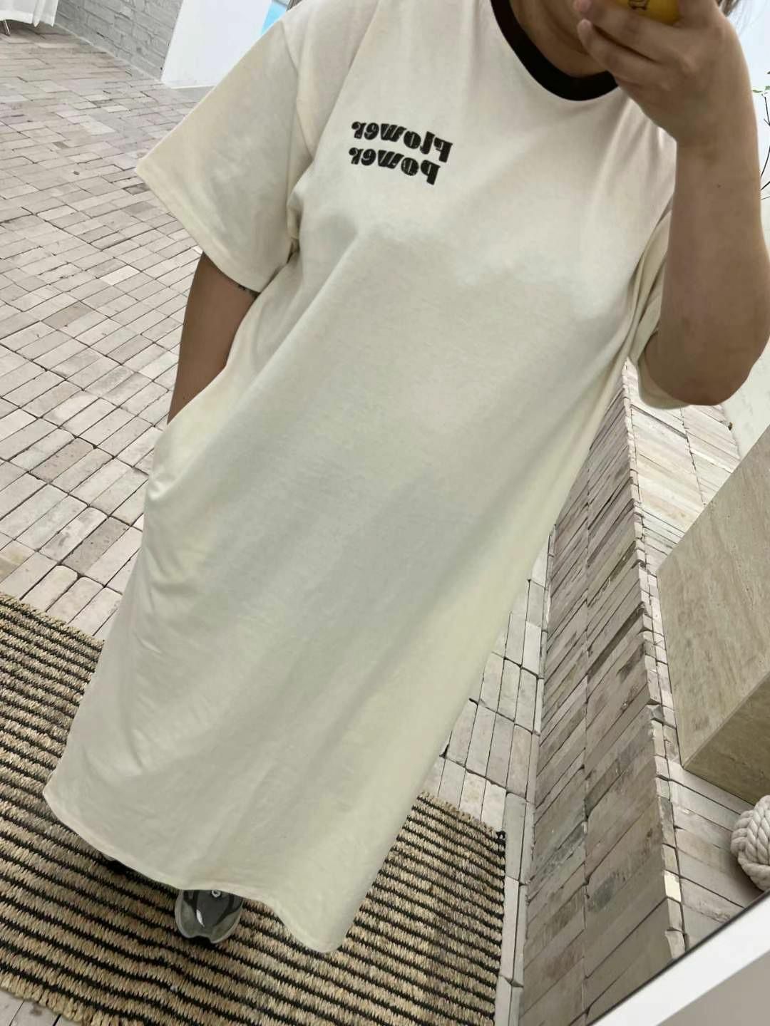 英文字圖案短袖長裙(女裝) KKUKKU-015T