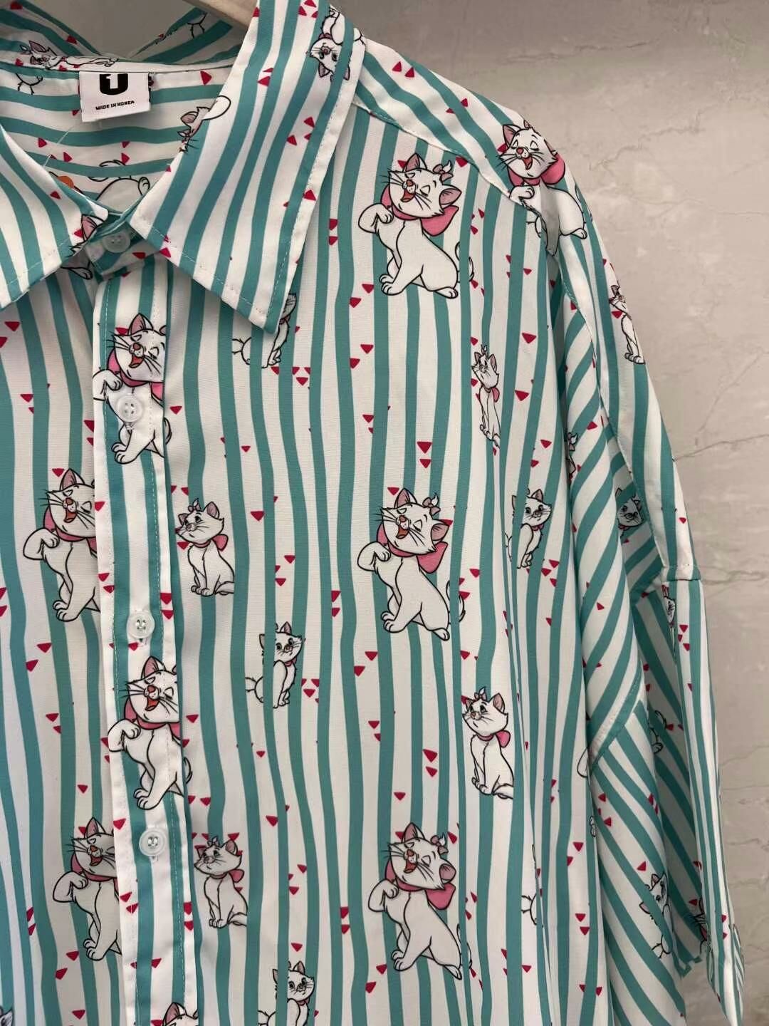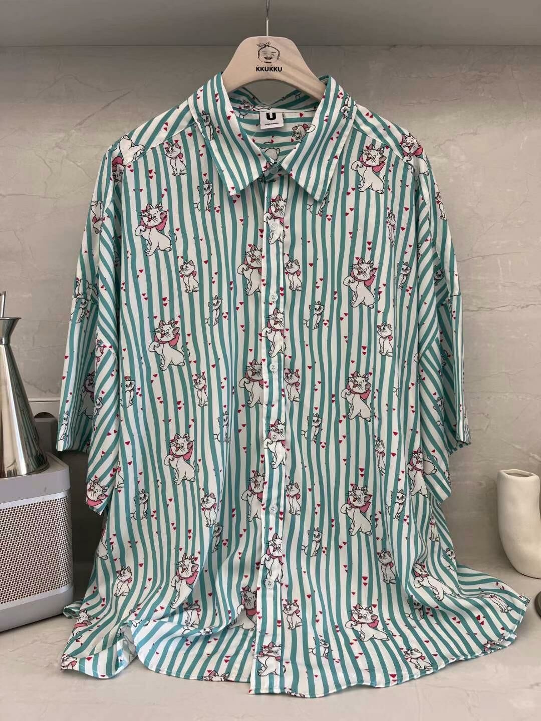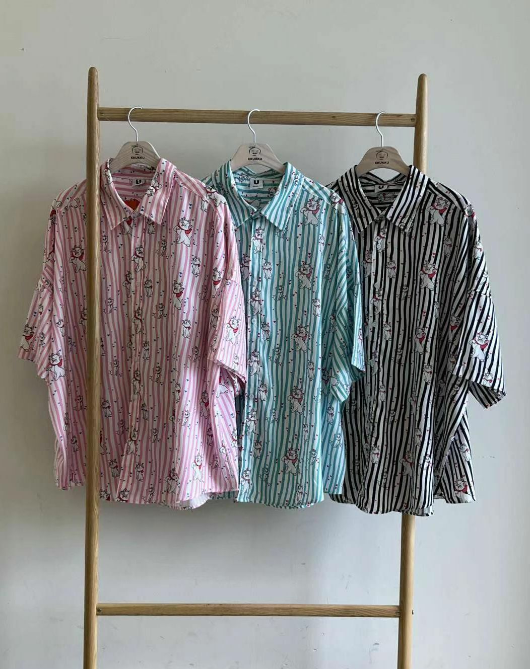 卡通貓直紋短袖恤衫 KKUKKU-023S