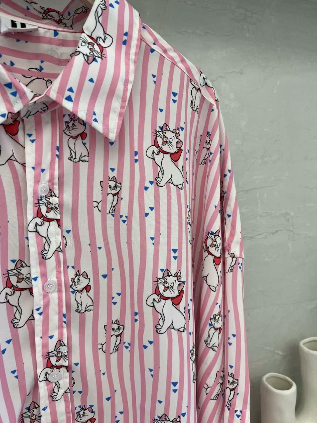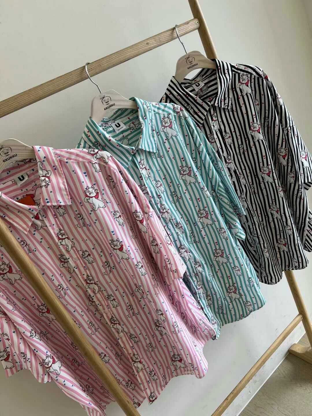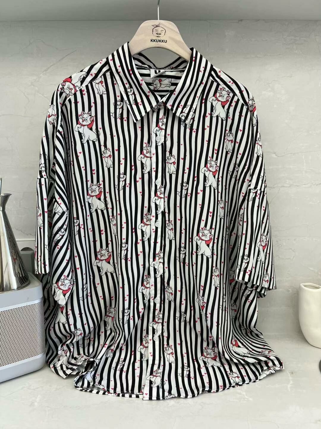 卡通貓直紋短袖恤衫 KKUKKU-023S