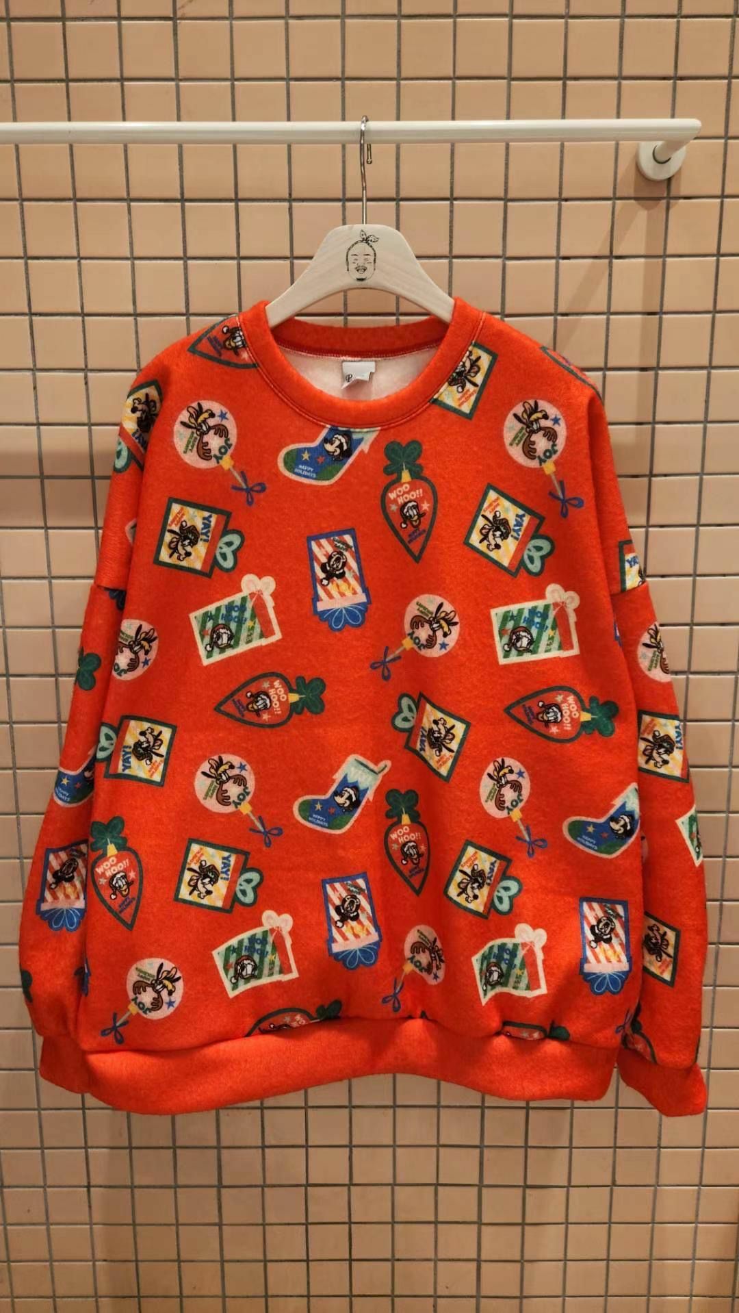 卡通圖案英文字衛衣(薄抓毛底) KKUKKU-051T