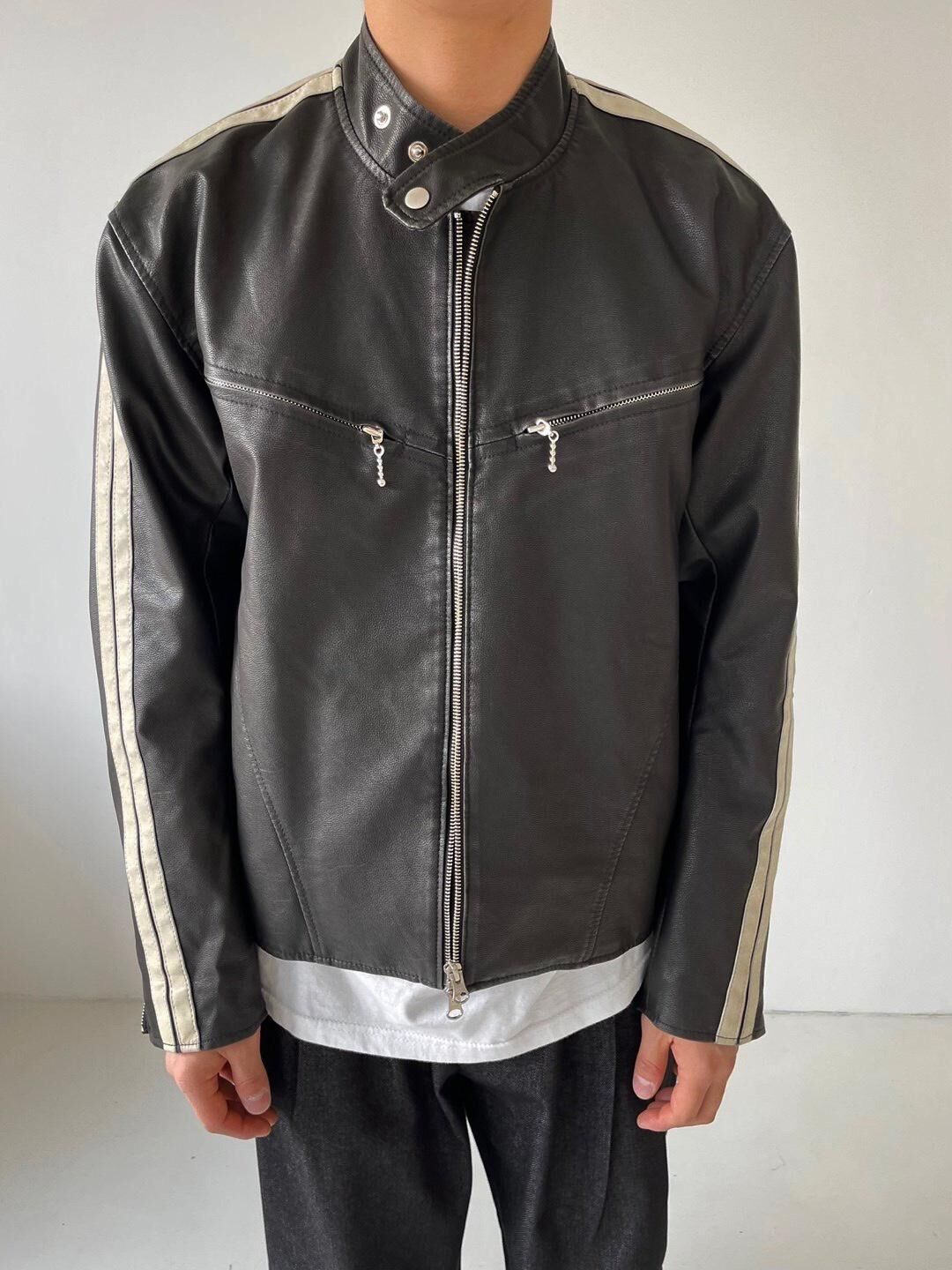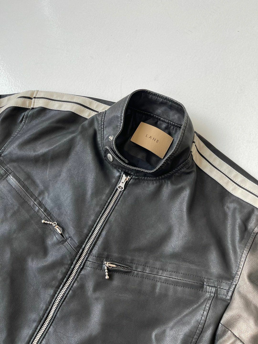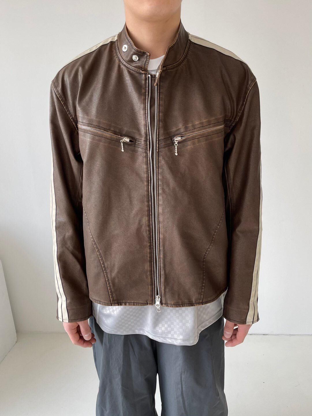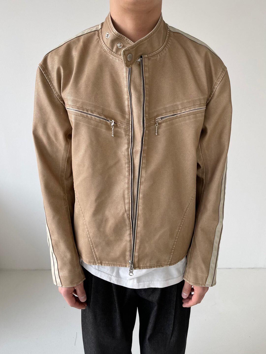 企領雙間拉鍊合成皮褸 LANE-002JK