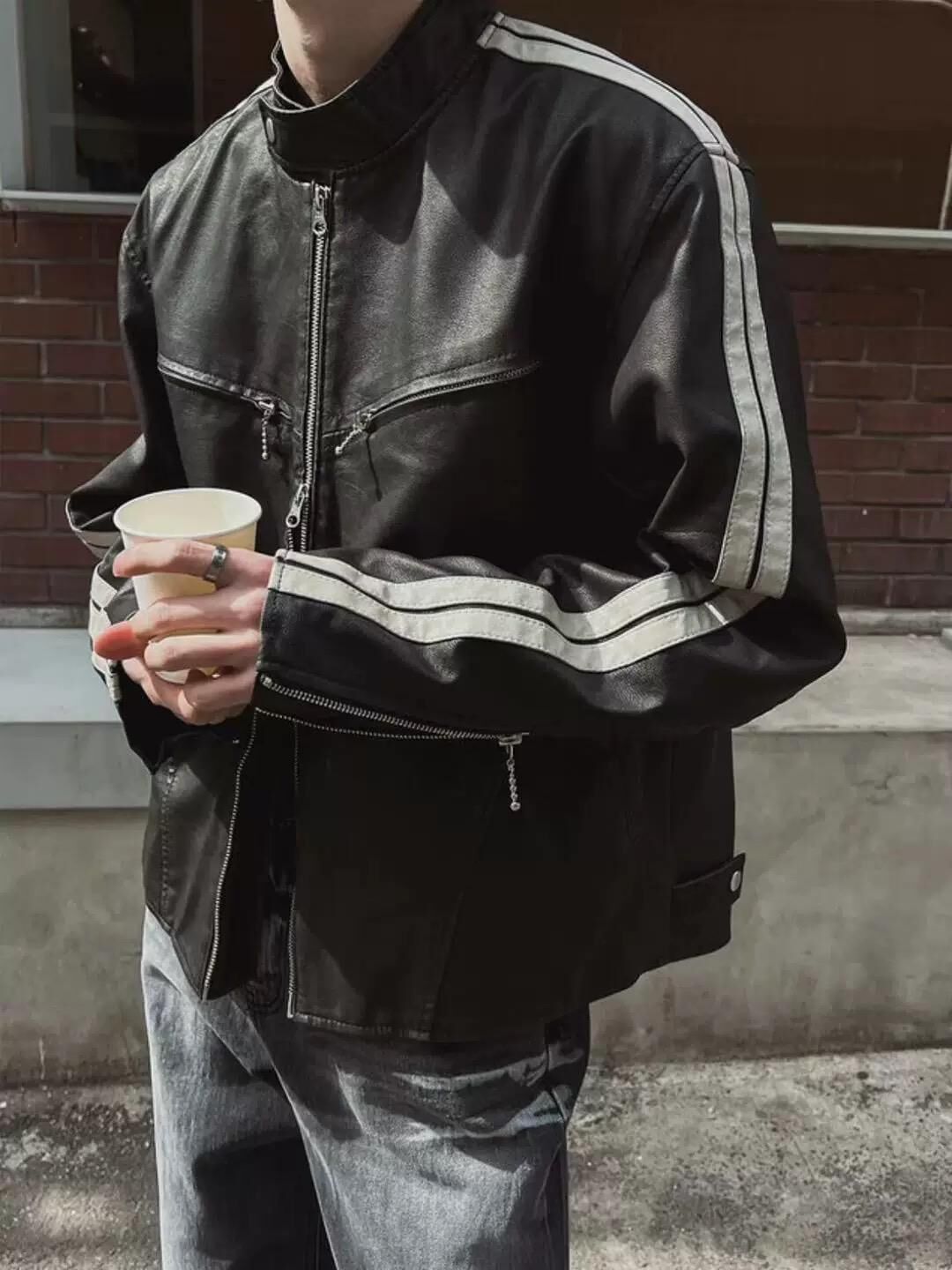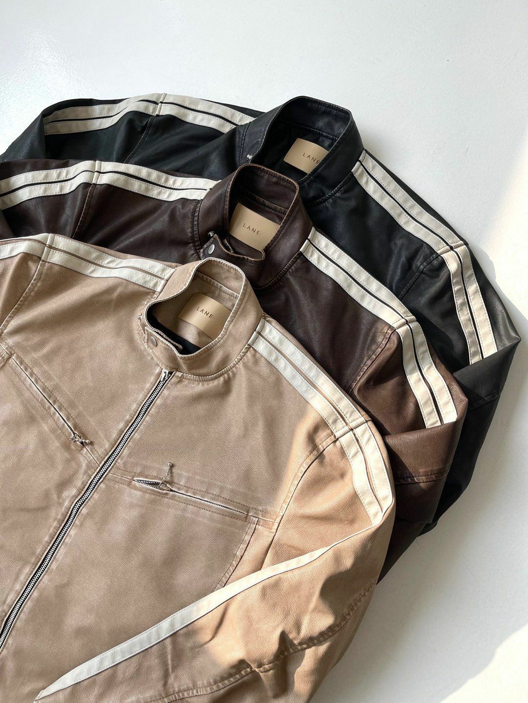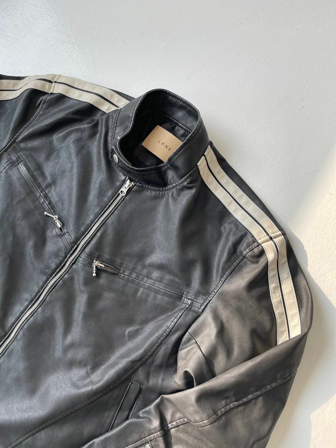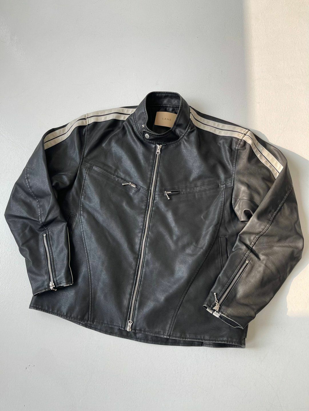 企領雙間拉鍊合成皮褸 LANE-002JK