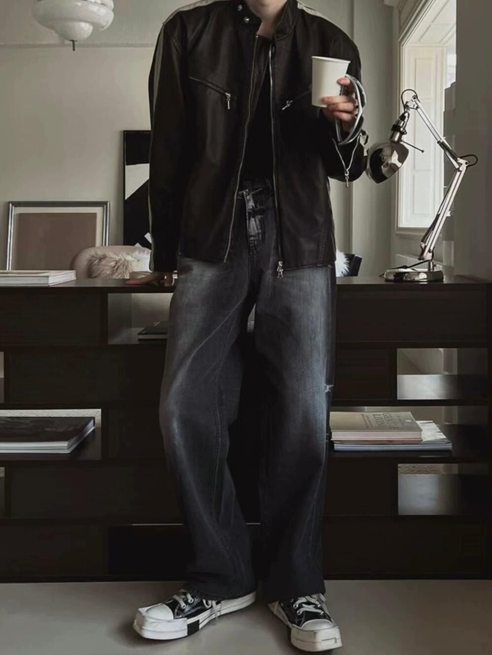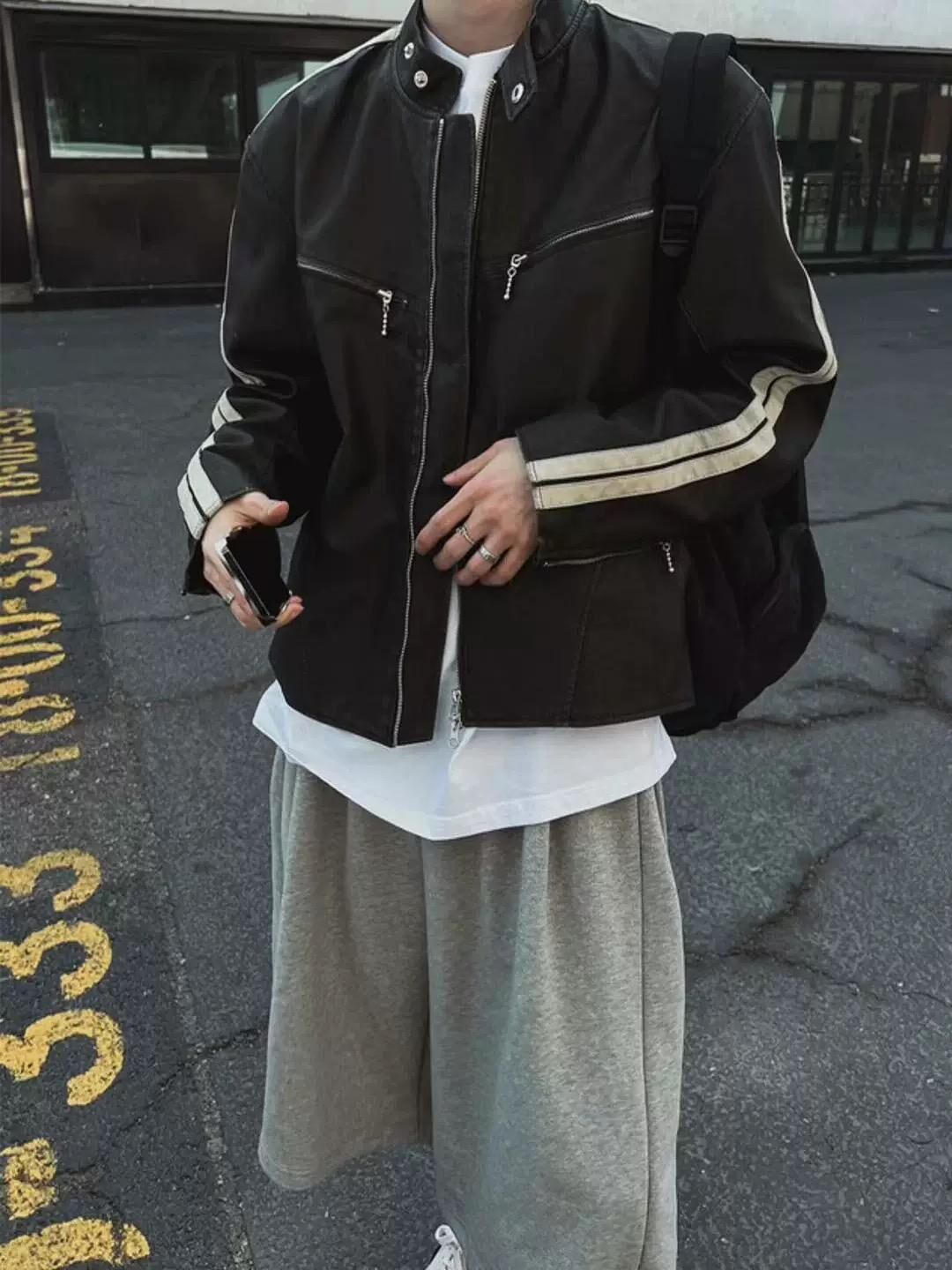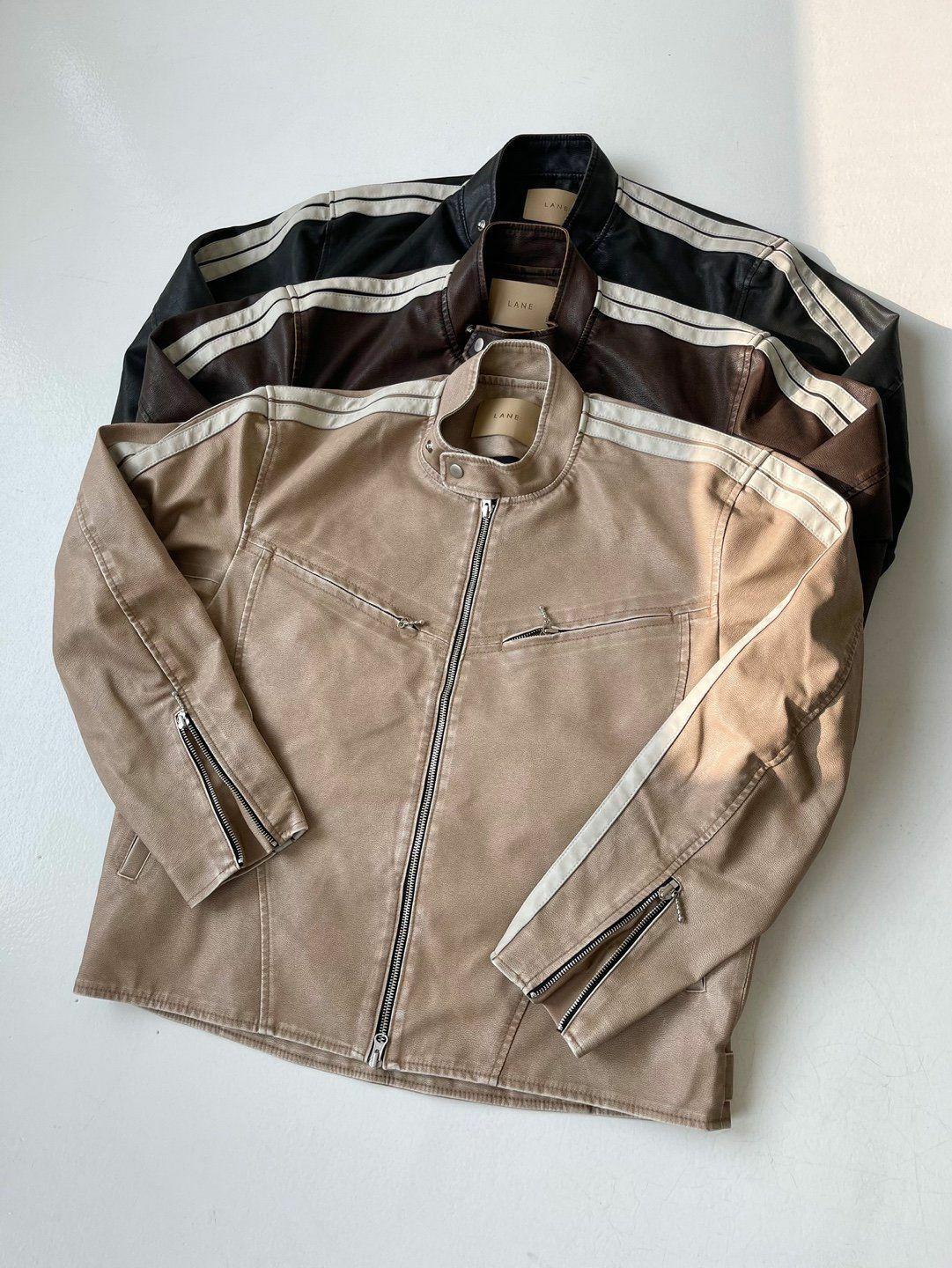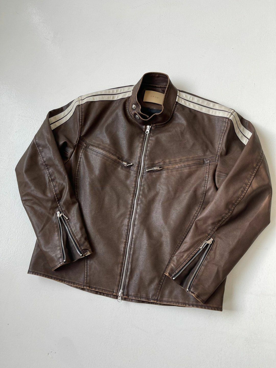 企領雙間拉鍊合成皮褸 LANE-002JK