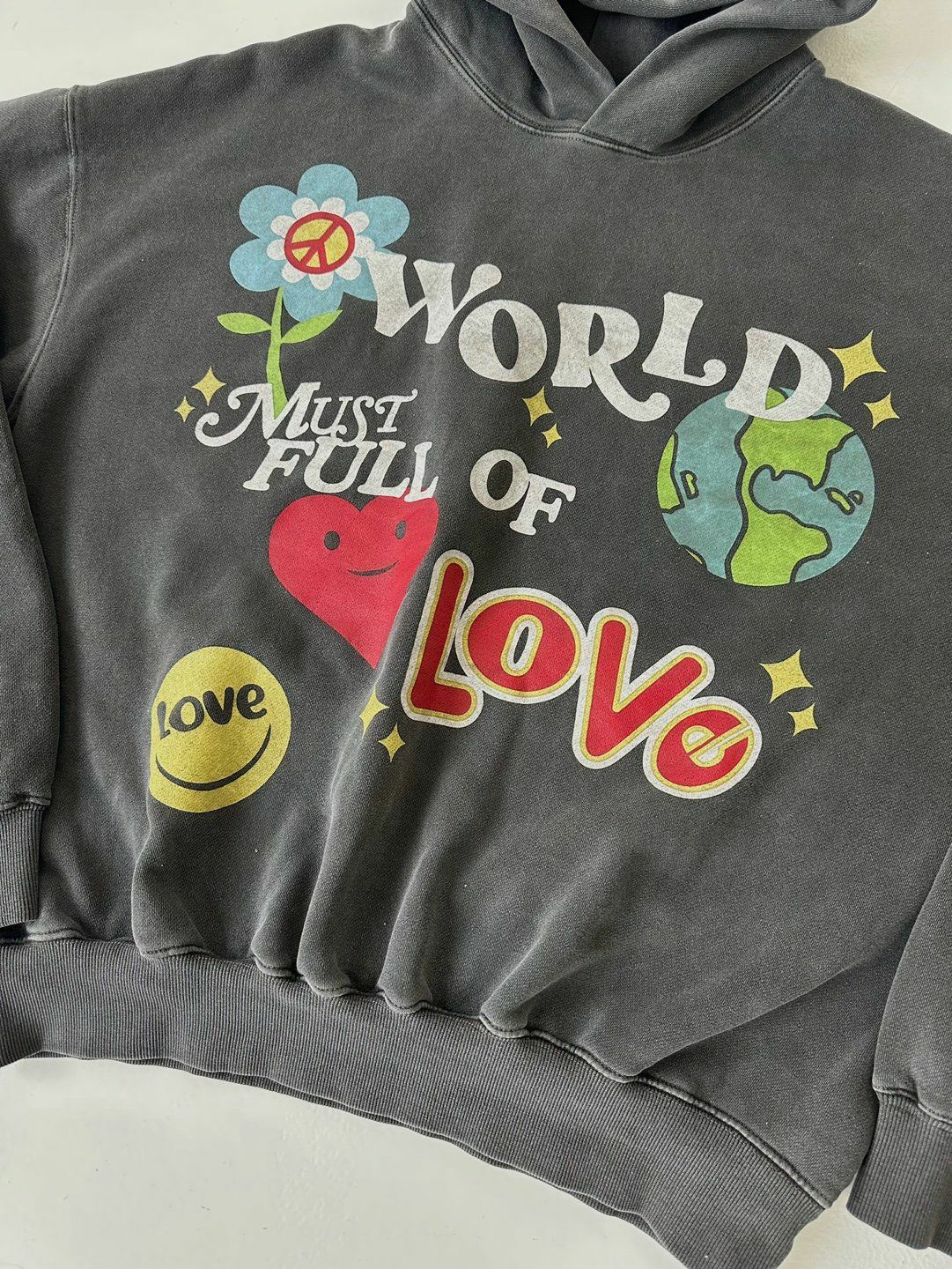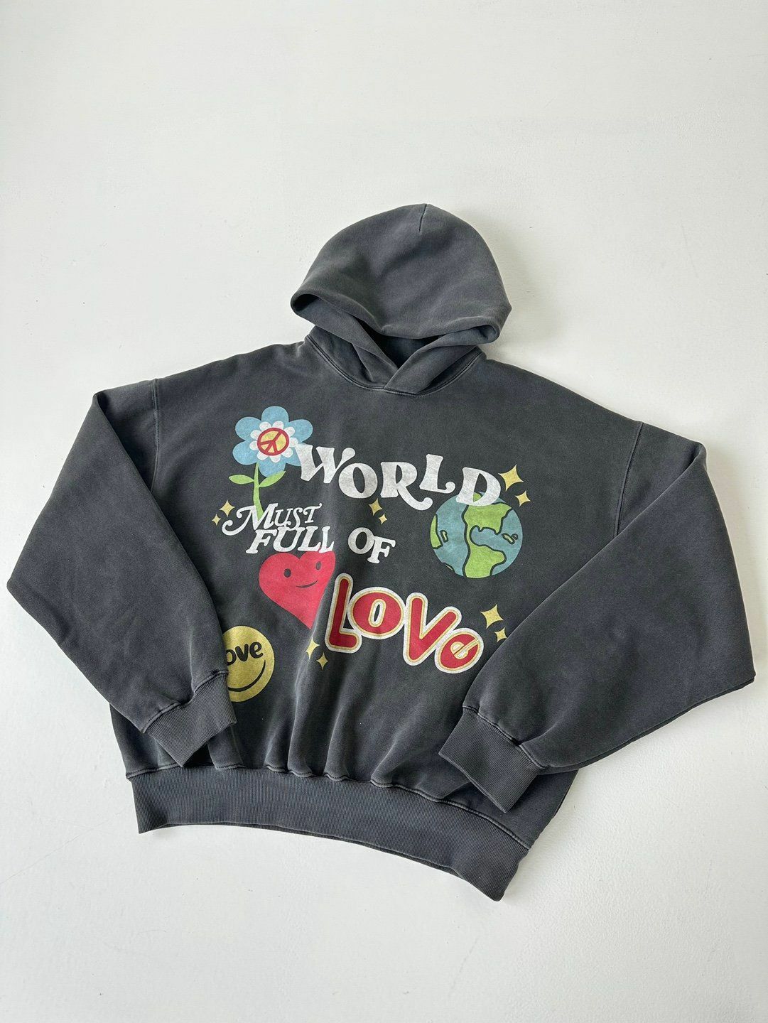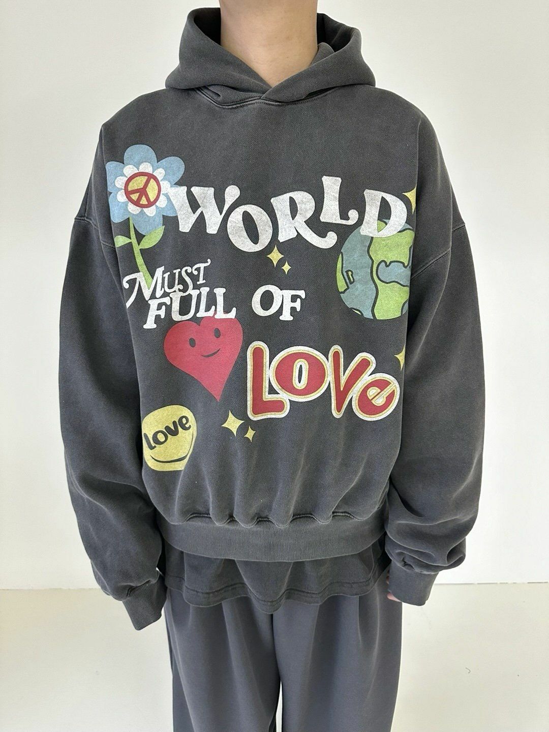 花花圖案英文字連帽衛衣(薄抓毛底) LANE-043T