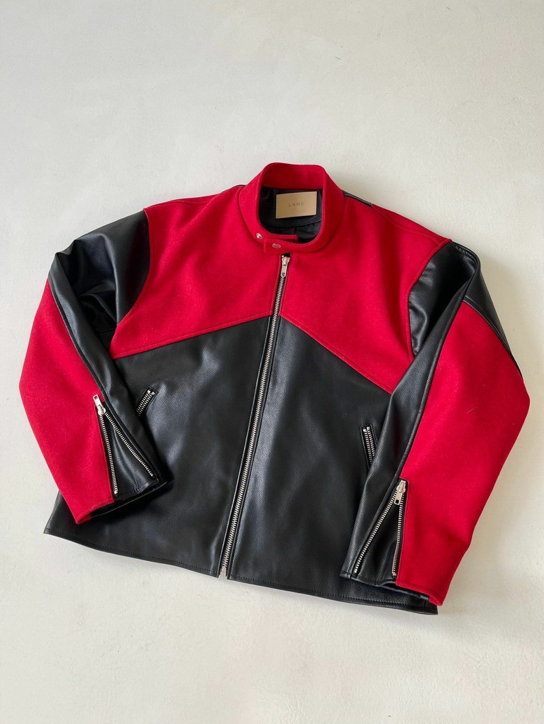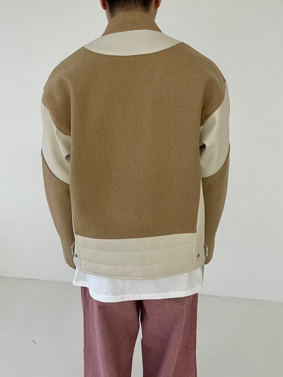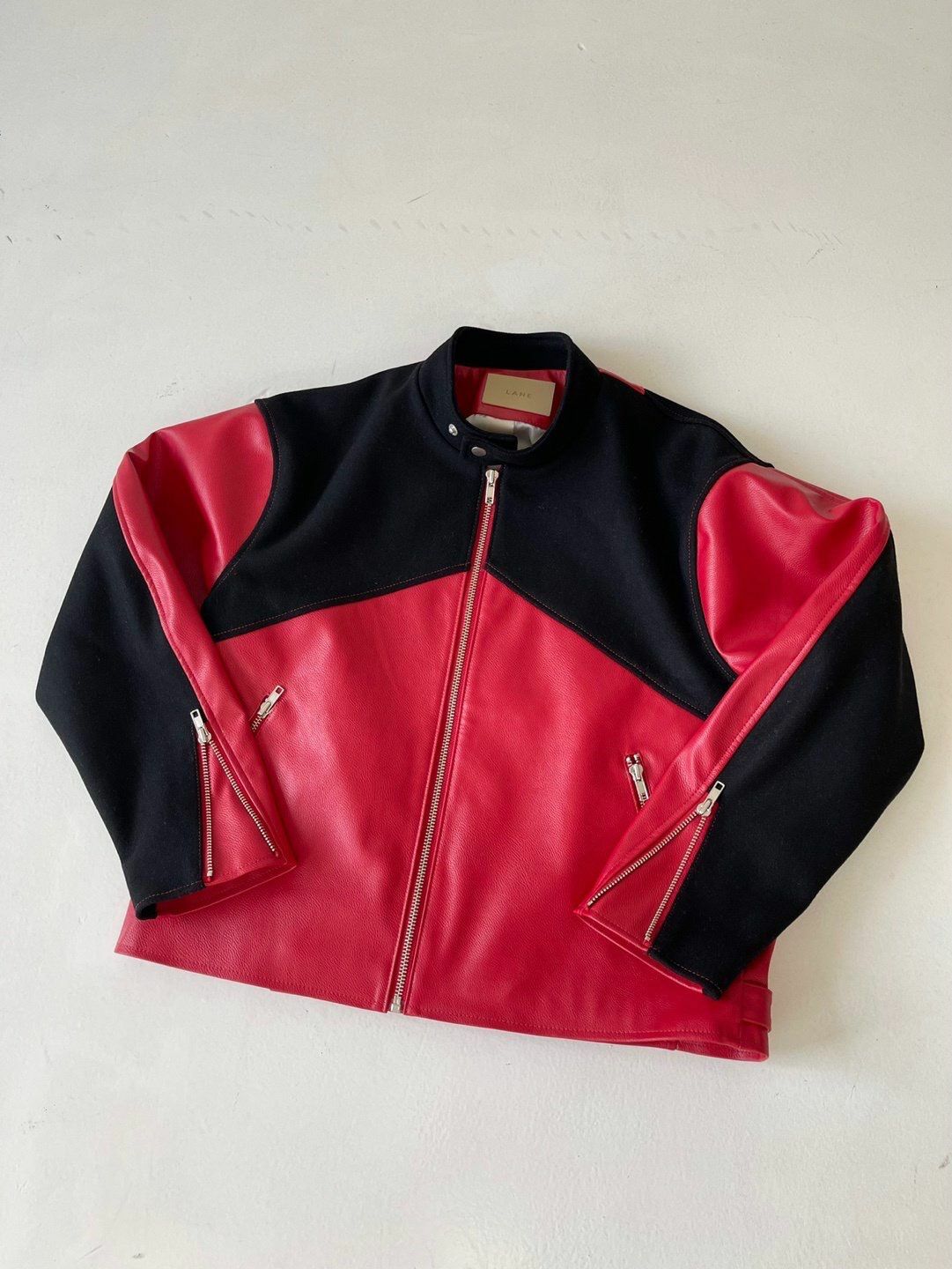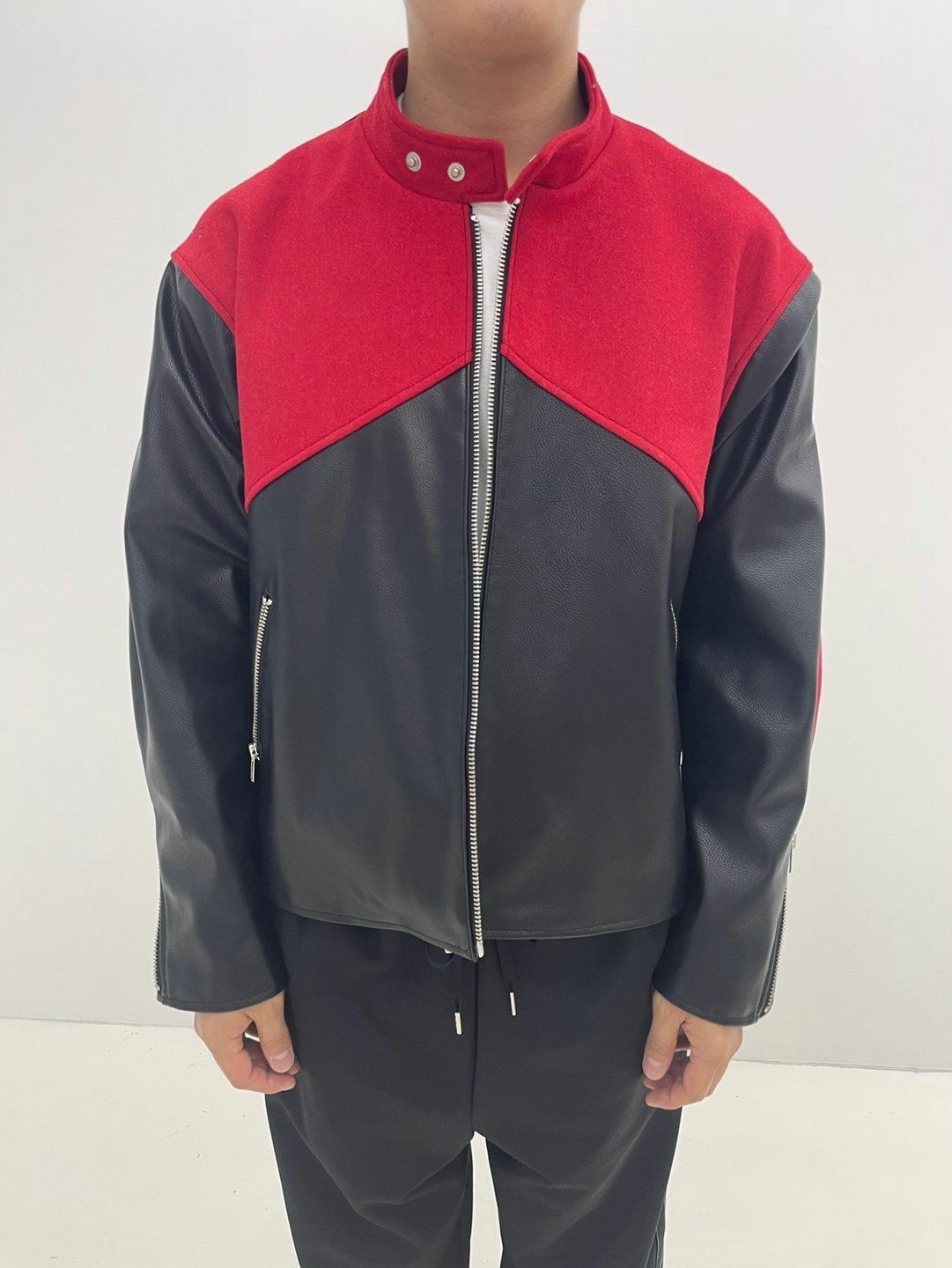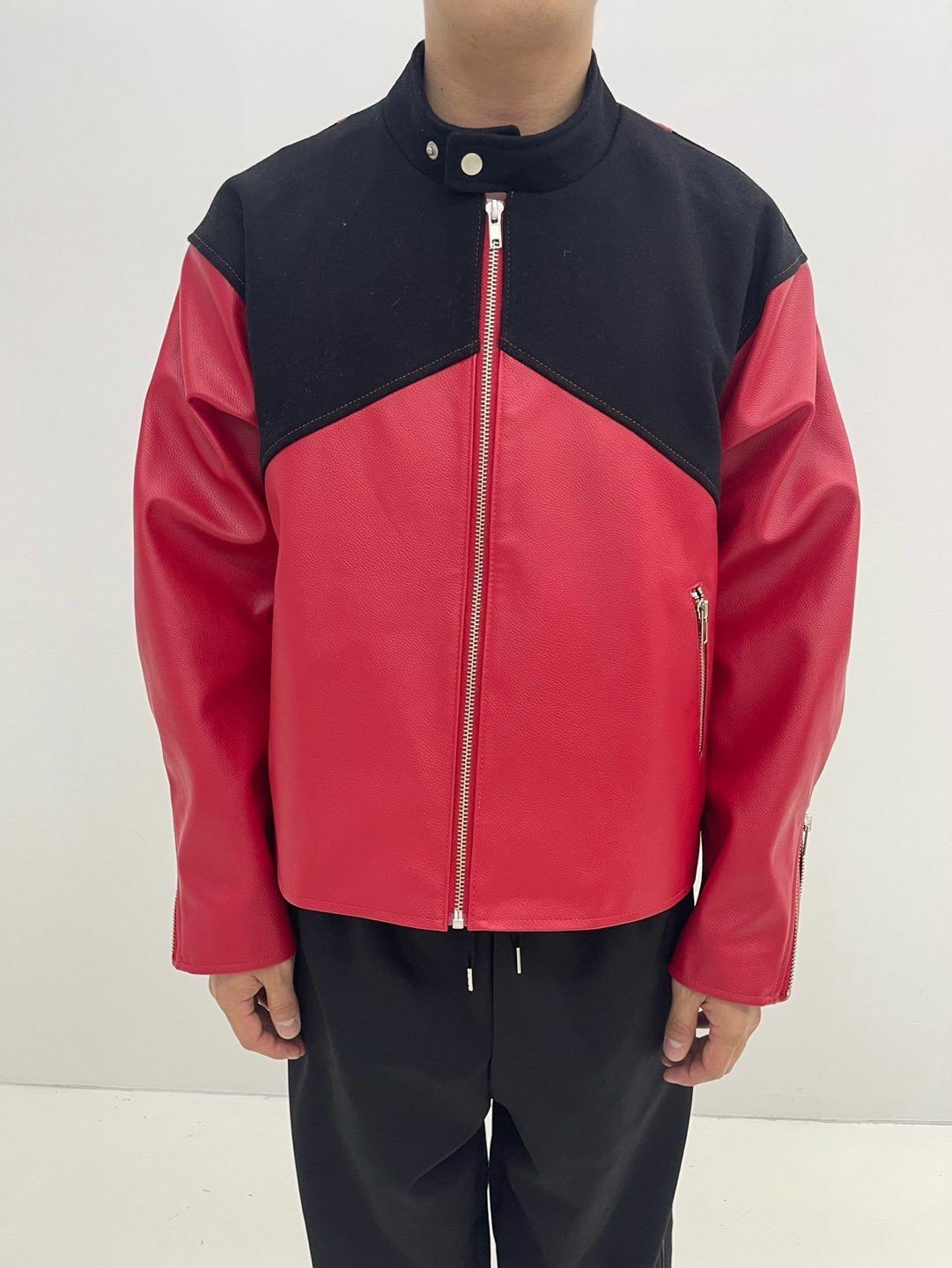拼色企領拉鍊合成皮褸 LANE-062JK