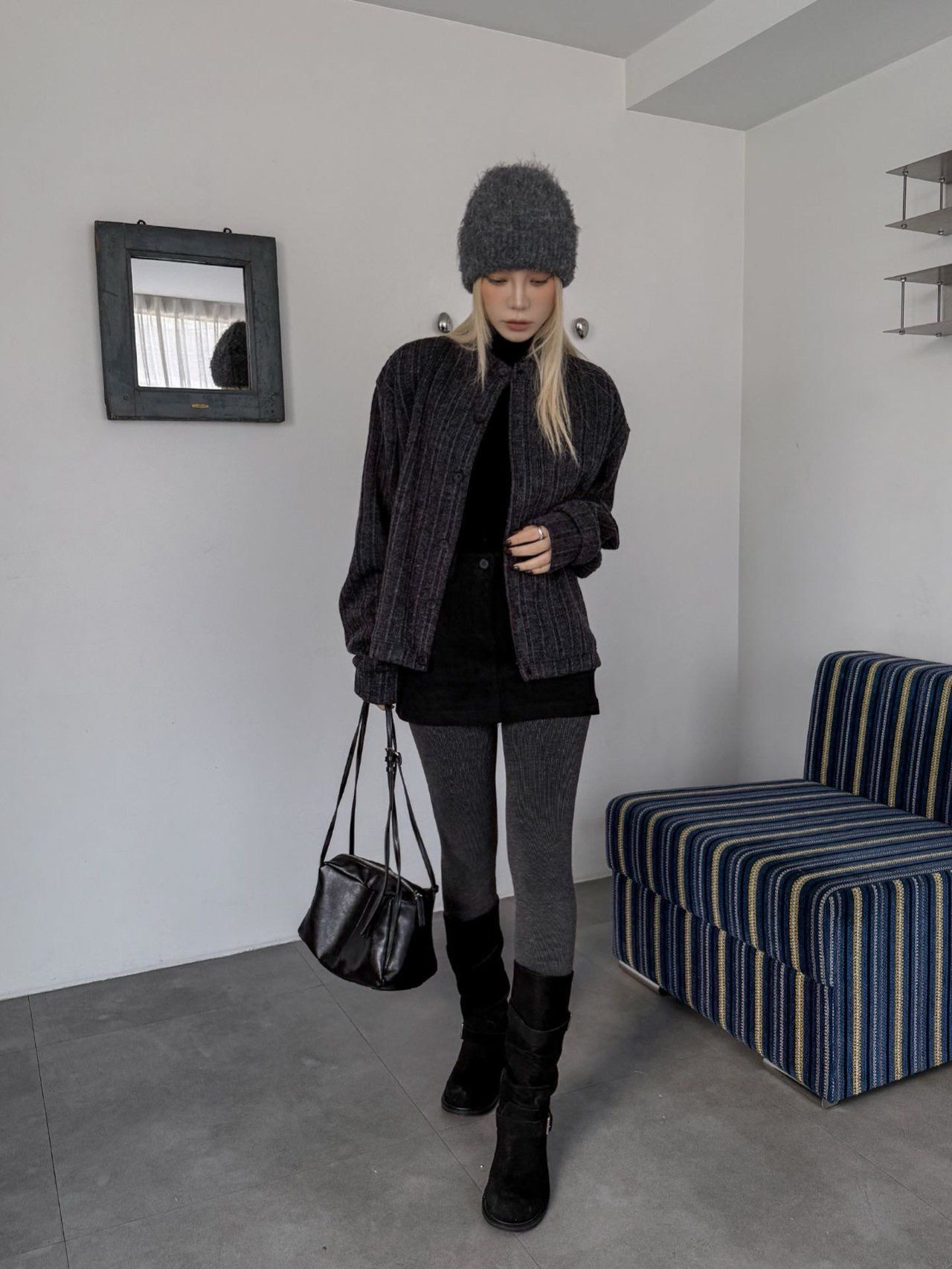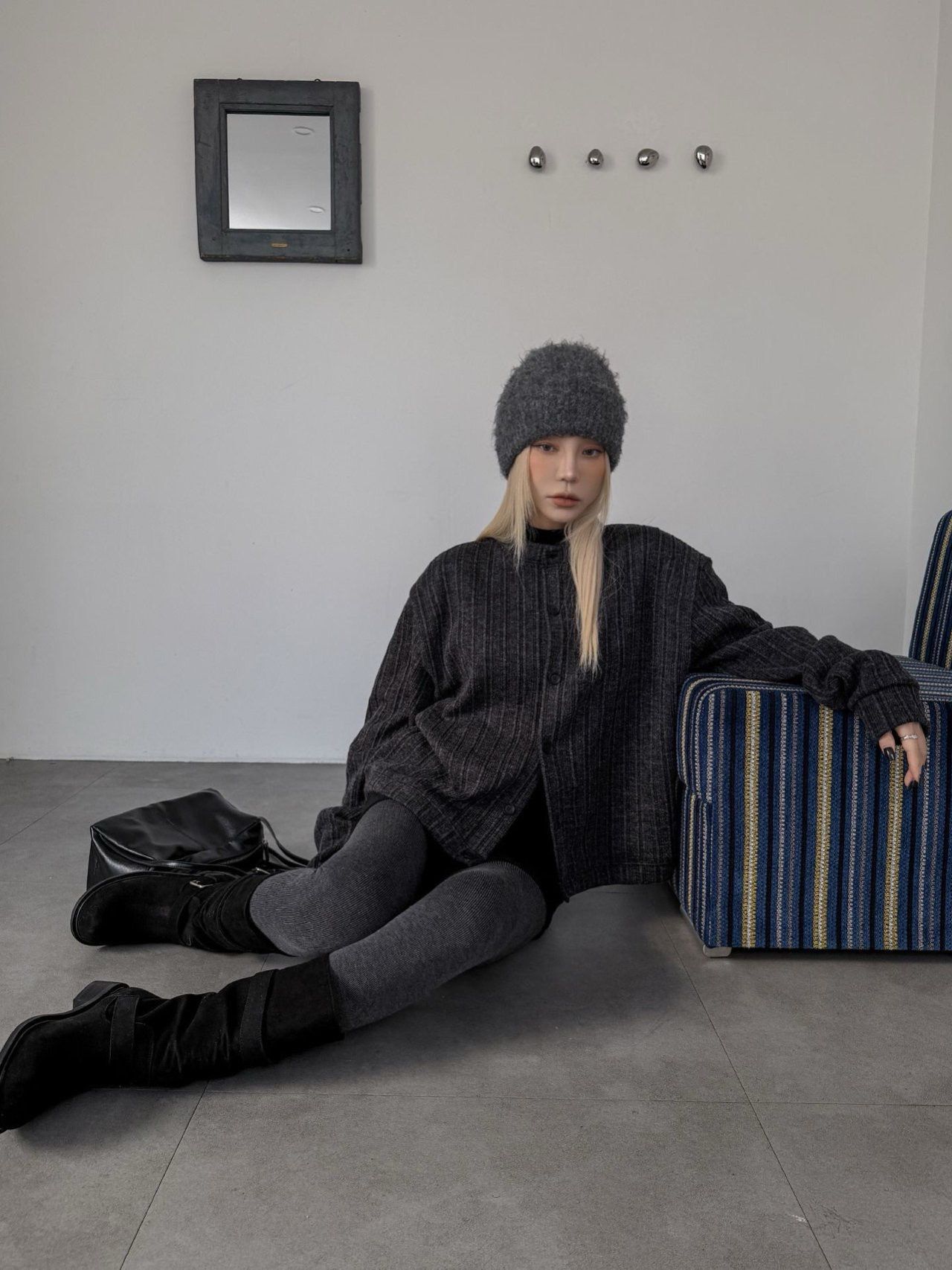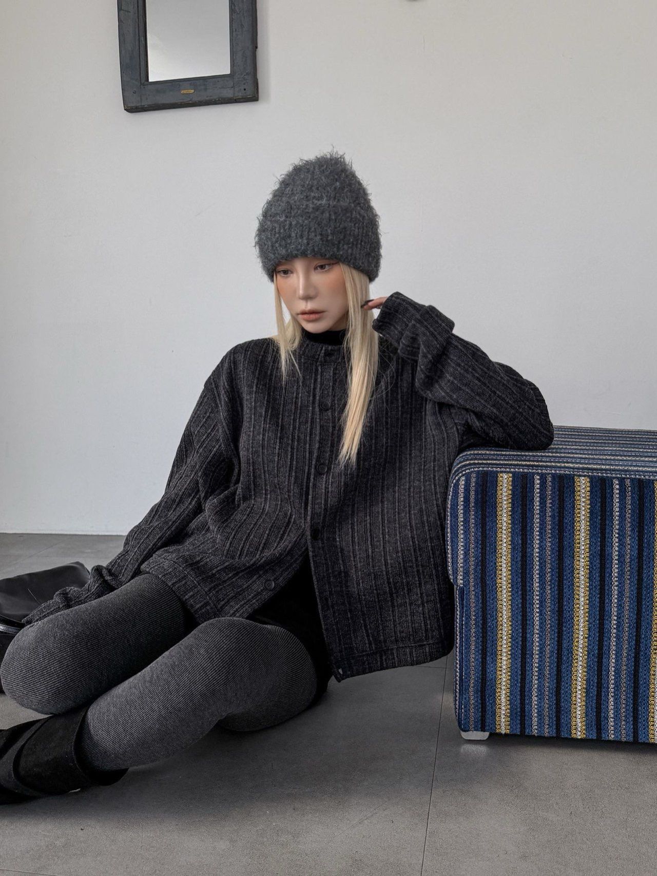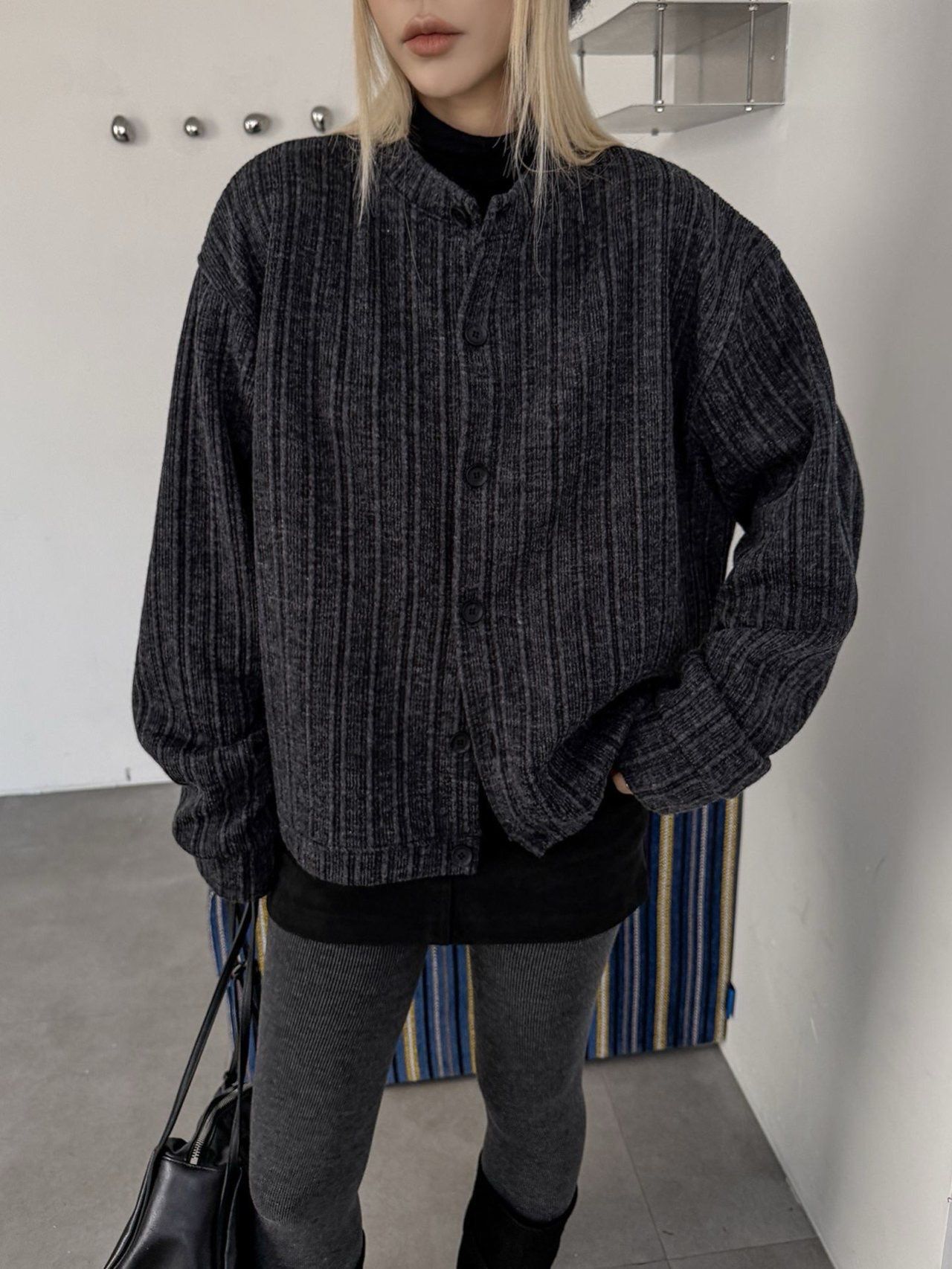 暗直紋圓領開胸外套 LEAD-015T